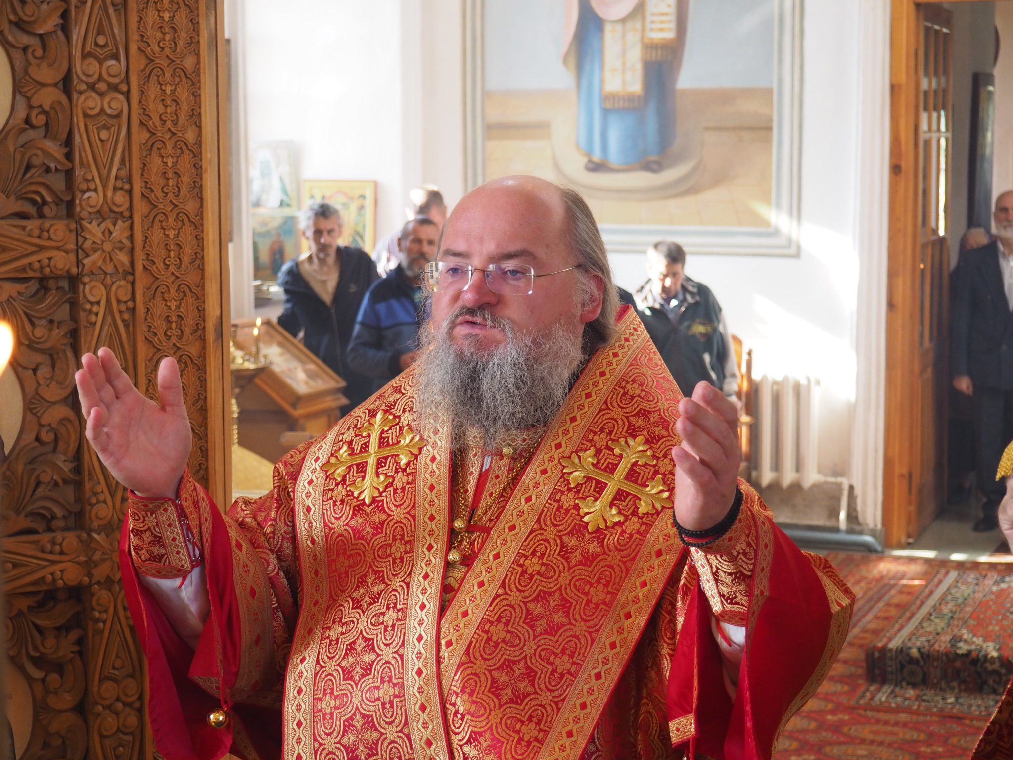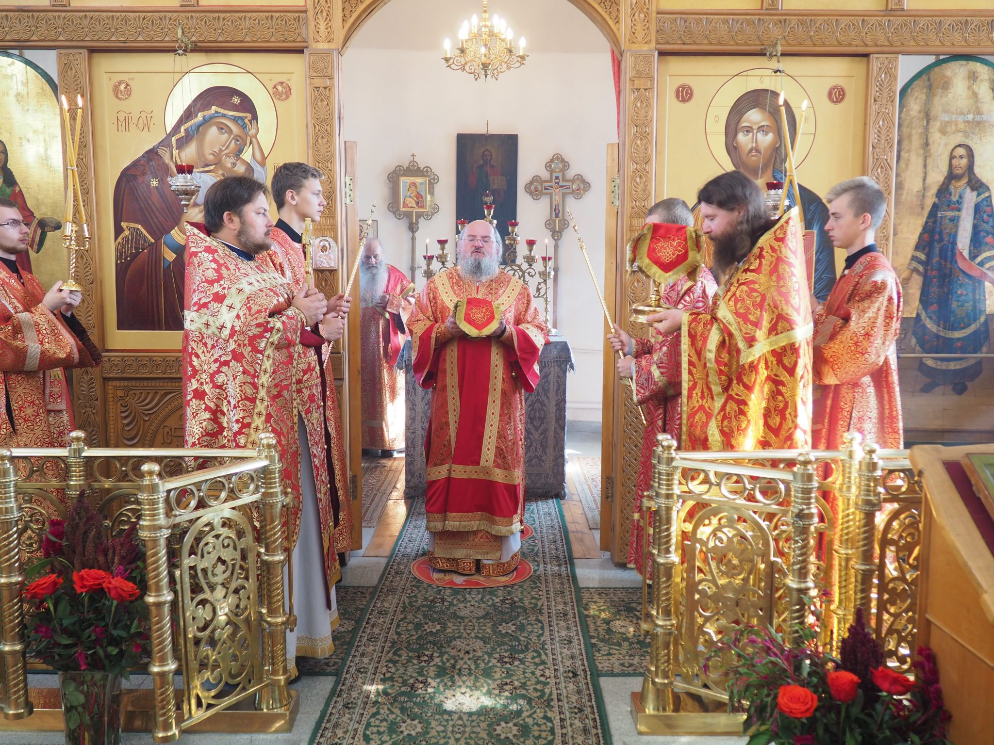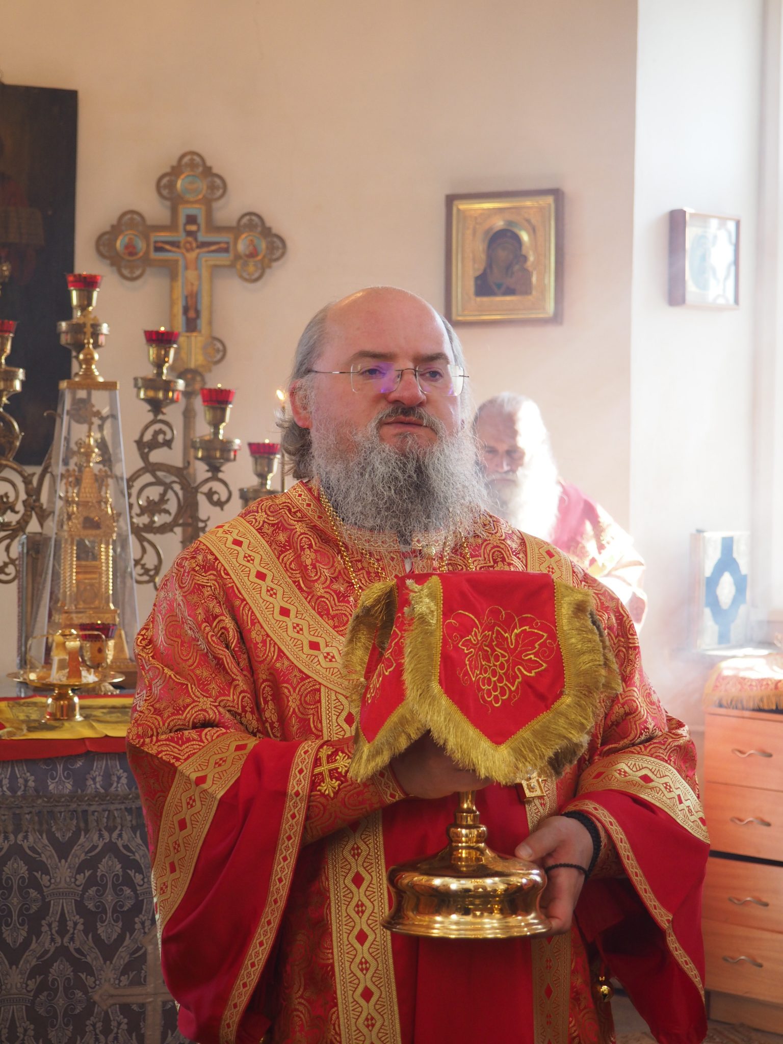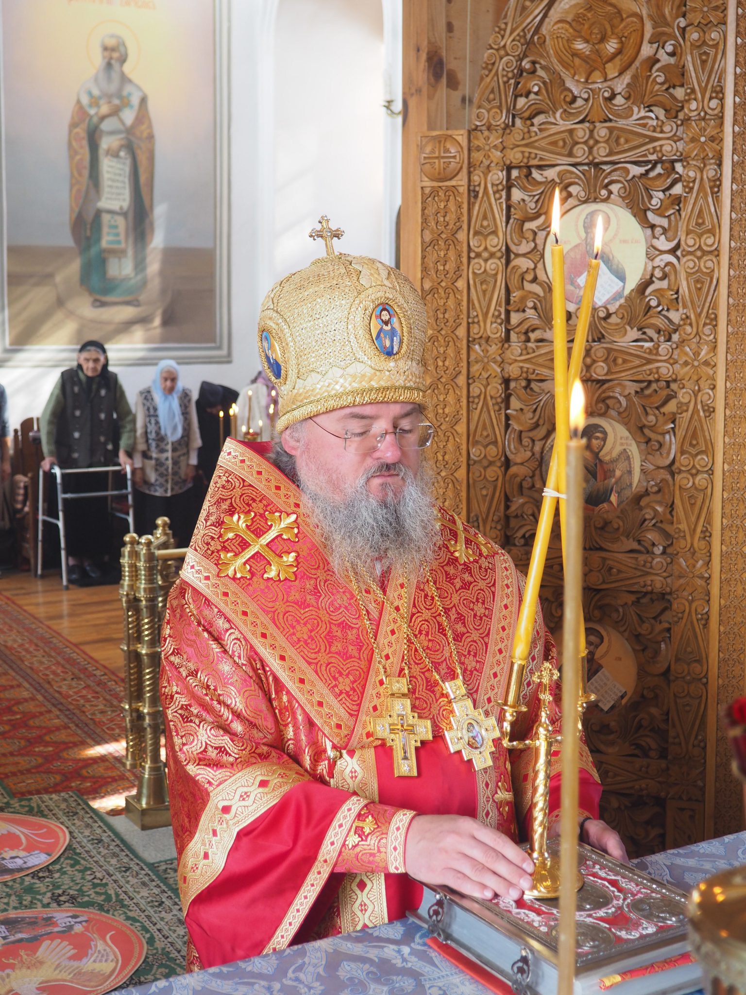 Преосвященному владыке сослужили: настоятель храма протоиерей Ярослав Мудрый, протоиерей Антоний Хатунцев, диакон Евгений Ковригин и иеродиакон Виталий (Павленко).
