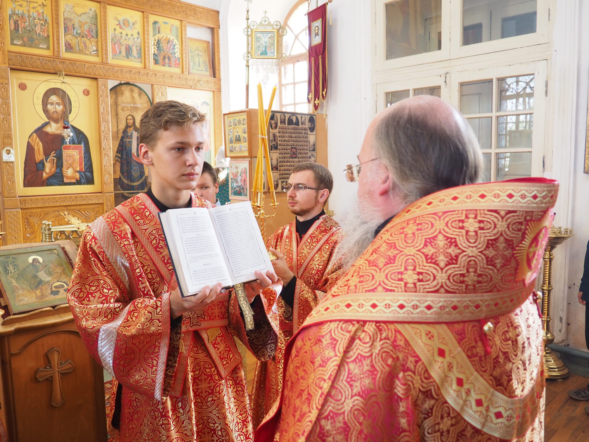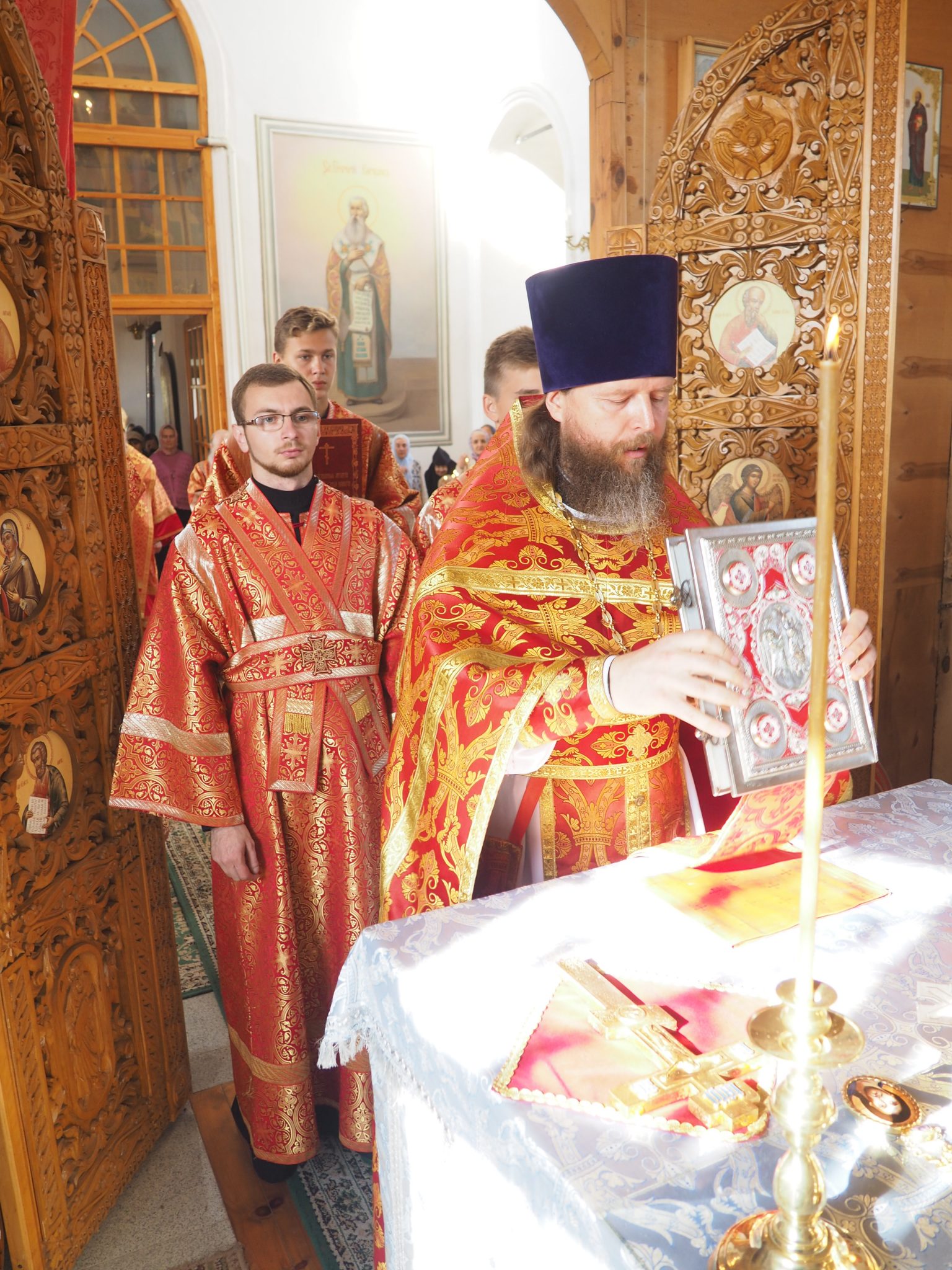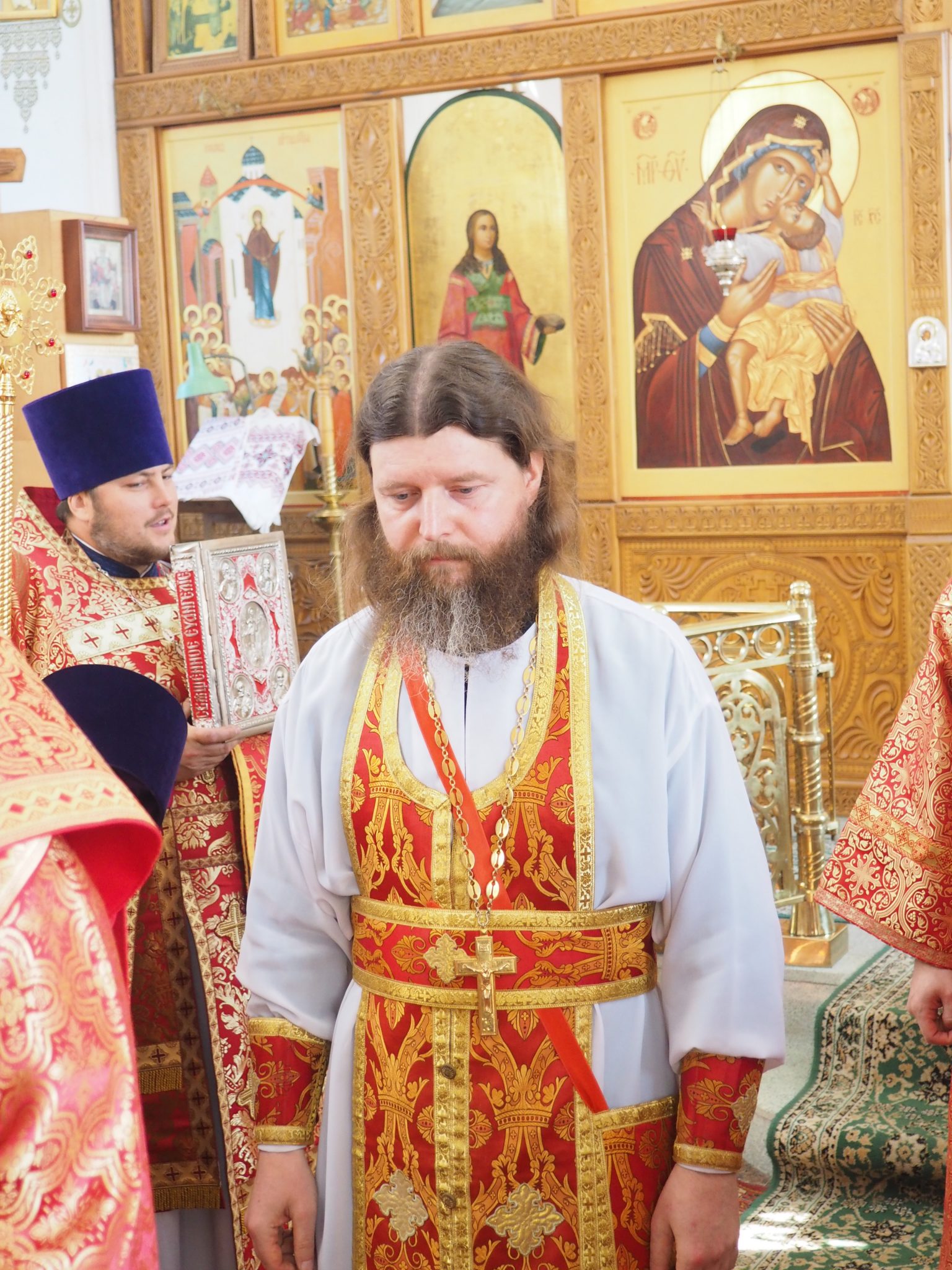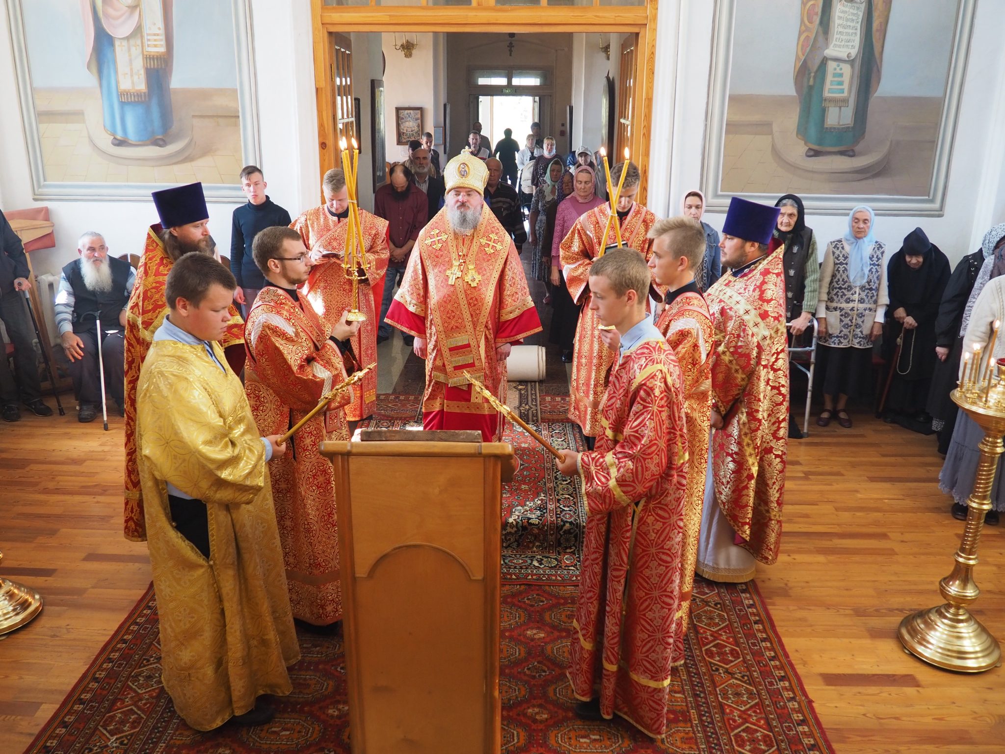 Преосвященному владыке сослужили: настоятель храма протоиерей Ярослав Мудрый, протоиерей Антоний Хатунцев, диакон Евгений Ковригин и иеродиакон Виталий (Павленко).