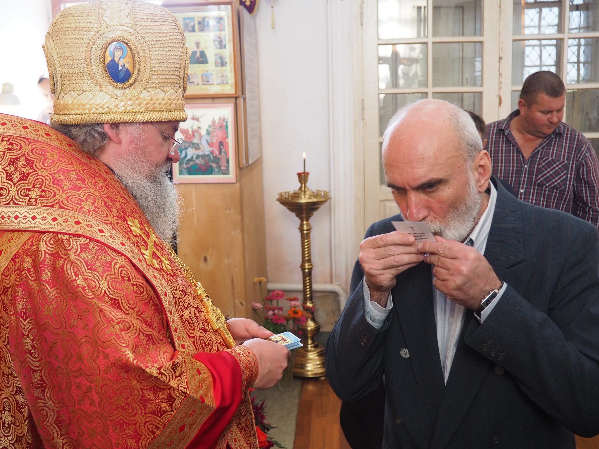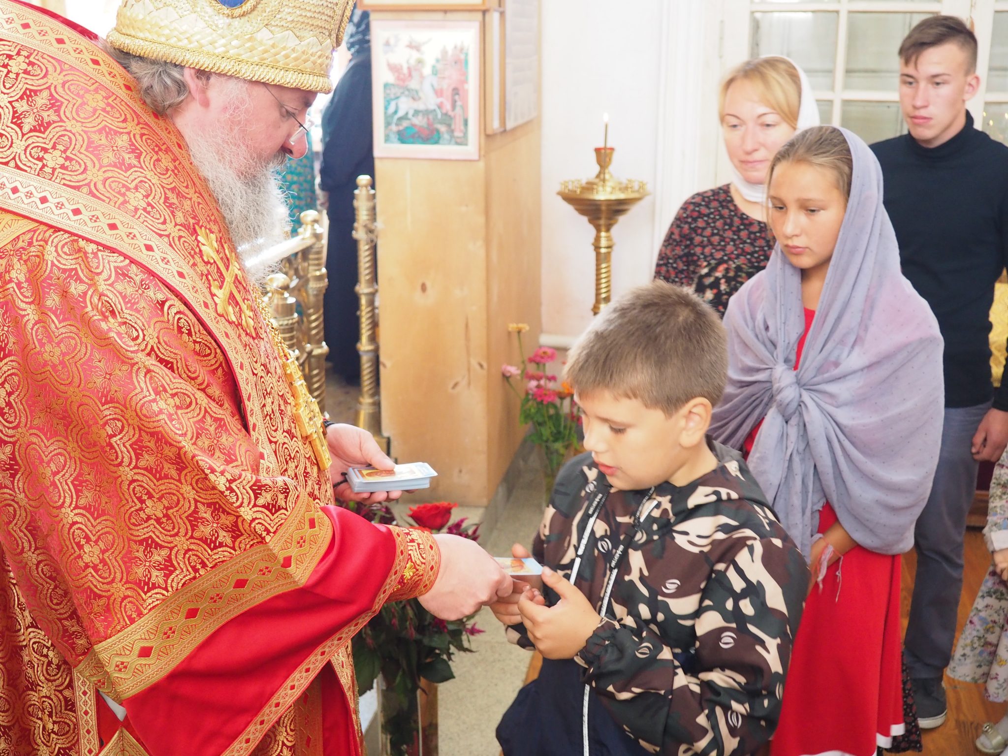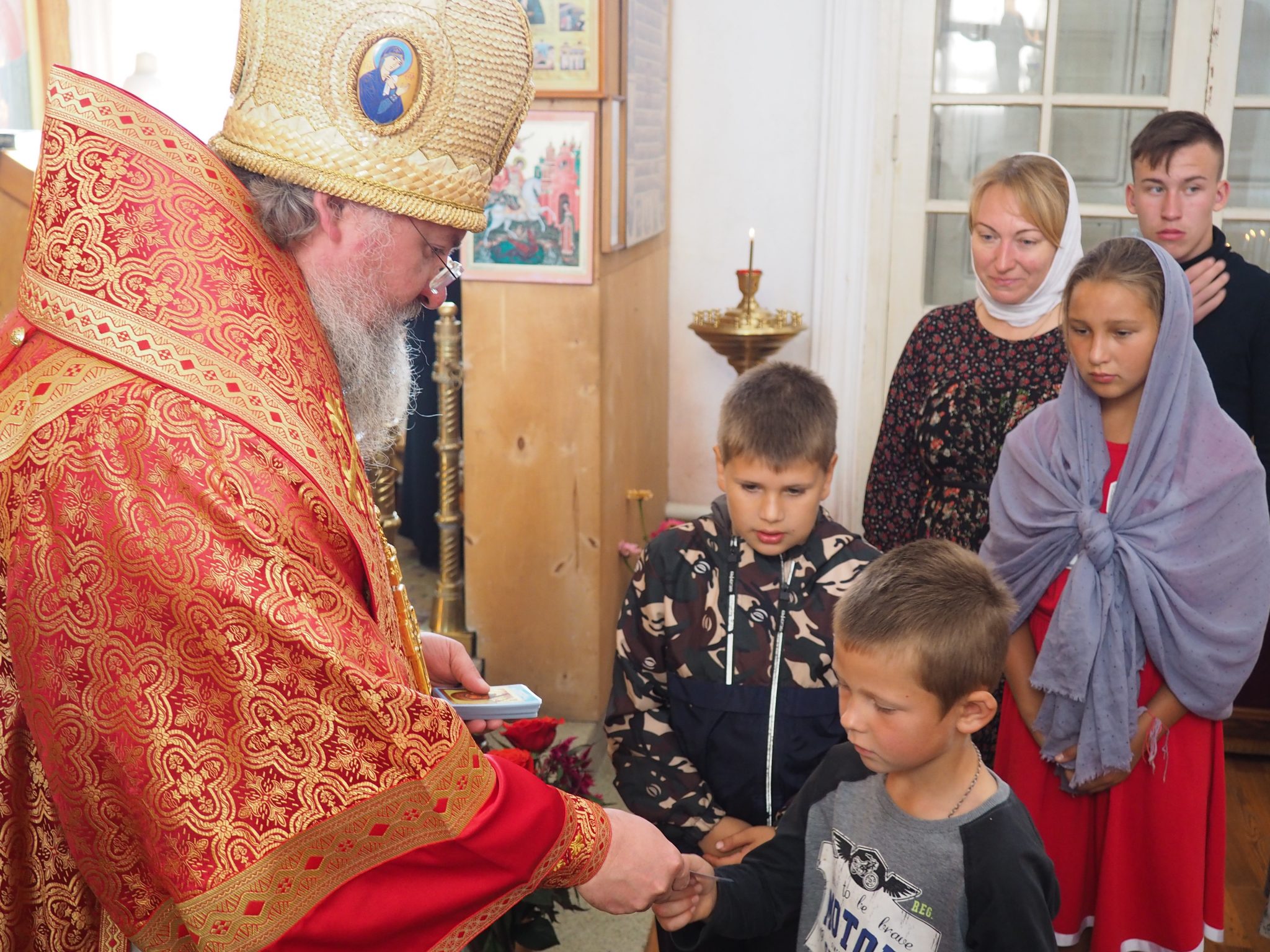 В завершении богослужения, сотворив молитву Крестителю Господню Иоанну, владыка обратился к богомольцам с архипастырским словом и раздал всем небольшие иконки Пресвятой Богородицы.