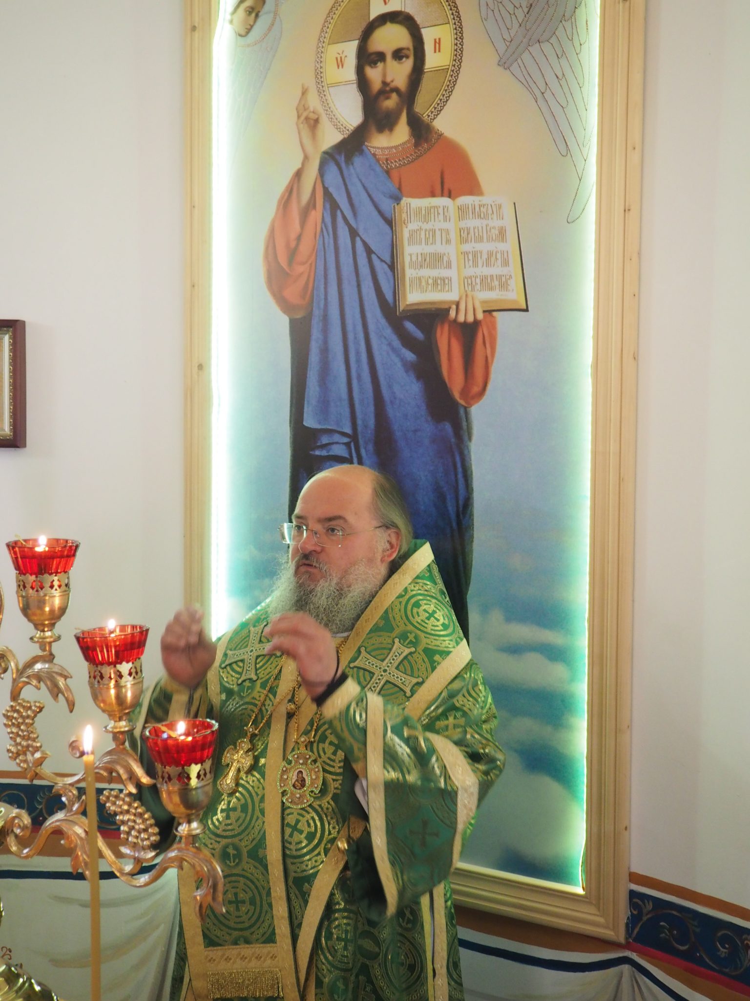 По отпусте литургии священнослужители совершили праздничный молебен пред образом святого благоверного князя Александра, а затем, сотворив молитву святому, владыка обратился к богомольцам с архипастырским словом.