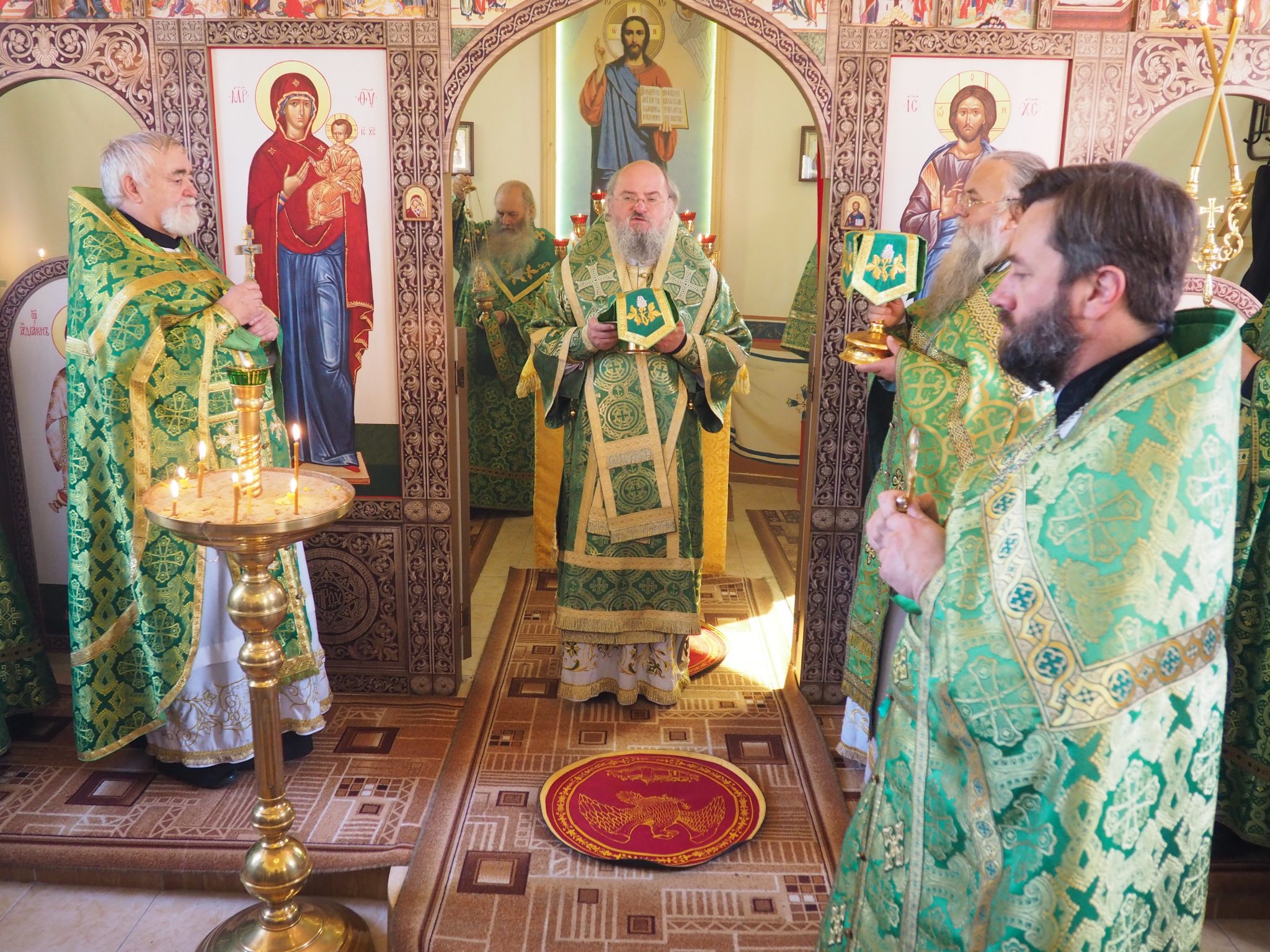 Преосвященному владыке сослужили: протоиерей Алексий Жиганов, протоиерей Димитрий Губаль, иерей Георгий Краснов – настоятель храма, диакон Евгений Ковригин и иеродиакон Виталий (Павленко).