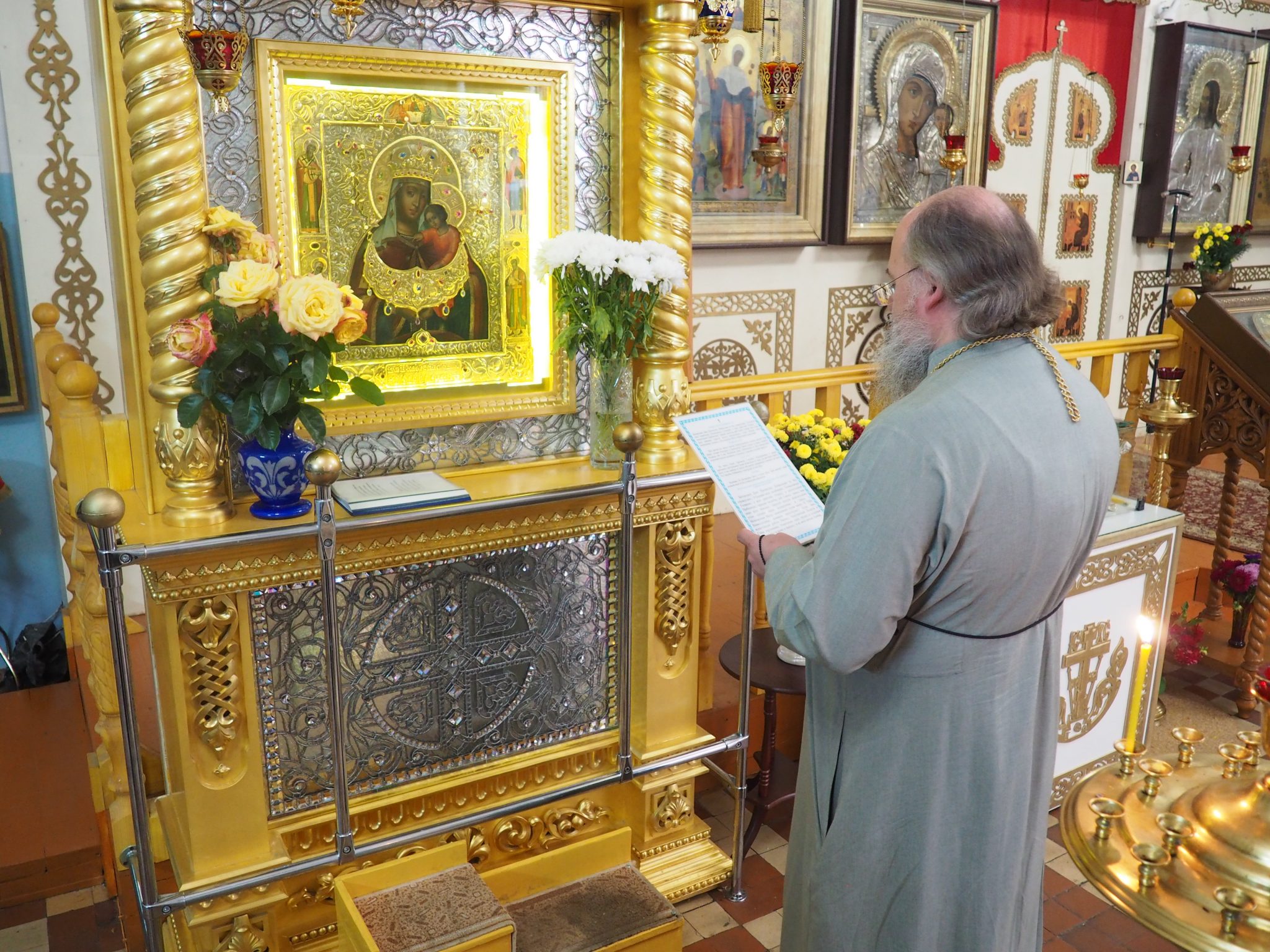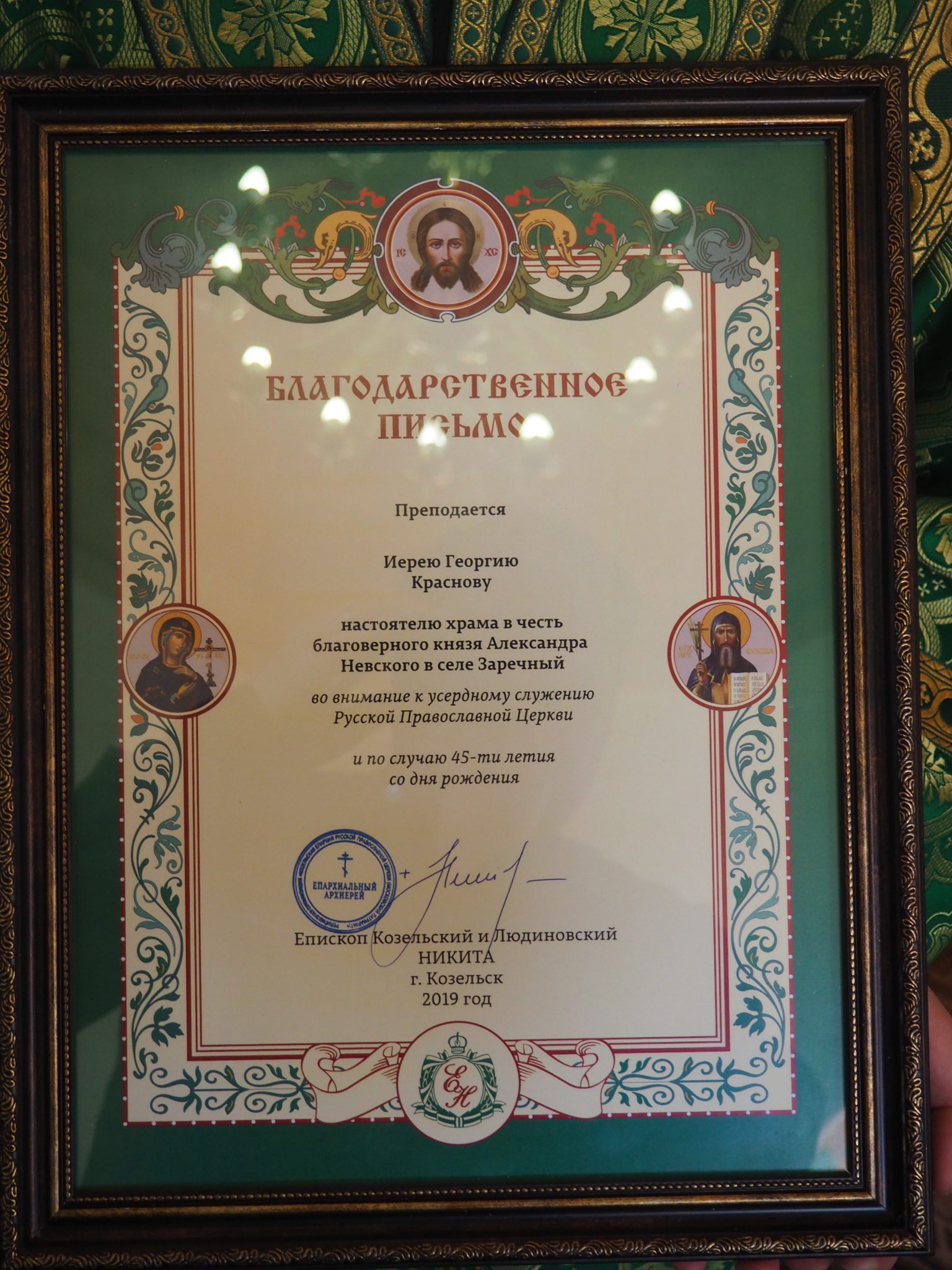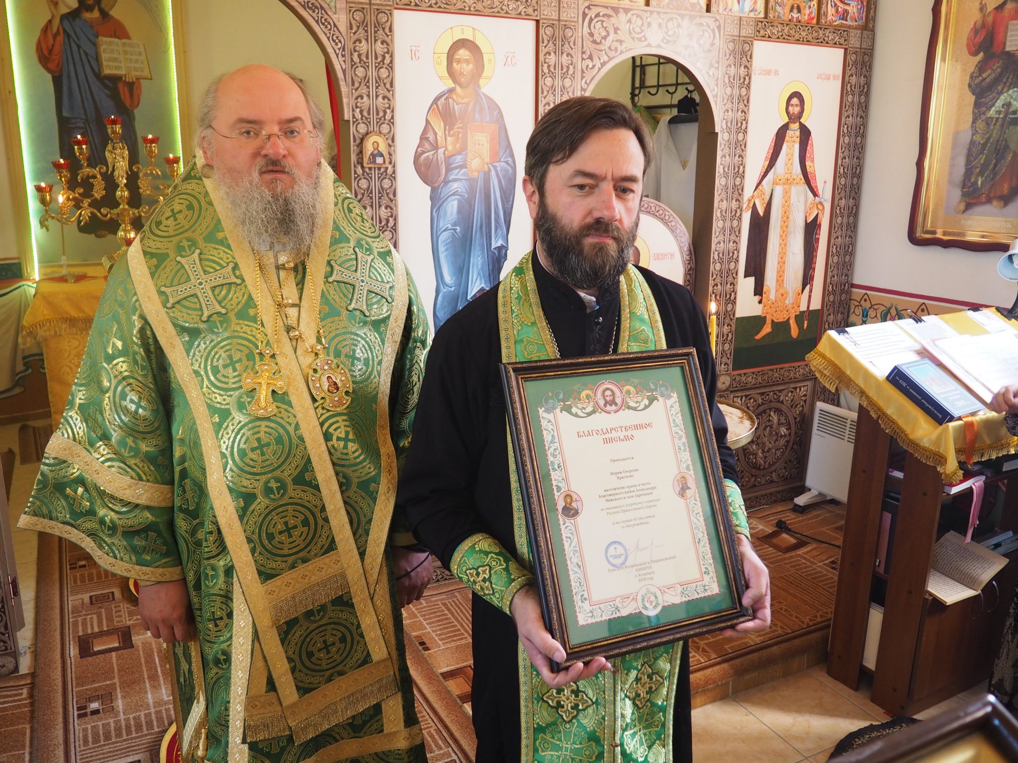 Епископ Никита поздравил настоятеля храма с 45-летием и вручил ему благодарственное архиерейское письмо.