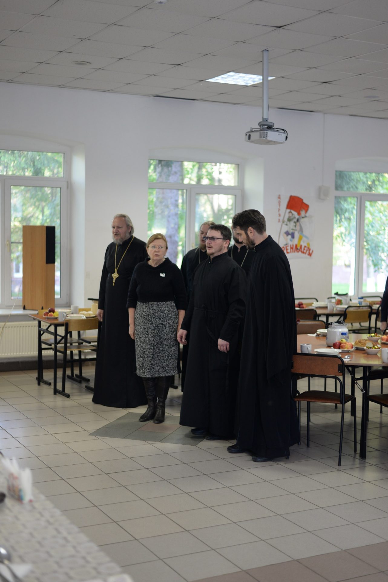 По приезду в Православный молодежный центр Калужской епархии «Златоуст» был совершен молебен на благое дело, за которым участники выездного заседания помолились. Молебен совершили иерей Олег Прохоров и иерей Дмитрий Торшин в сослужении диакона Вадима Роговцева.