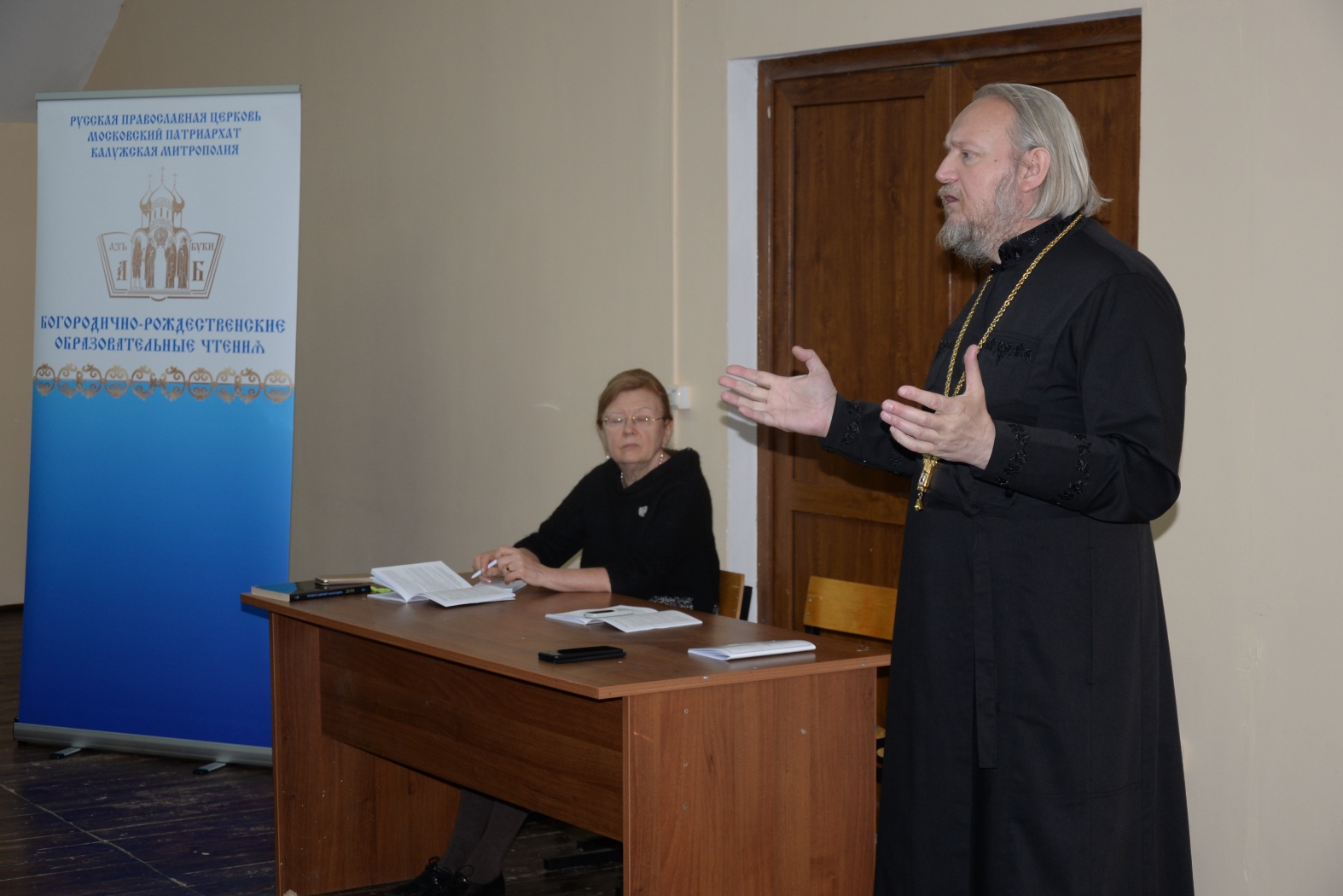 Участников выездного заседания прослушали установочную лекцию «Русская Православная Церковь в Великой Отечественной войне 1941-1945 гг. Укрепление православного мировоззрения в современном обществе». Лекцию провел преподаватель Калужской духовной семинарии протоиерей Андрей Безбородов.