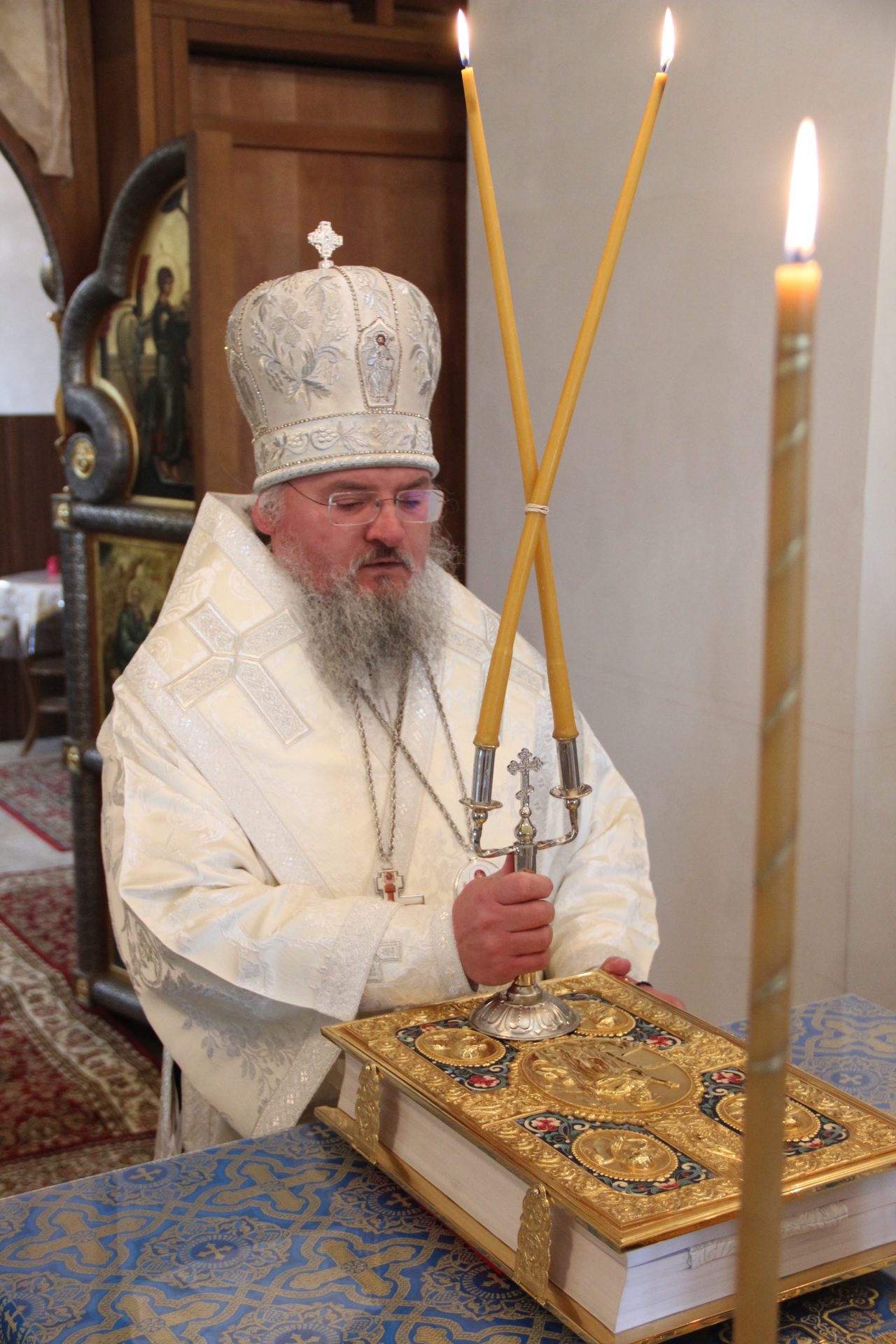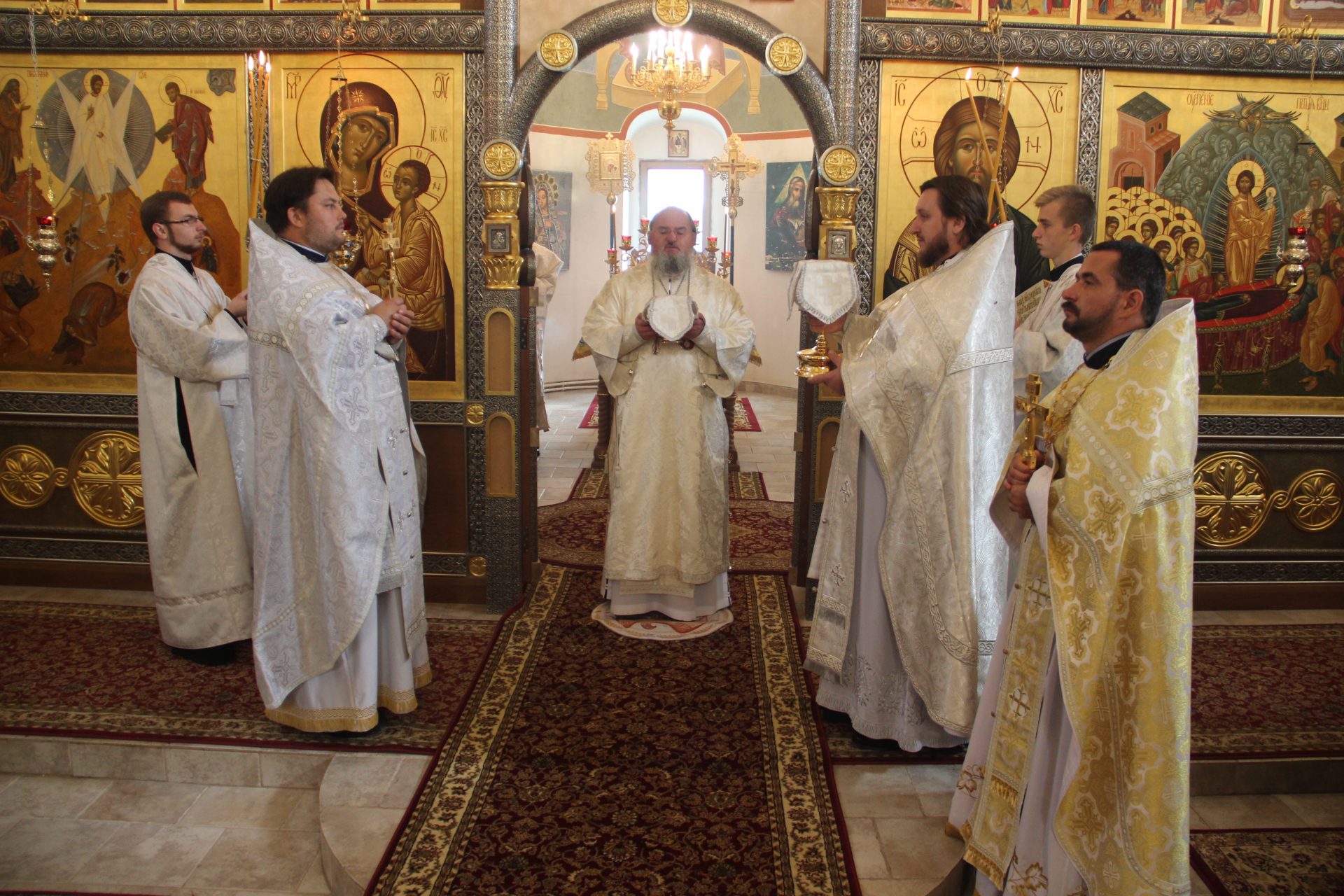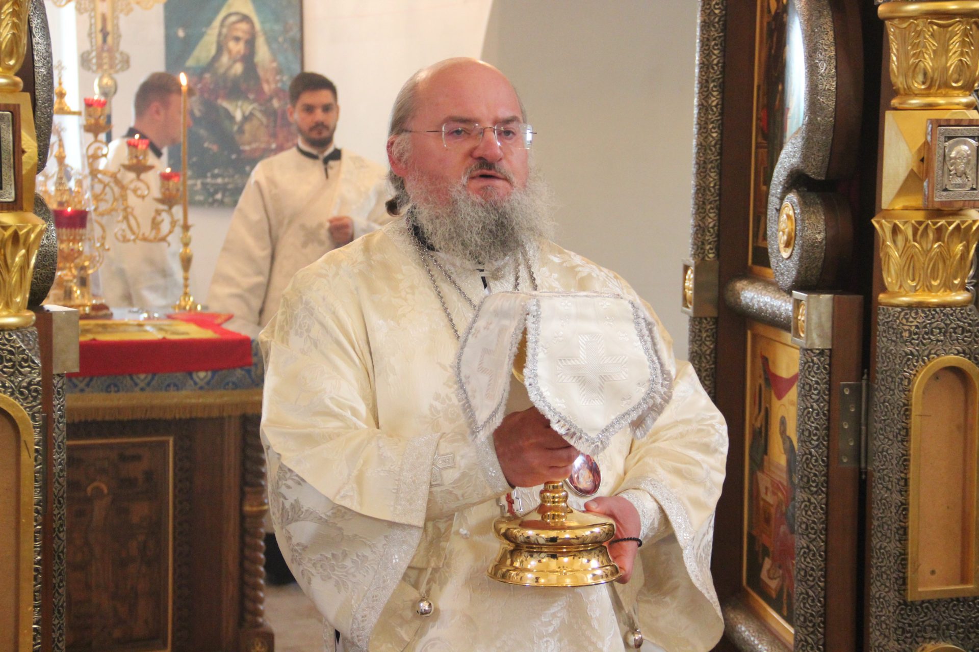 Преосвященному владыке сослужили: благочинный округа иеромонах Василий (Скоренко), протоиерей Антоний Хатунцев, иерей Павел Жаров, диакон Евгений Ковригин и диакон Евгений Васильев.