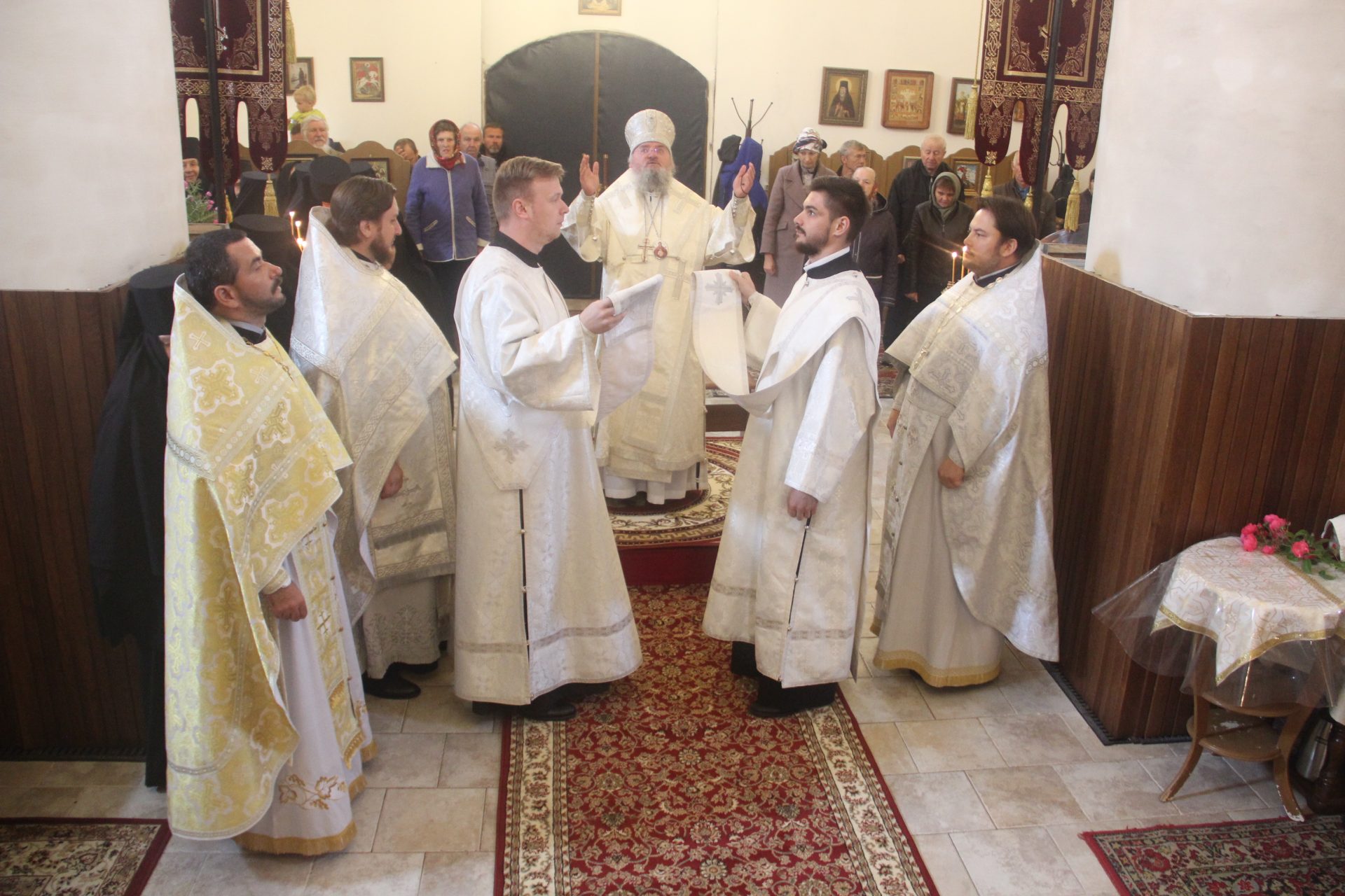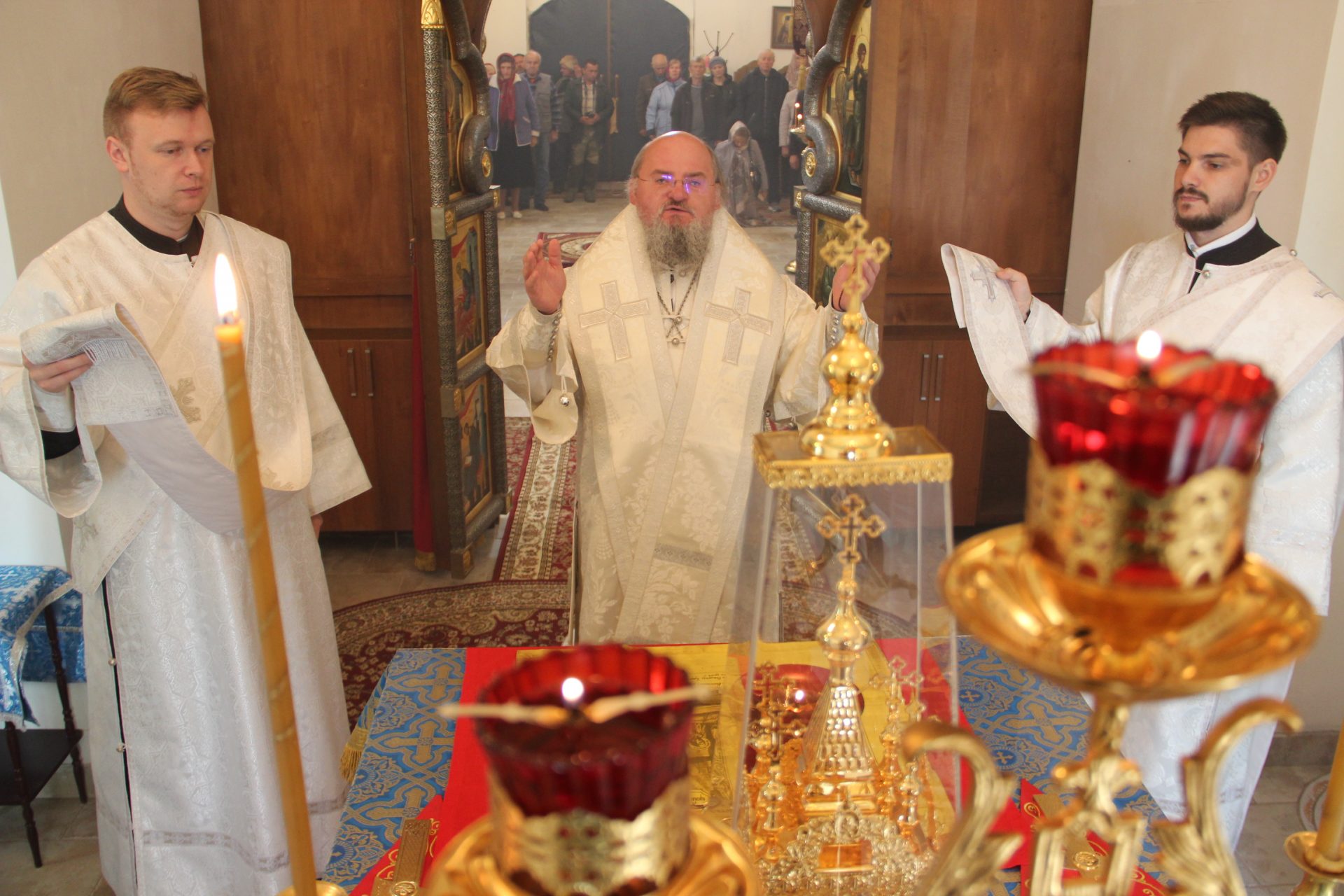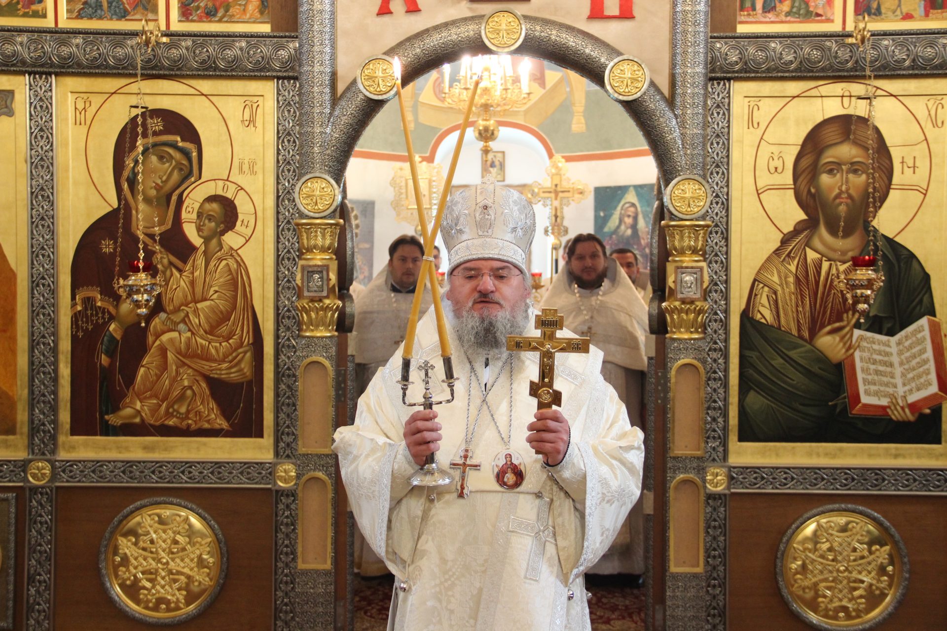 Преосвященному владыке сослужили: благочинный округа иеромонах Василий (Скоренко), протоиерей Антоний Хатунцев, иерей Павел Жаров, диакон Евгений Ковригин и диакон Евгений Васильев.