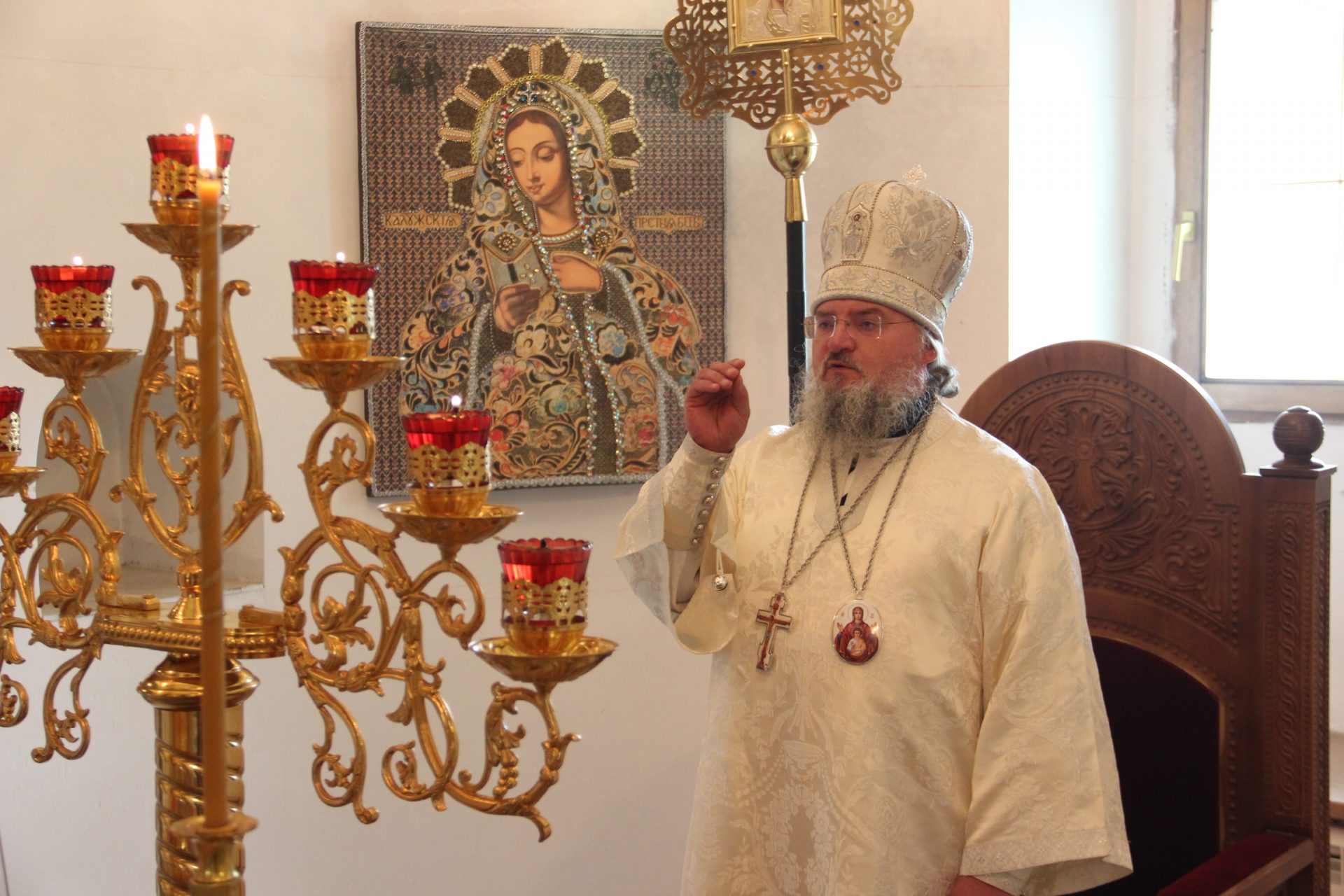 В завершении богослужения, вознеся молитву святому Архистратигу Небесных Сил бесплотных, владыка обратился к богомольцам с проповедью.