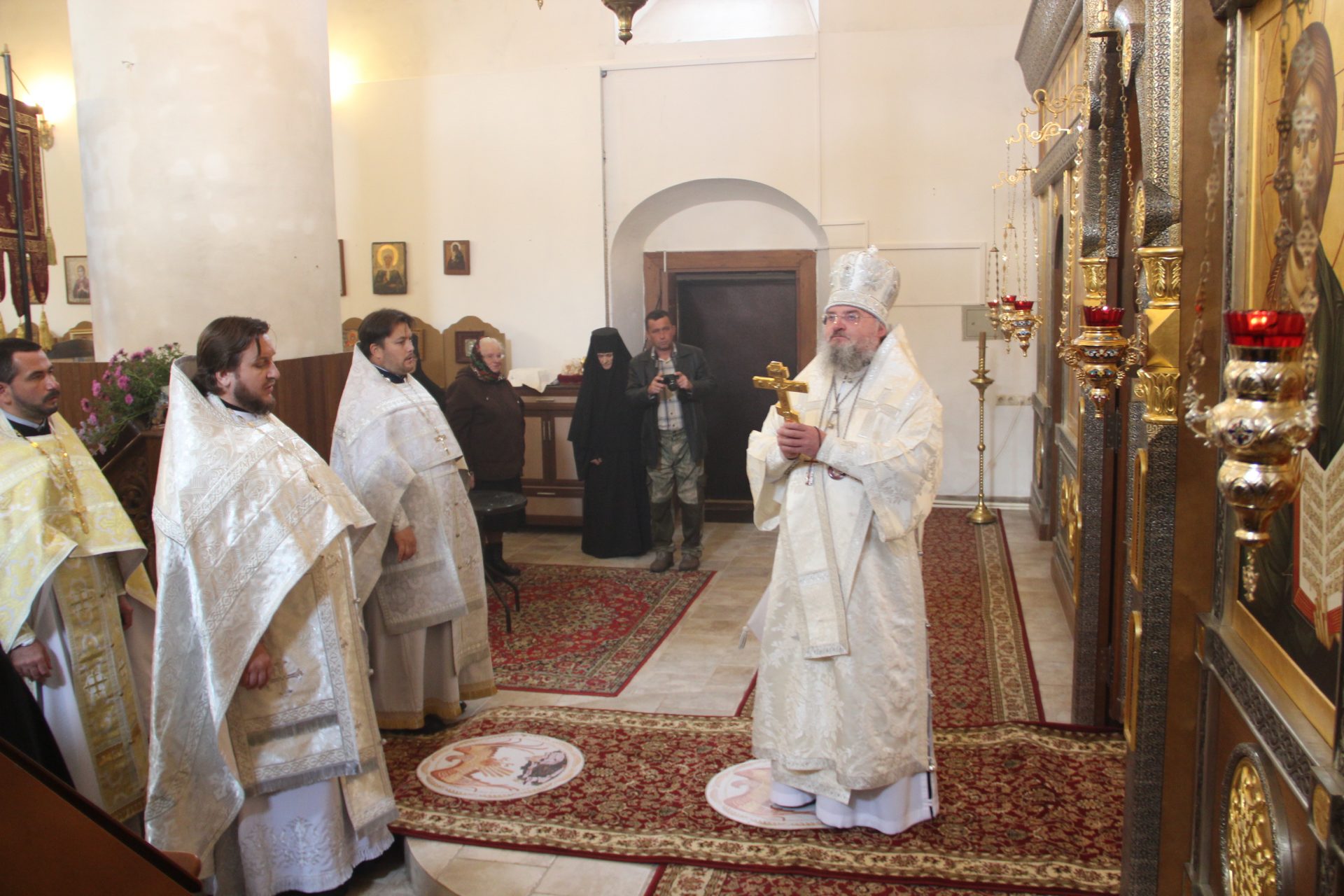 По благословению митрополита Калужского и Боровского Климента, епископ Козельский и Людиновский Никита совершил Божественную литургию в Успенском соборе женского Свято-Успенского монастыря поселка Гремячево Калужской епархии.