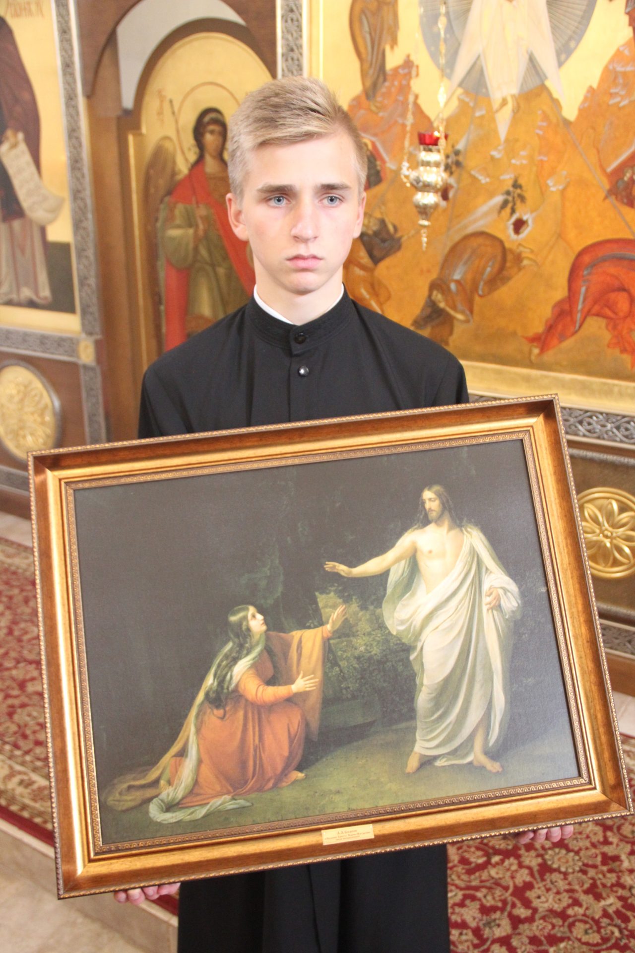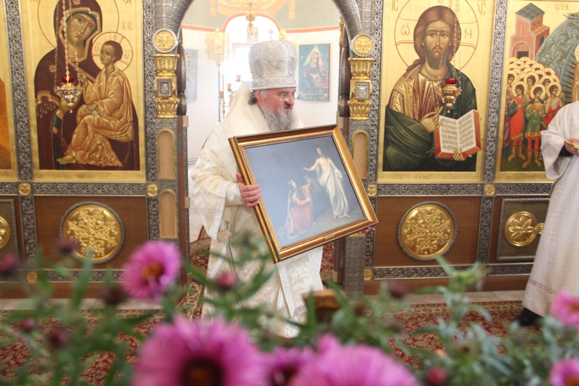 Архипастырь поздравил настоятельницу обители с днем тезоименитства и преподнес ей в дар картину на религиозную тему.