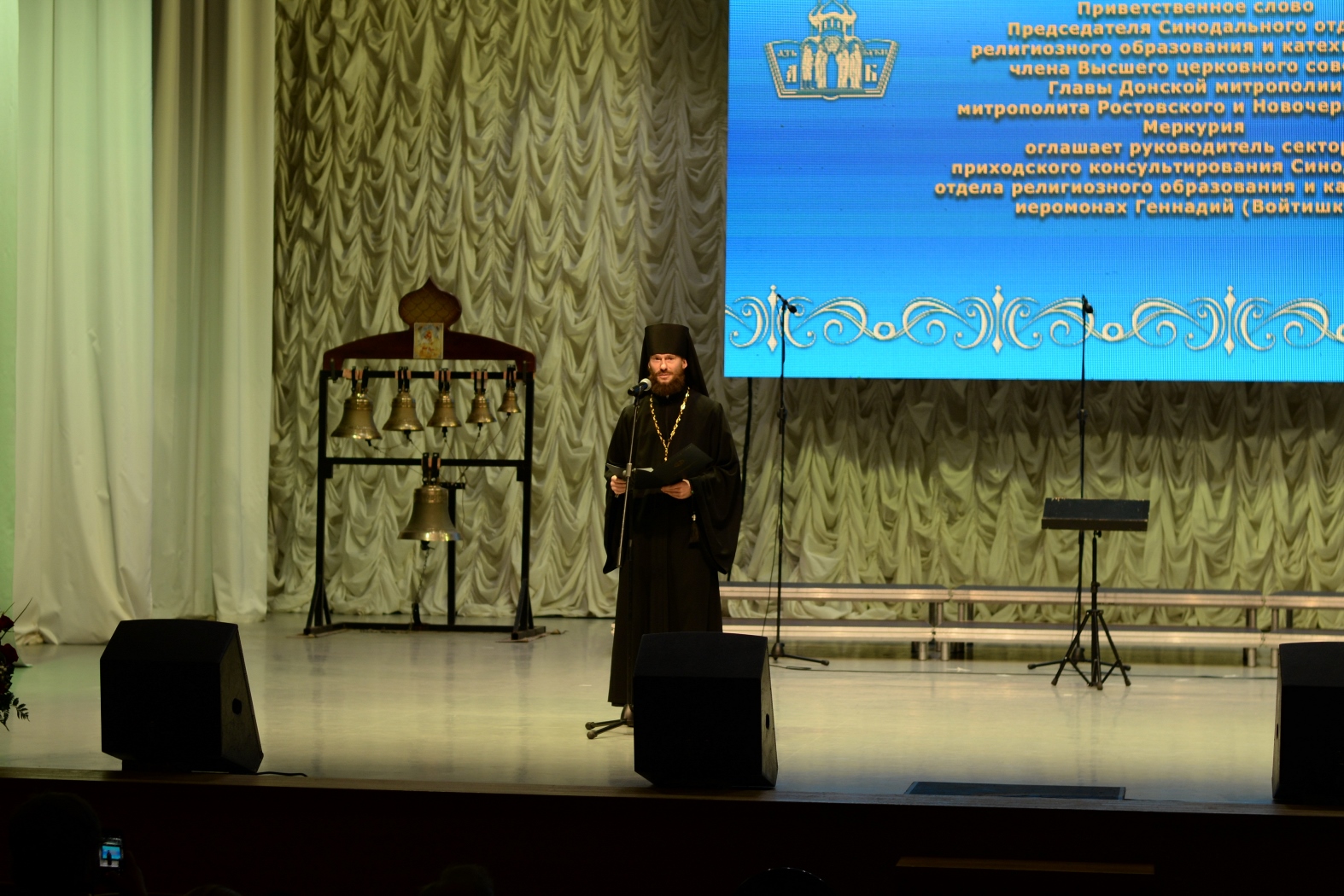 После осмотра экспозиций, в зале областной филармонии состоялось торжественное открытие Чтений. Перед выступлением с докладами и приветственными словами был совершен молебен, который возглавил благочинный города Калуги архимандрит Донат (Петенков).