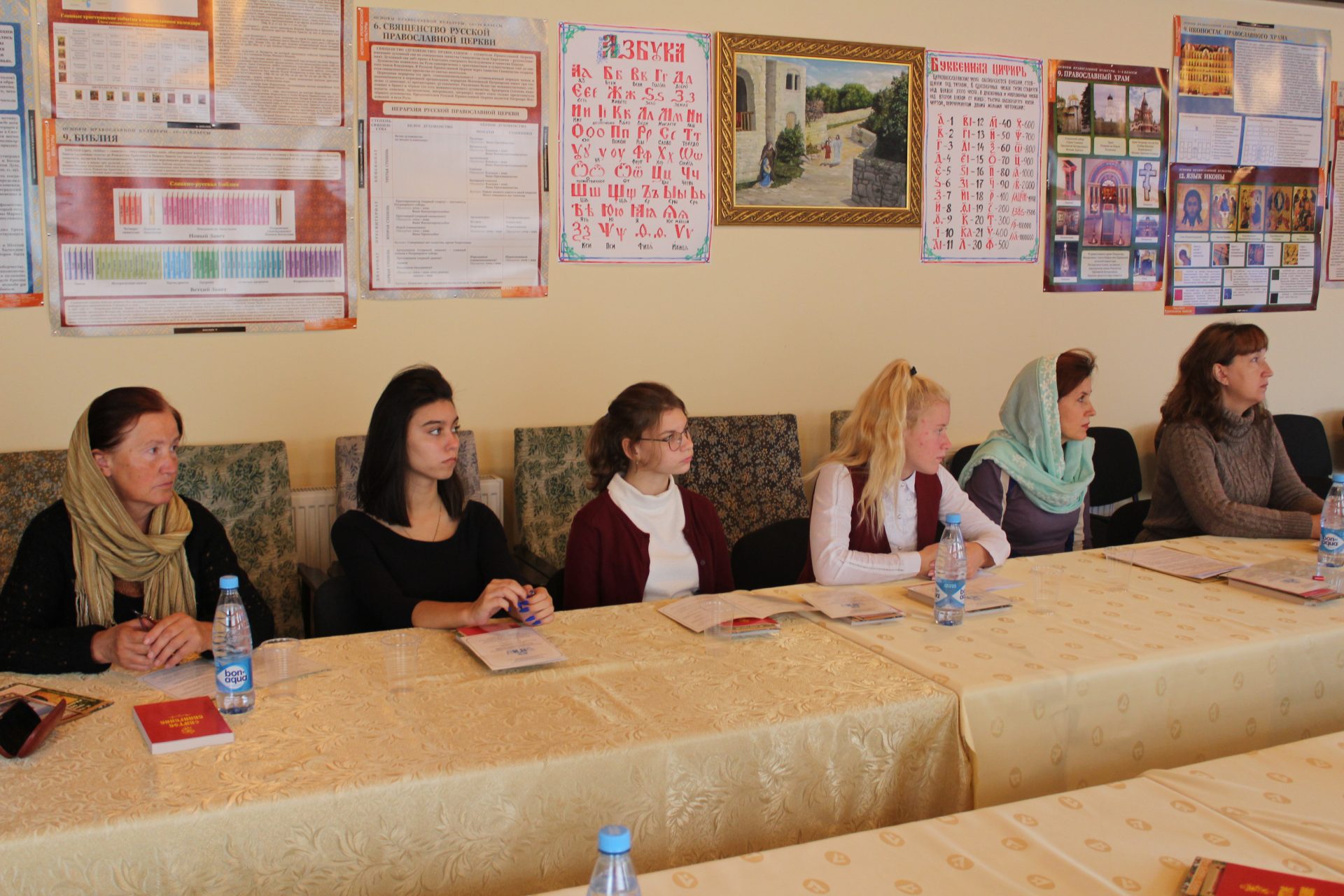 Участниками круглого стола стали учителя и старшеклассники воскресной школы «Радонеж» храма преподобного Сергия Радонежского, представители «Центра диагностики и консультирования, психолог центра социальной помощи семье и детям «Чайка», заведующий информационно-досуговым отделом Районного Дома культуры, учителя воскресных школ благочиния.
