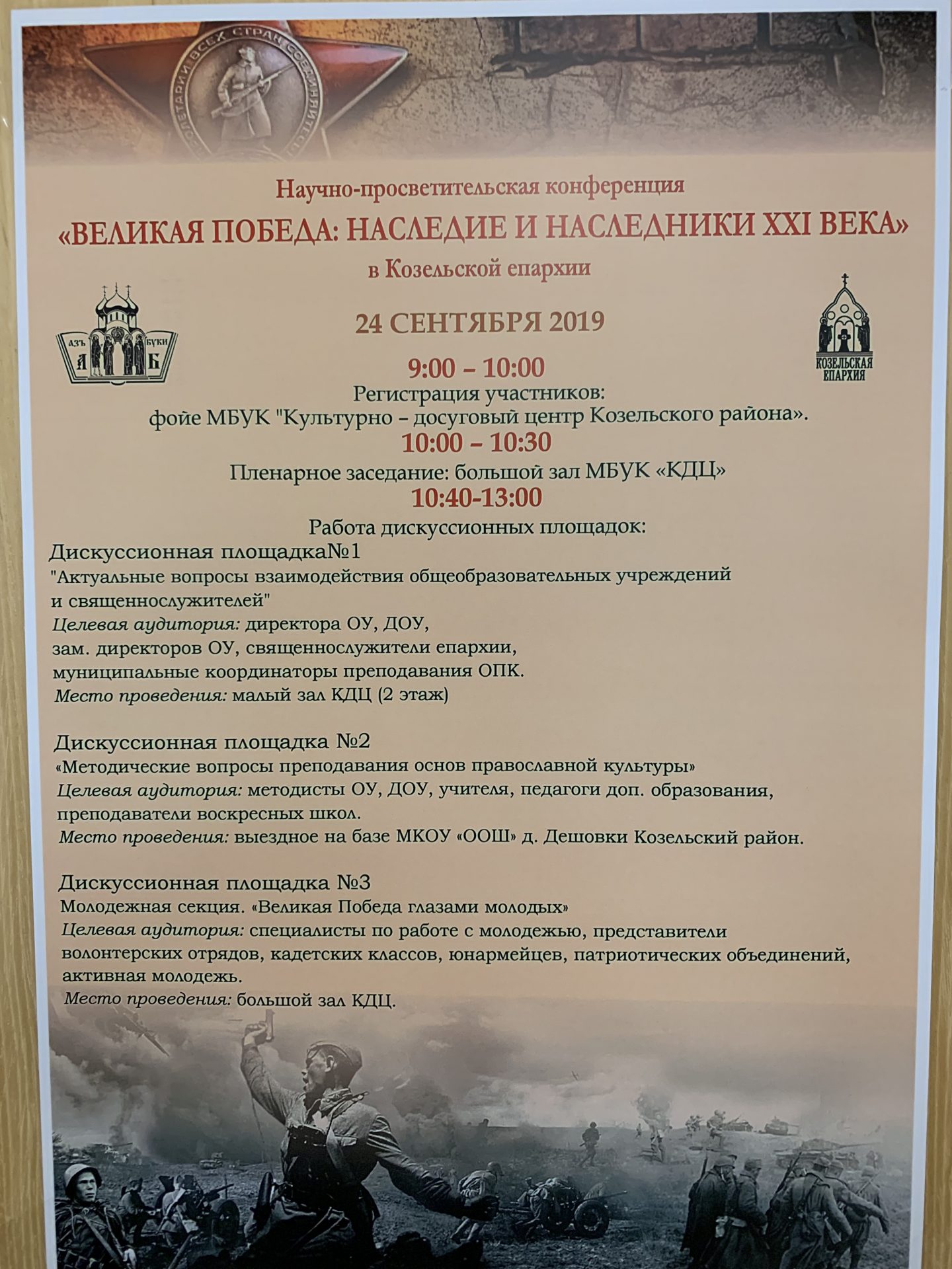 24 сентября в рамках Козельского выездного заседания XXII Богородично-Рождественских образовательных чтений Калужской митрополии состоялась научно-просветительская конференция «Великая Победа: наследие и наследники XXI века».