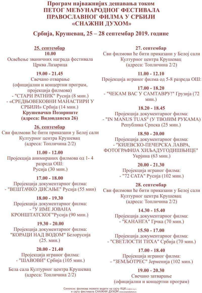 Протоиерей Алексий Жиганов отправился в братскую страну Сербию для представления фильма местным жителям. В начале дня в церкви Лазарица (святого архидиакона Стефана) в Крушевце состоялось освящение призов, где отец Алексий сослужил вместе с отцом Желько, настоятелем храма. Позже, на открытии кинофестиваля своё приветственное слово высказали организаторы мероприятия, а также священнослужители и представители местной власти. Состоялось выступление приглашённой болгарской труппы и друга фестиваля, московской певицы Ольги Мосальской.