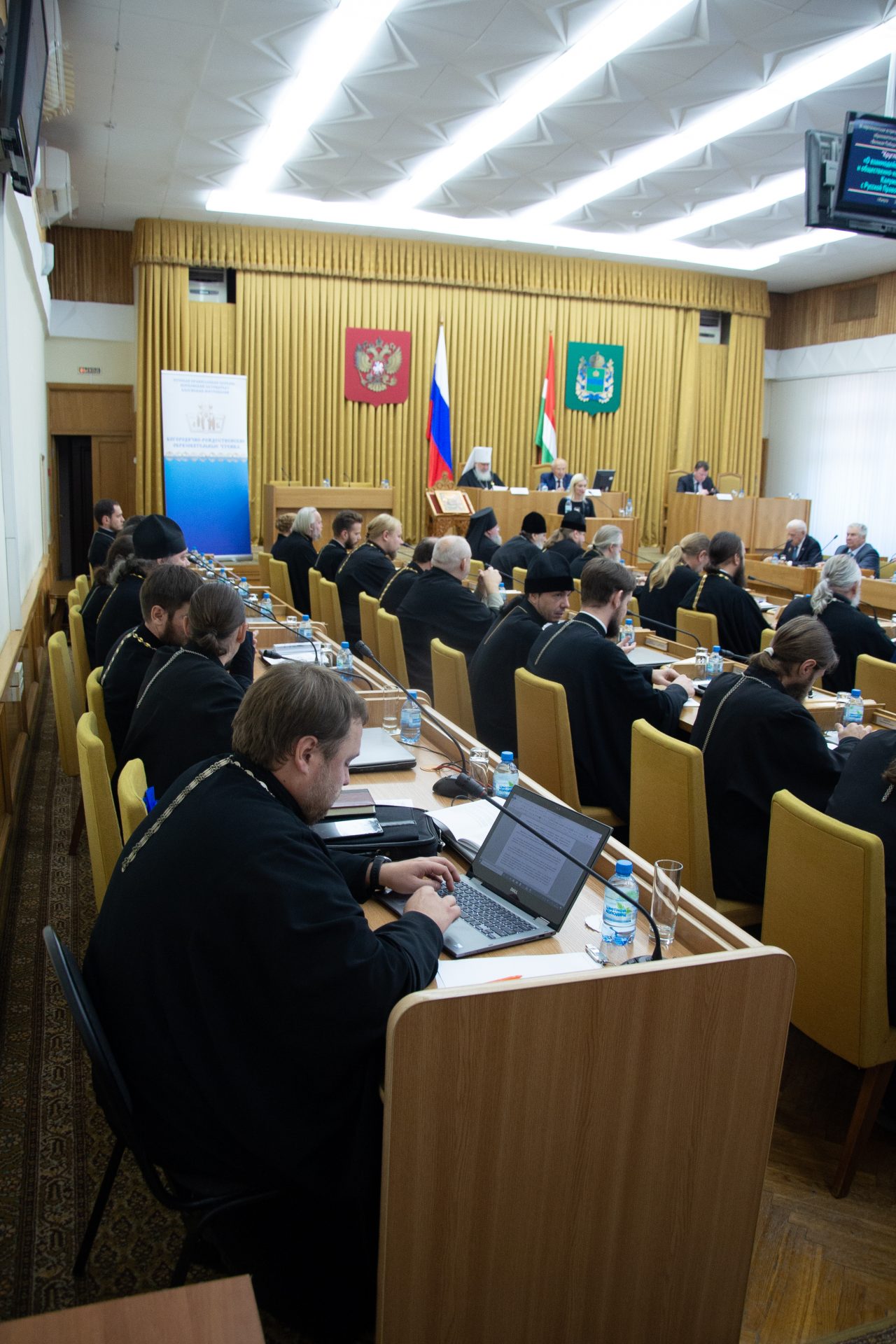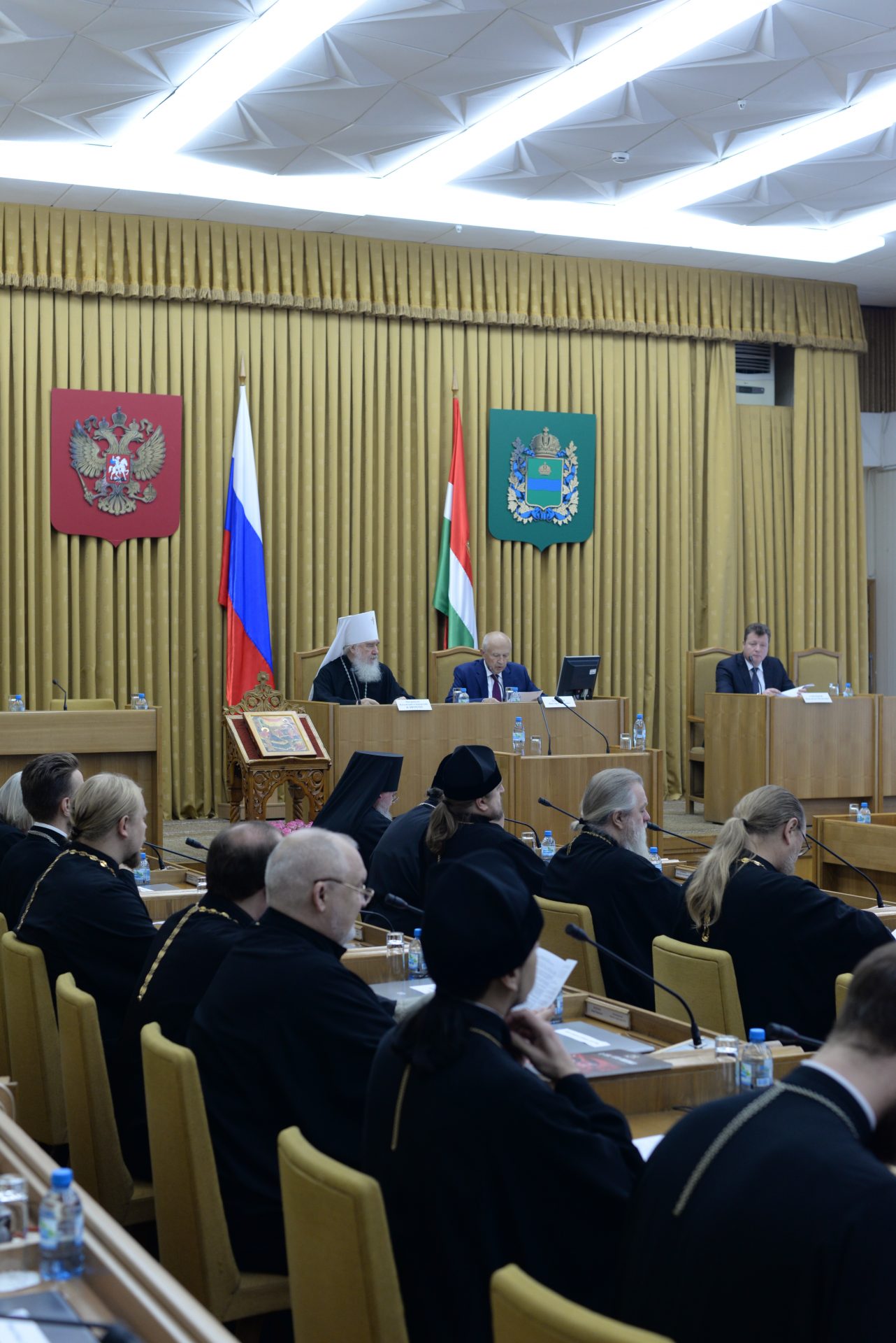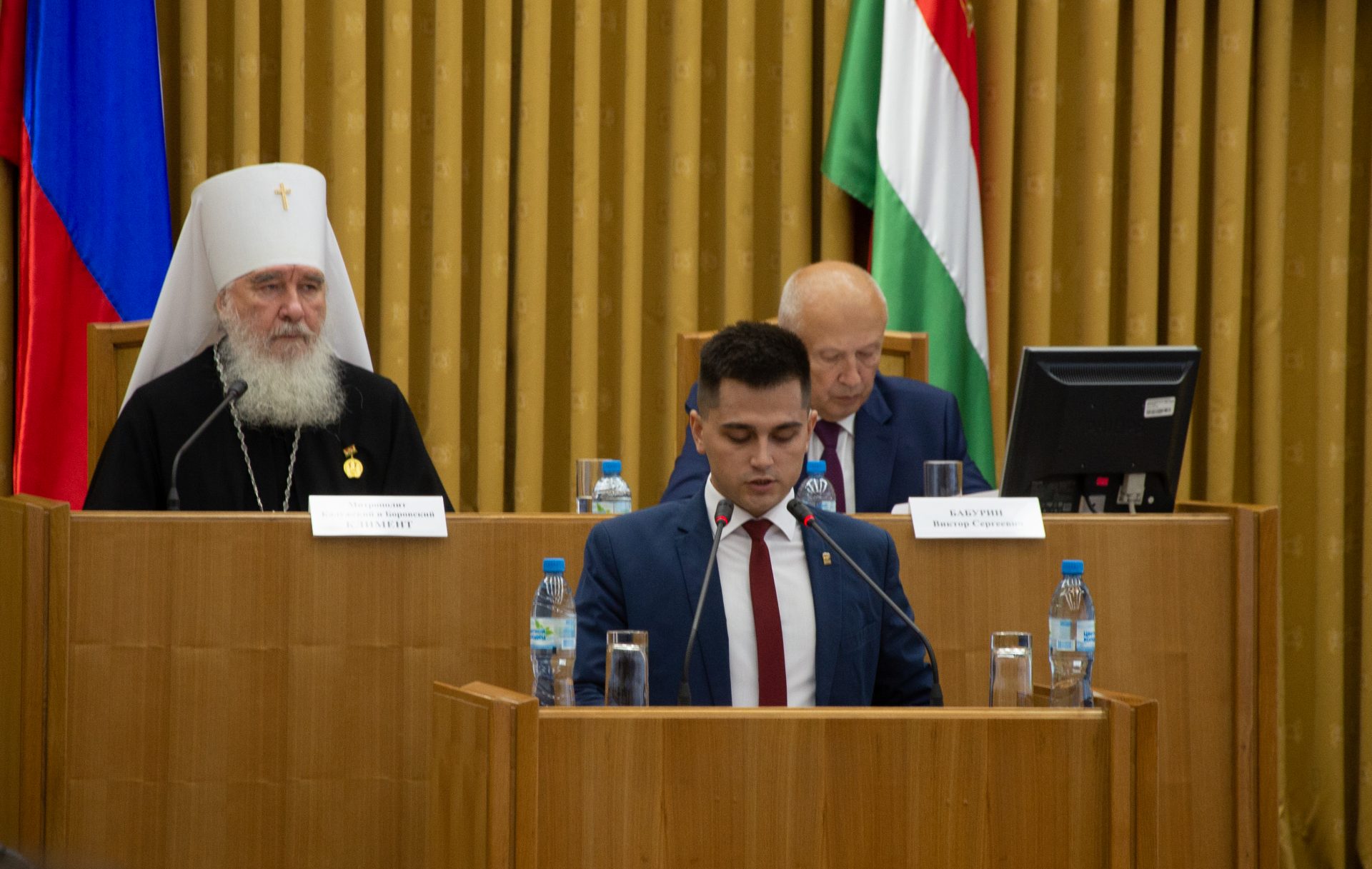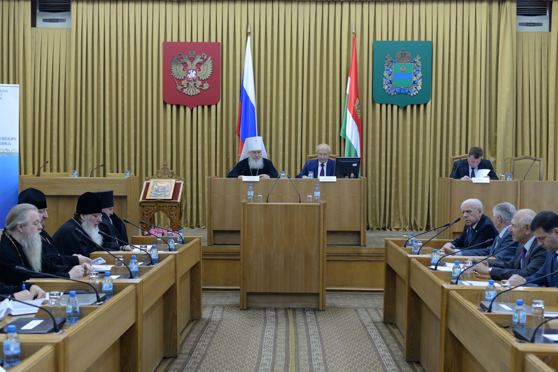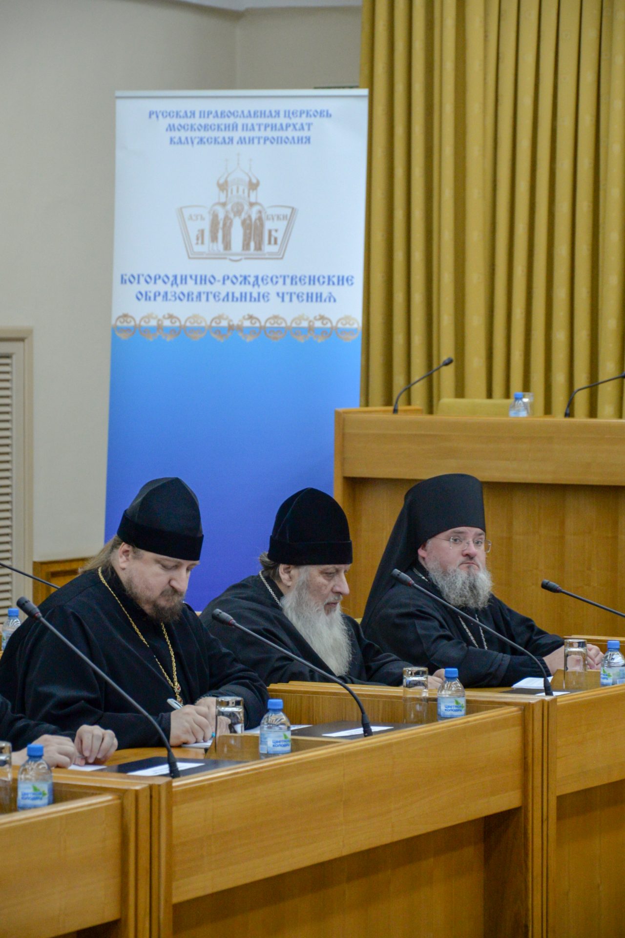 Открыли заседание митрополит Калужский и Боровский Климент, председатель Издательского совета Русской Православной Церкви, Глава Калужской митрополии и Бабурин Виктор Сергеевич, Председатель Законодательного Собрания Калужской области.