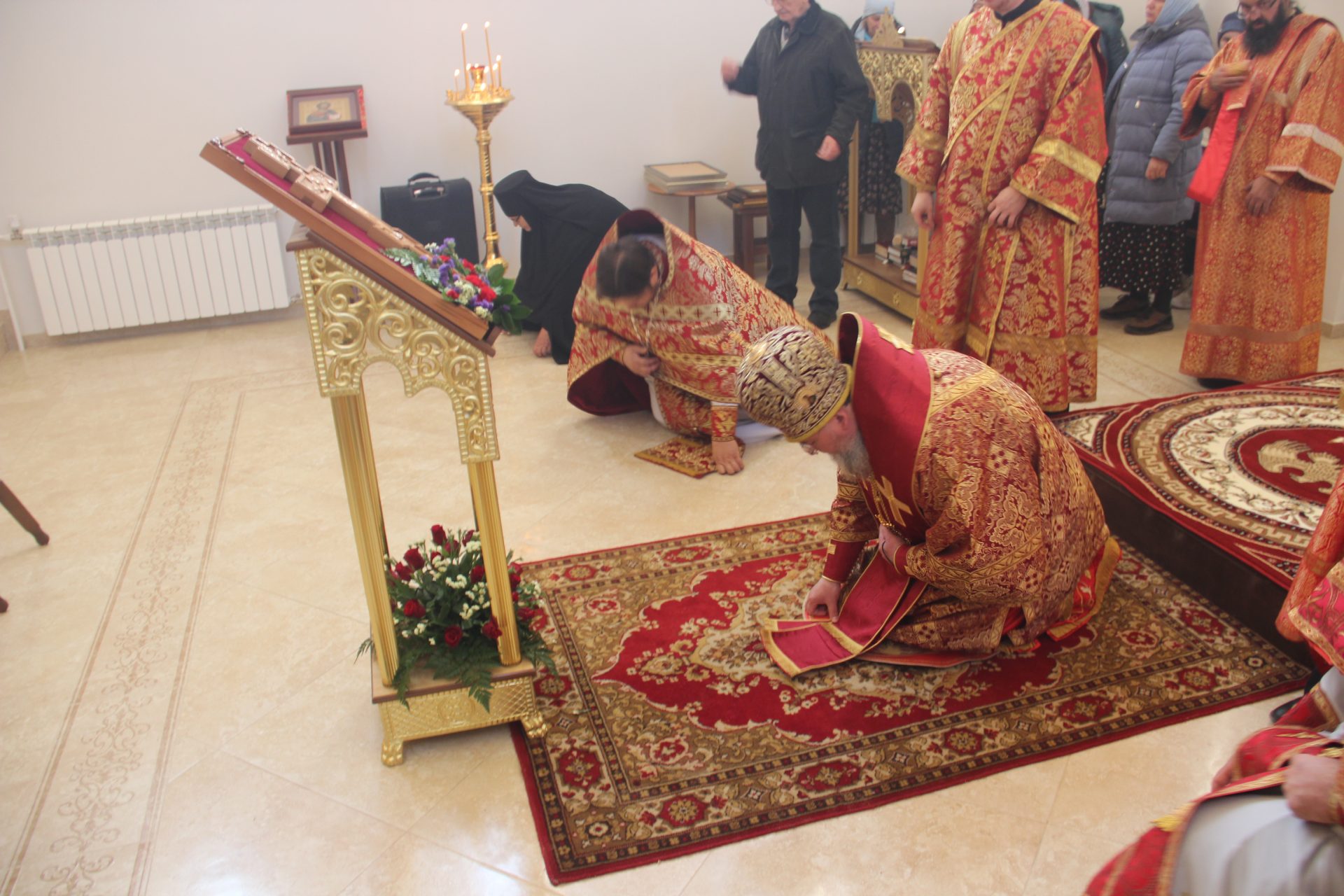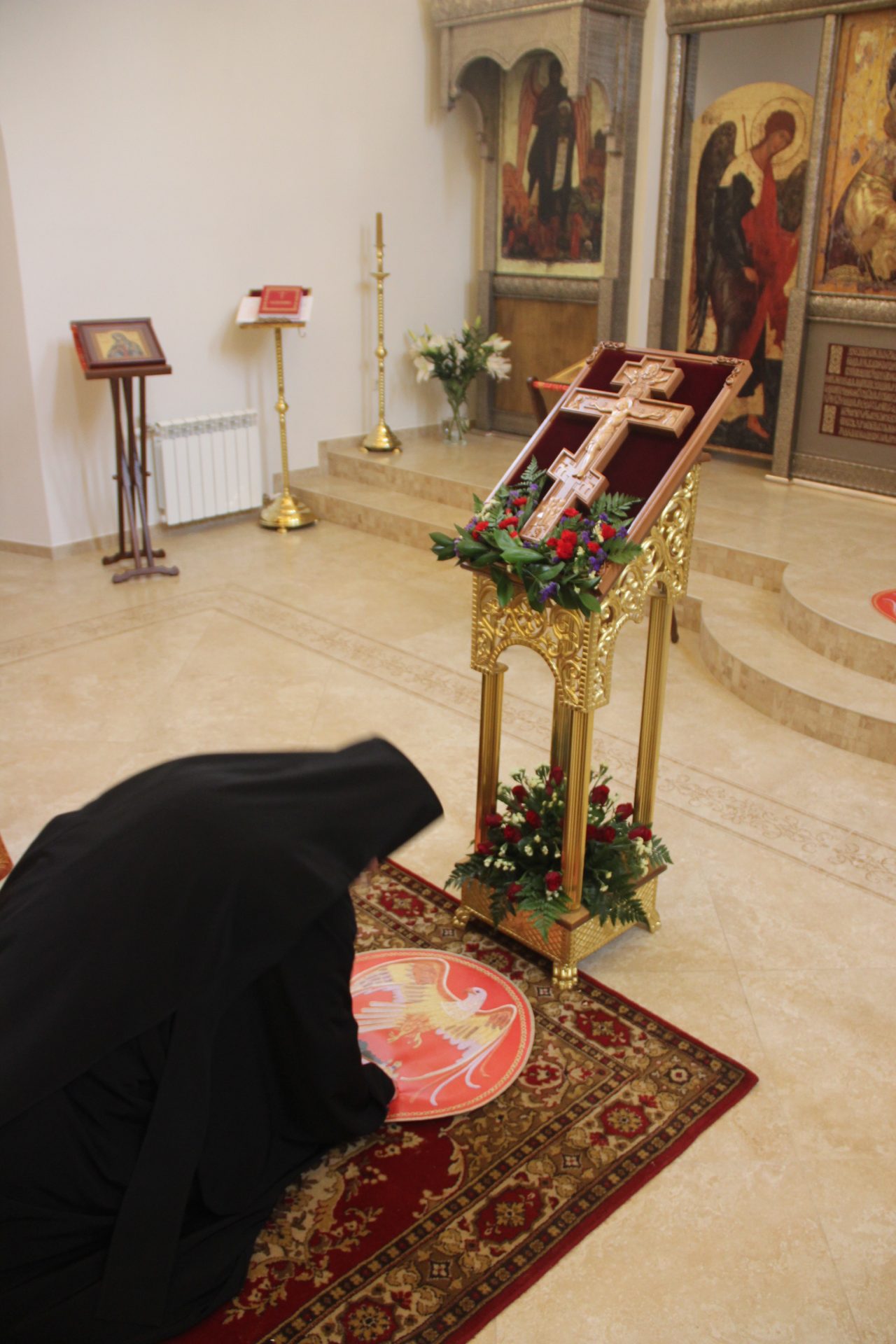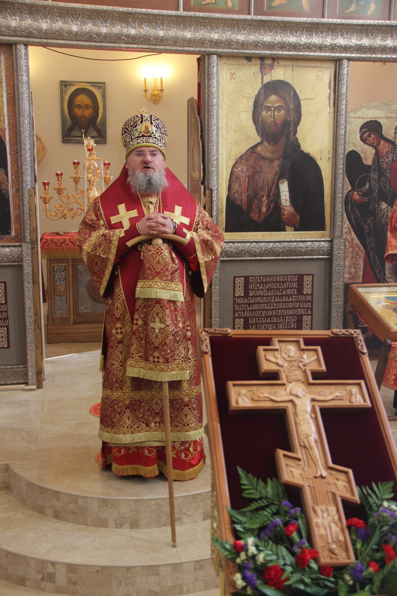 По отпусте литургии состоялось славление и поклонение Кресту Господню.