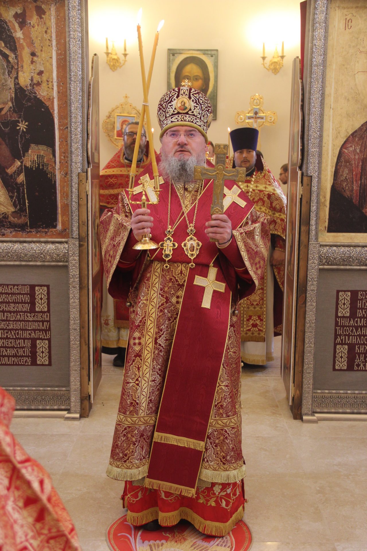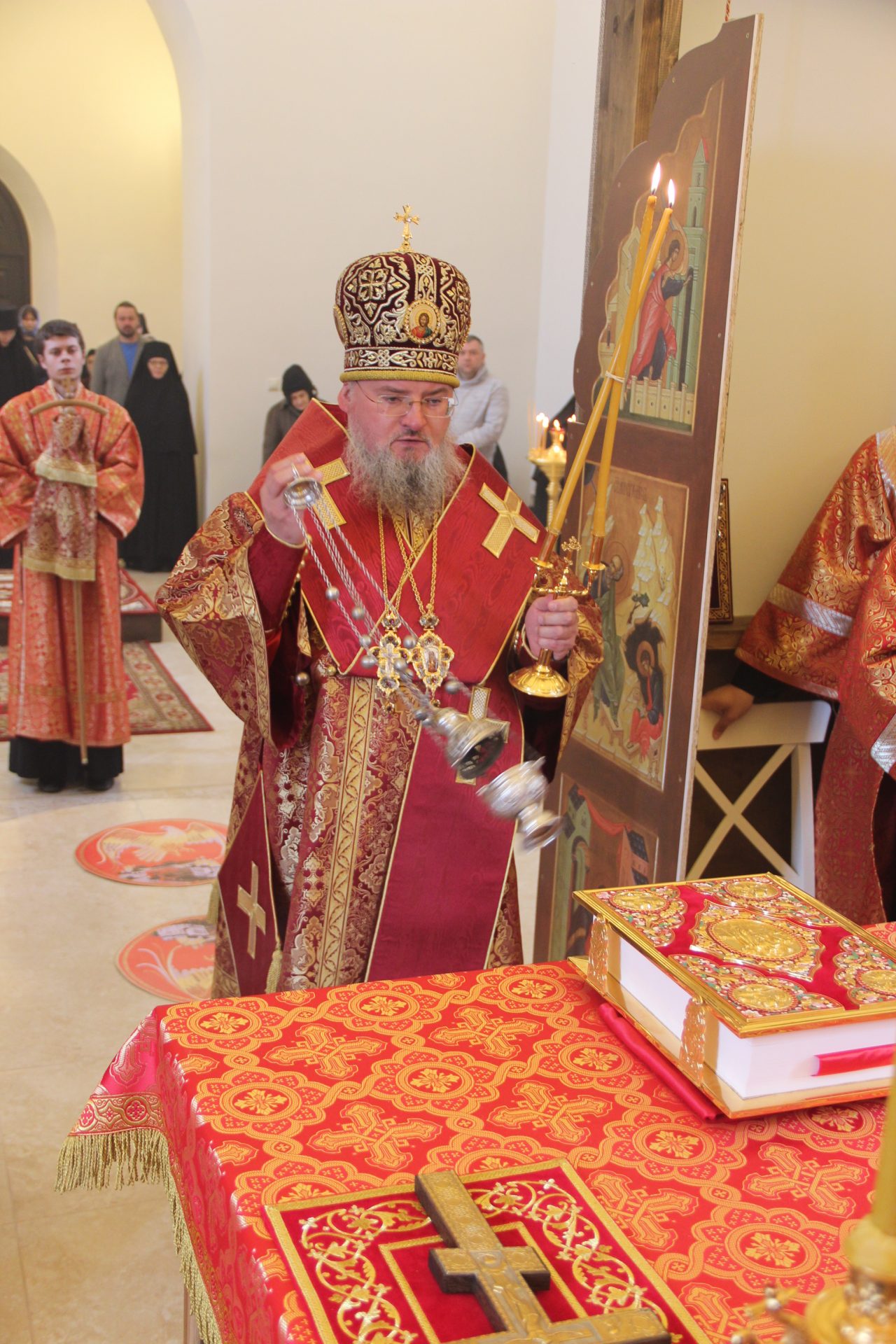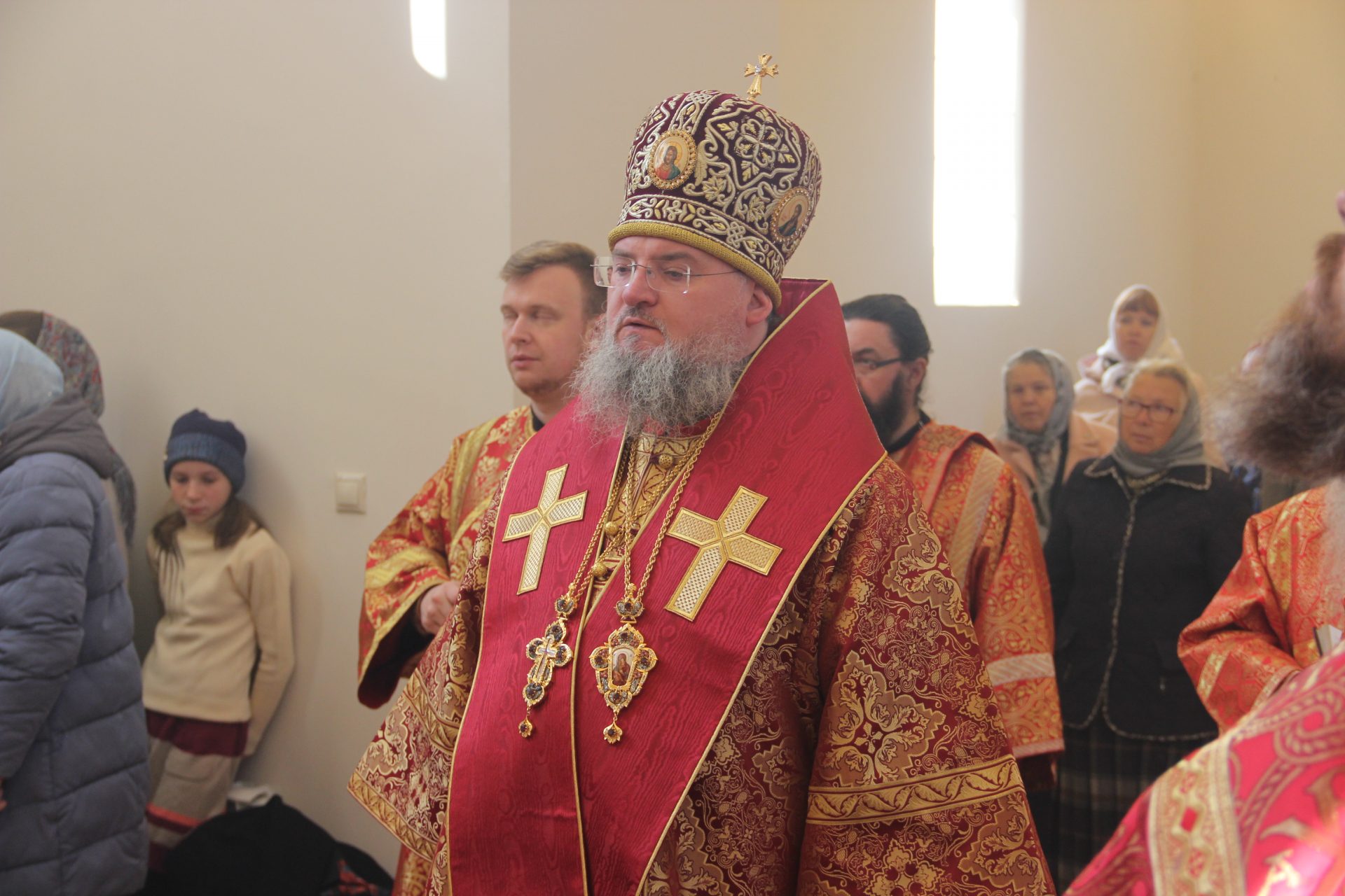 Преосвященному владыке сослужили: протоиерей Антоний Хатунцев, иерей Алексий Боков, диакон Евгений Ковригин, иеродиакон Виталий (Павленко) и диакон Ярослав Стрельников.