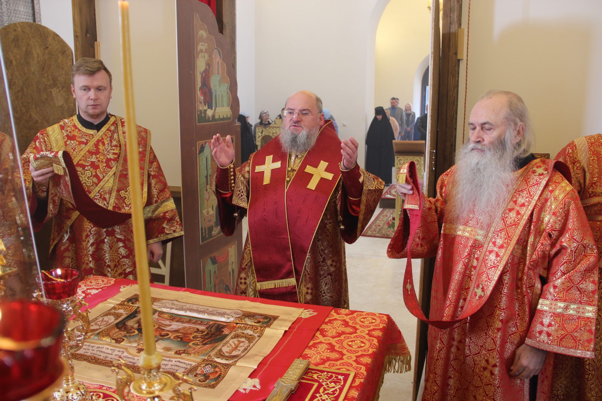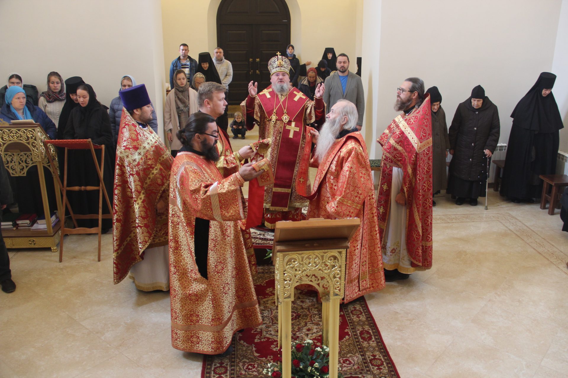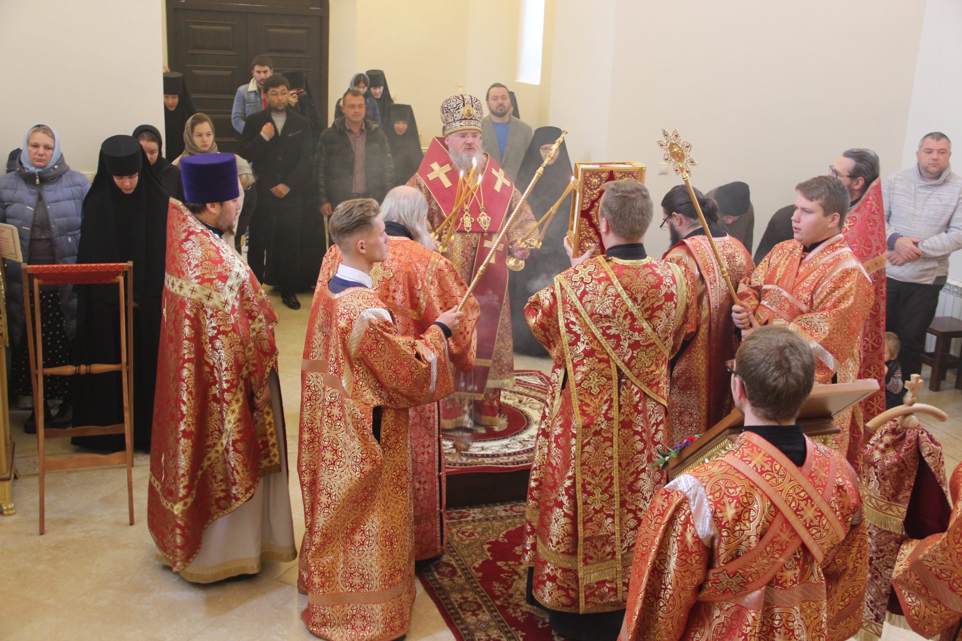 Преосвященному владыке сослужили: протоиерей Антоний Хатунцев, иерей Алексий Боков, диакон Евгений Ковригин, иеродиакон Виталий (Павленко) и диакон Ярослав Стрельников.