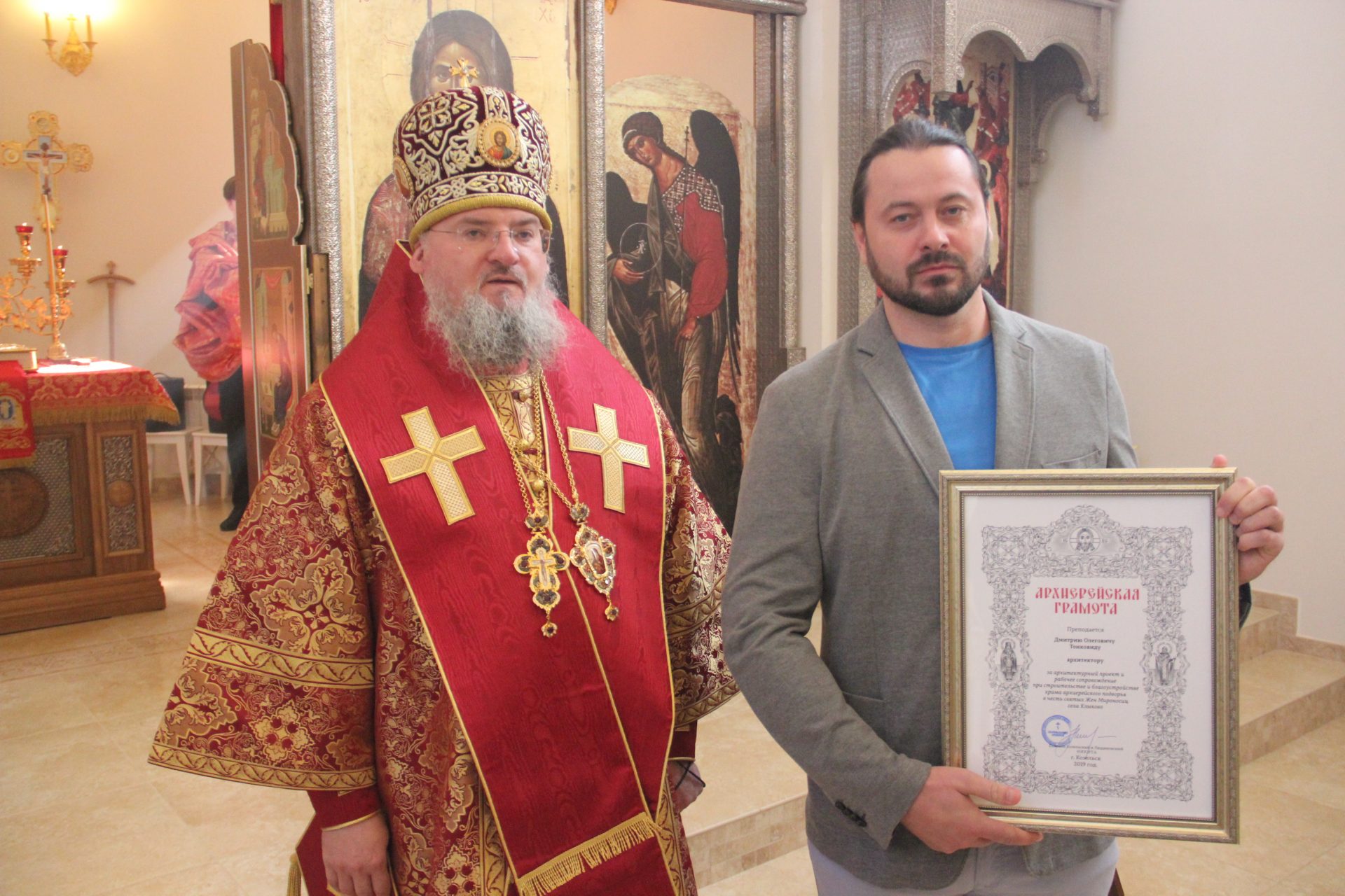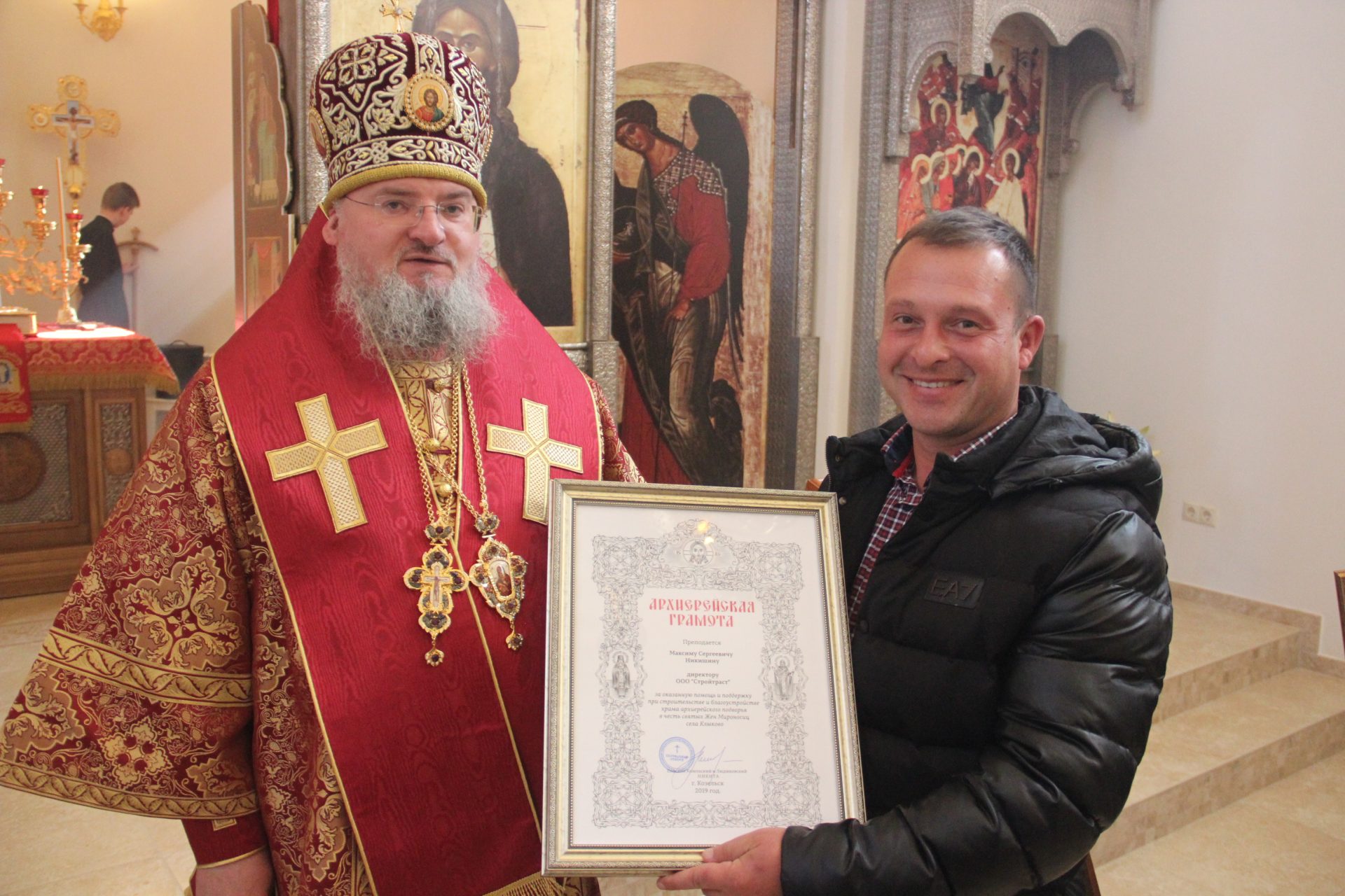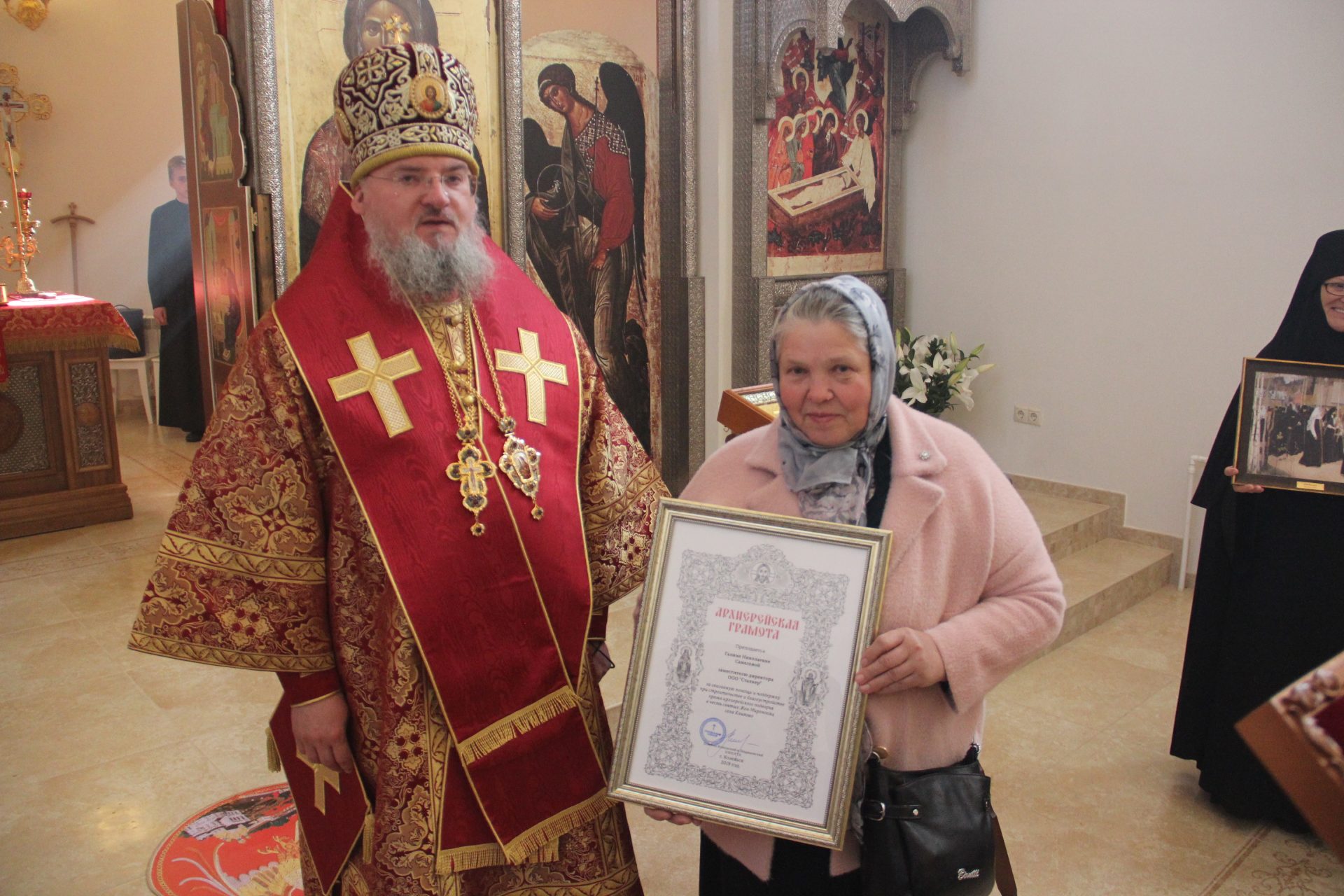 Архиерейскими грамотами были награждены благотворители, участвовавшие в строительстве храма святых Жен Мироносиц.
