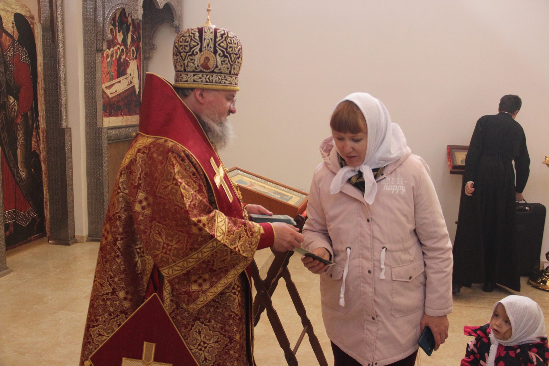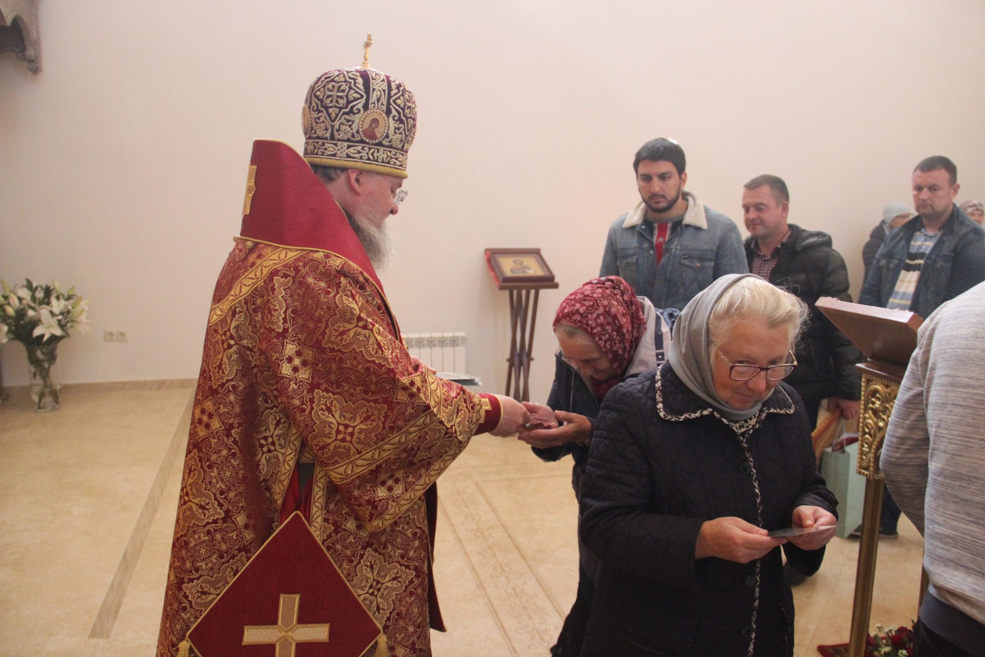 Все присутствовавшие на богослужении получили из рук владыки, в память о совместной молитве, небольшие иконки.
