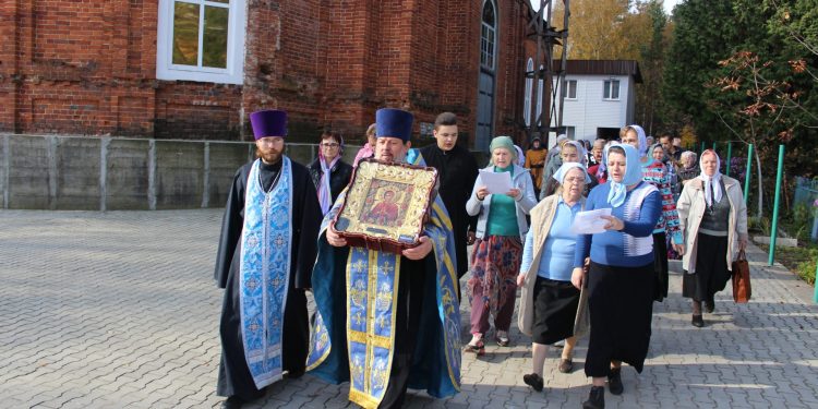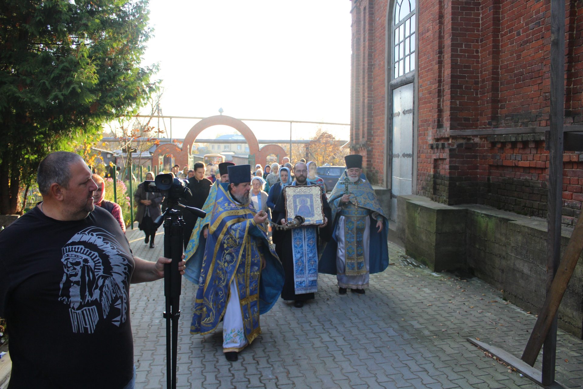 В храме преподобного Сергия Радонежского города Людиново встретили чудотворную мироточивую икону Пресвятой Богородицы