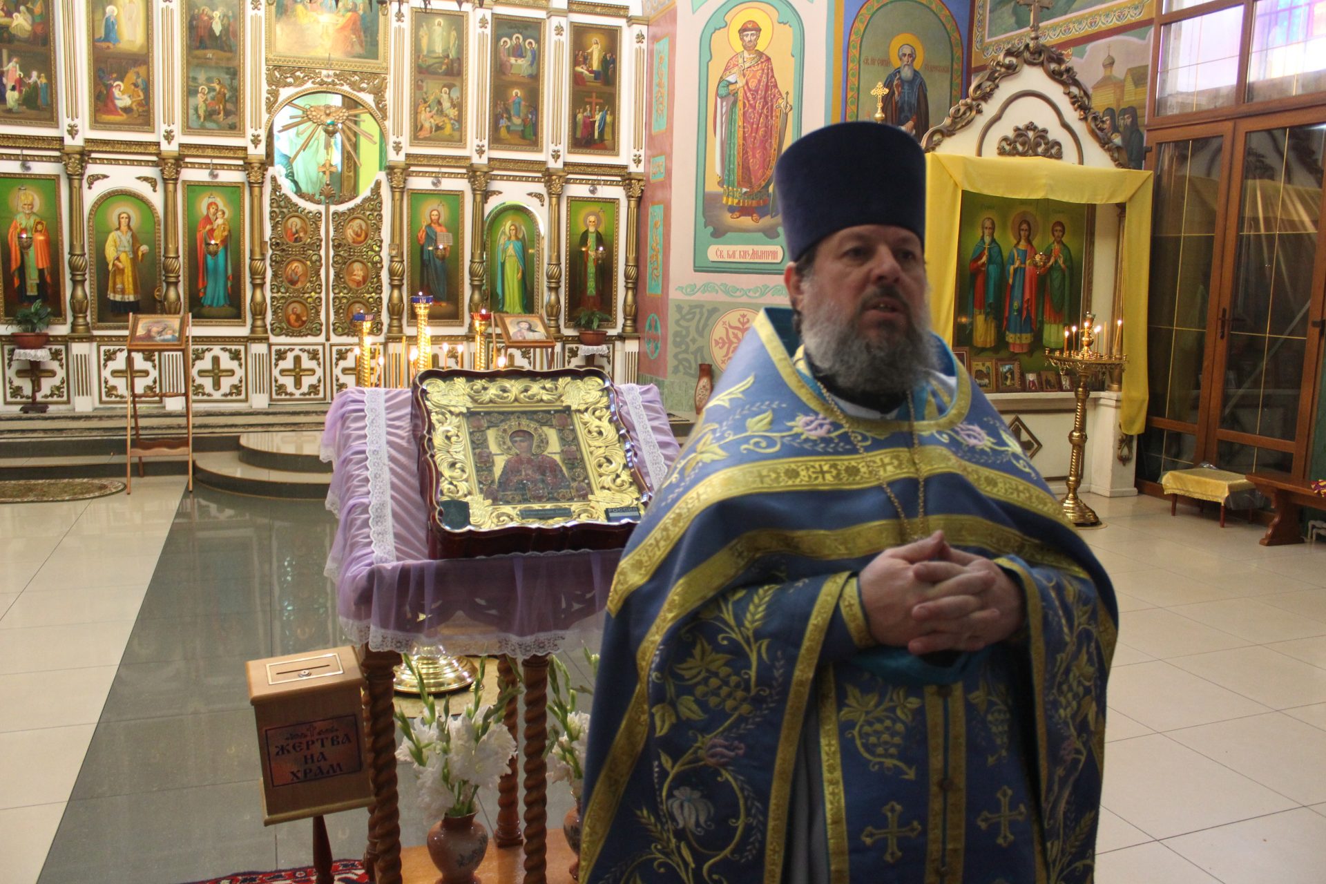 Настоятель храма преподобного Сергия Радонежского протоиерей Василий Биляк в своей вступительной речи по прибытии иконы сказал: «Икона Богоматери помогает в самые тяжкие минуты как одного человека, так и всего православного общества в целом. Дева Мария является первой молитвенницей и защитницей рода христианского перед Престолом Божиим, потому ей принято молится в любых нуждах, душевных терзаниях, болезнях и скорбях. Она всегда услышит наши молитвы и поможет каждому просящему. Главное верить и возносить пламенную молитву каждый раз, как только человек стоит перед Святым ликом. Хочется верить, что каждый верующий сможет почувствовать ту благодать, ту любовь и незримое заступничество Божией Матери, оказанное нам в этот день!»