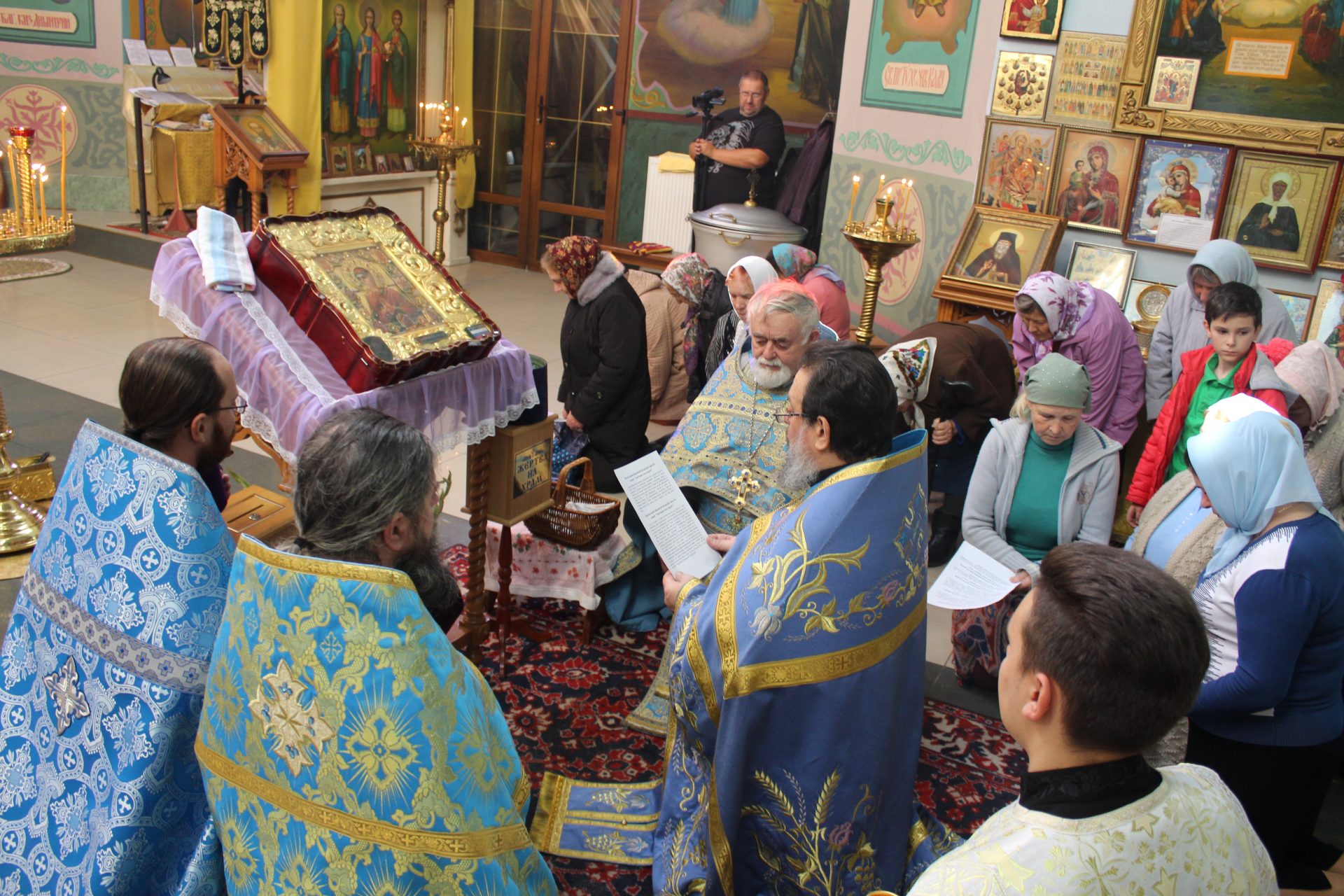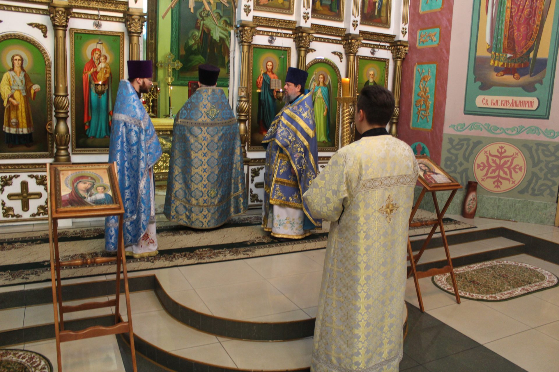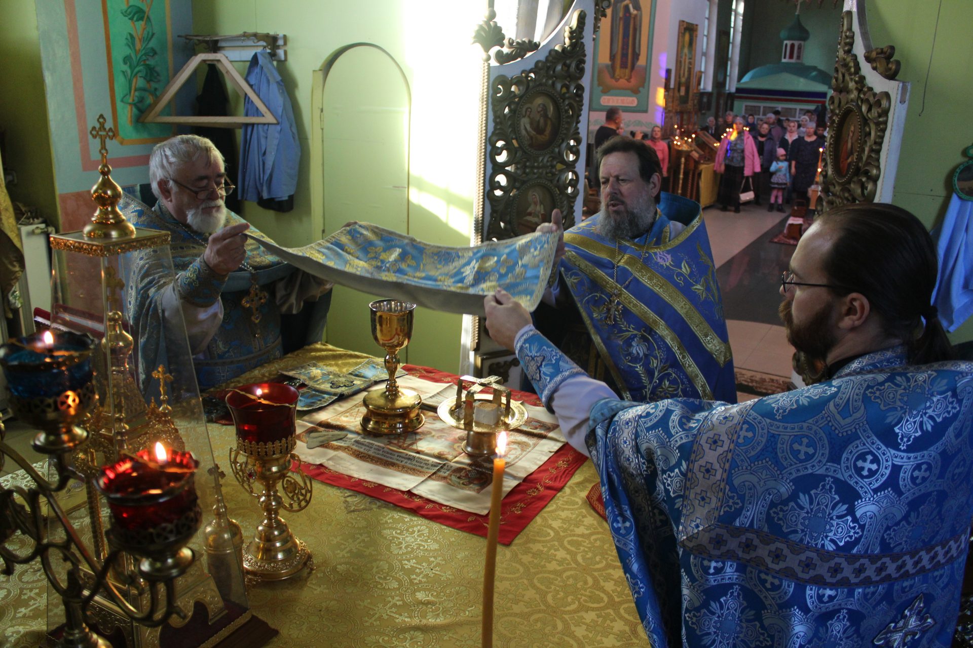 После Божественной Литургии было совершено славление Божией Матери, прочитана молитва, затем был отслужен водосвятный молебен.