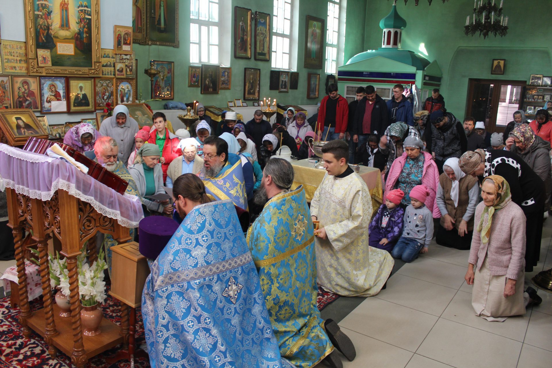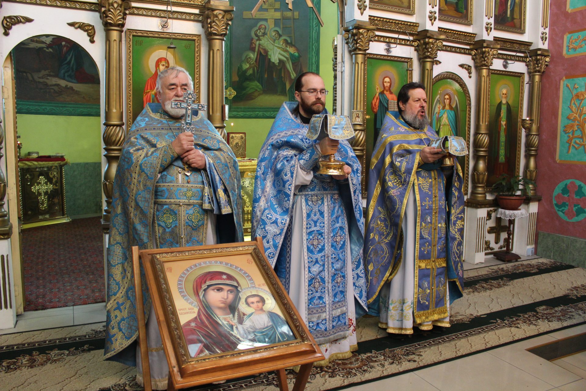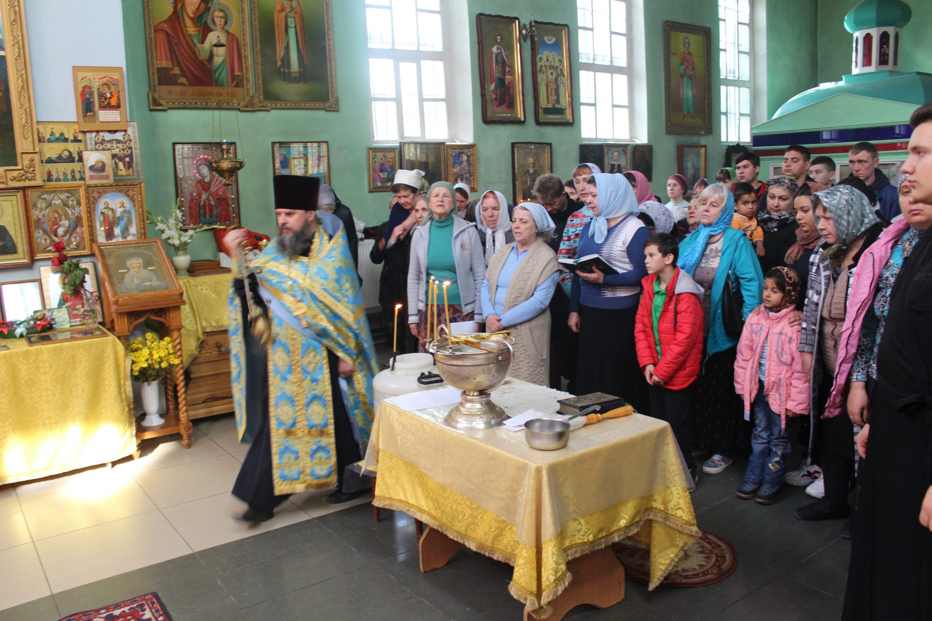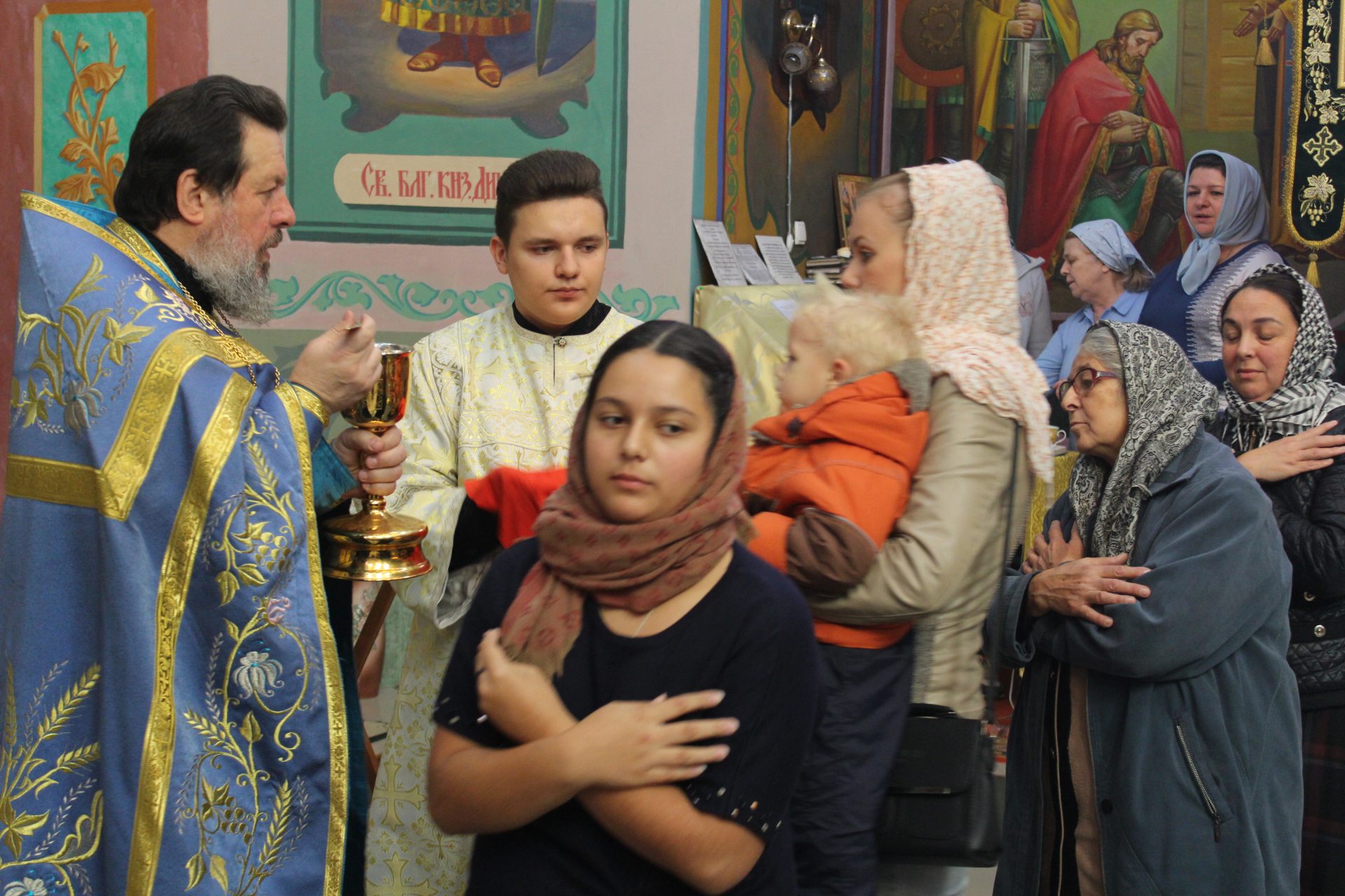 После Божественной Литургии было совершено славление Божией Матери, прочитана молитва, затем был отслужен водосвятный молебен.