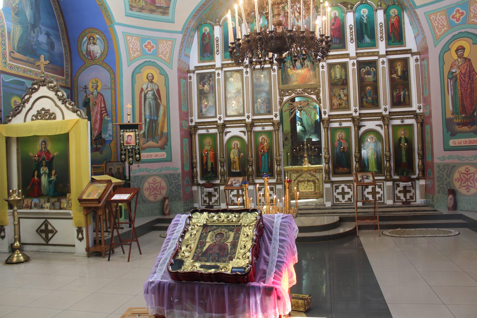 Все верующие были помазаны святым елеем перед иконой Божией Матери