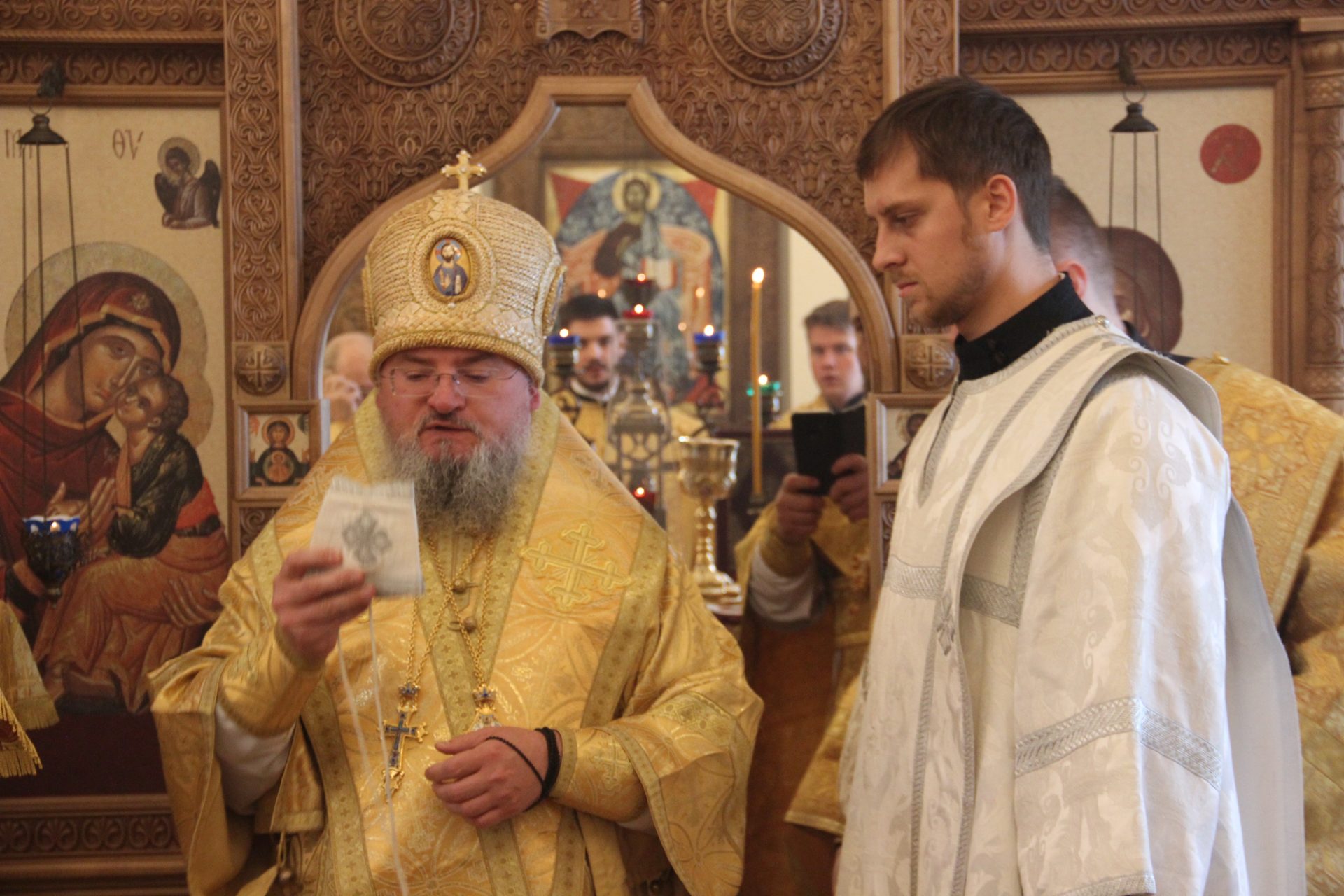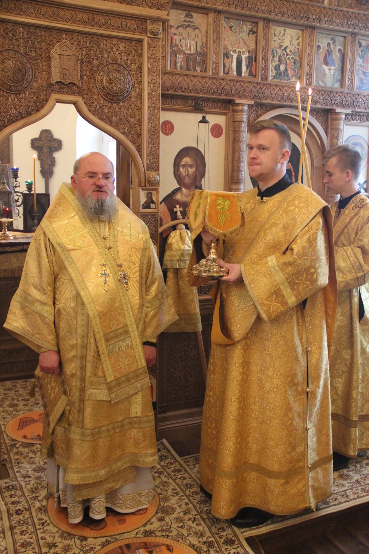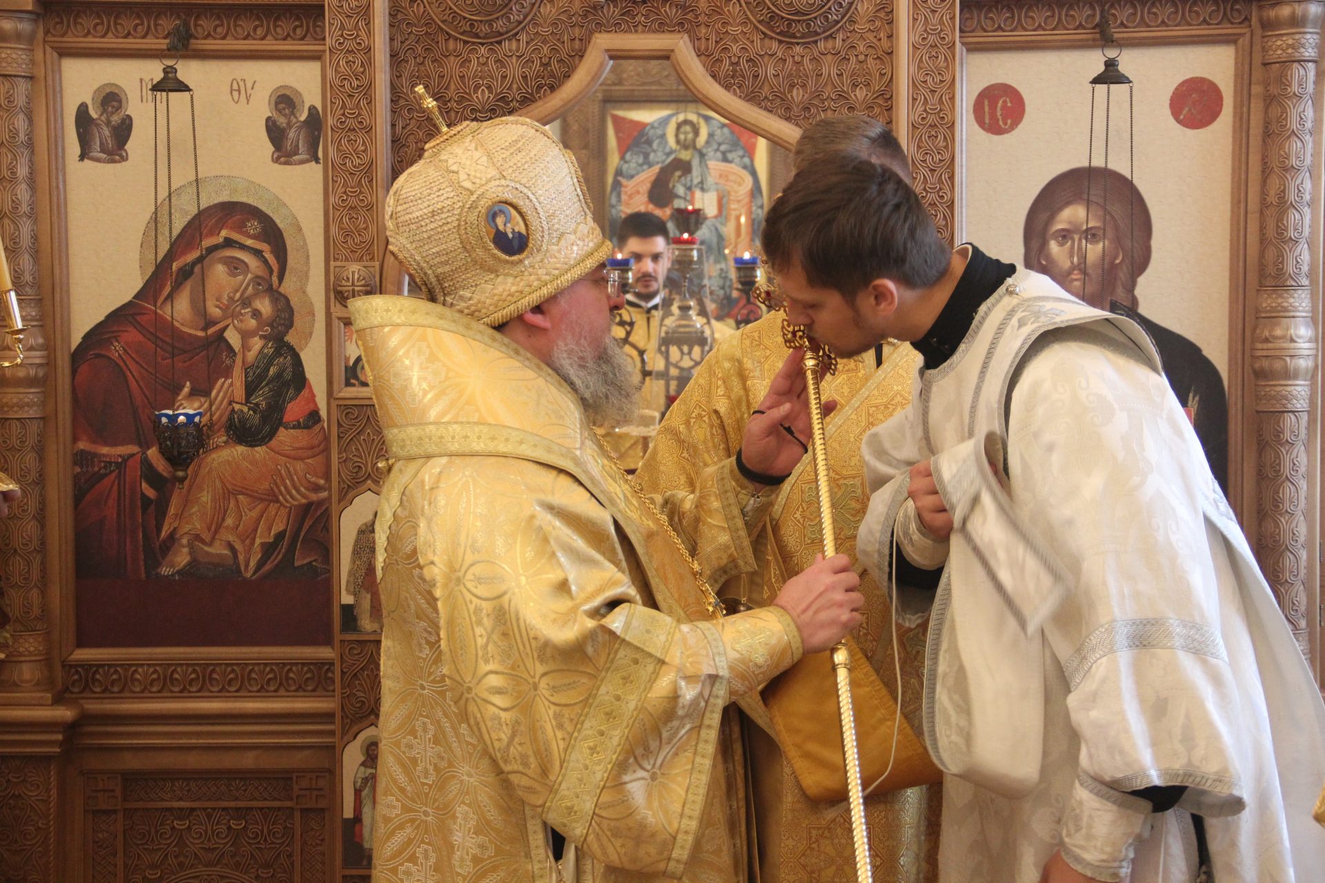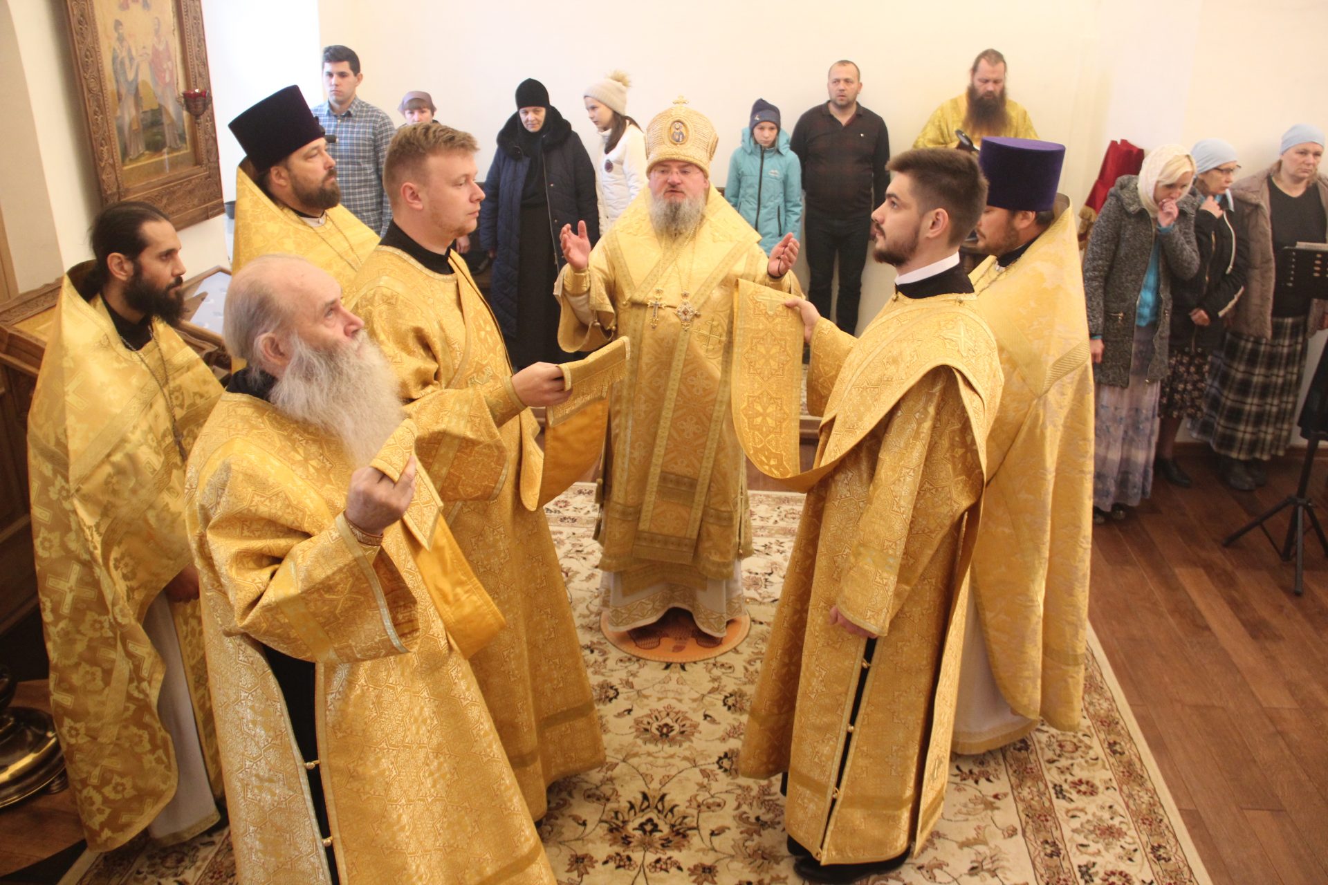 Преосвященному архипастырю сослужили: секретарь епархии, благочинный округа протоиерей Владимир Бахаев, протоиерей Антоний Хатунцев, иерей Максим Изопов – настоятель храма, диакон Евгений Ковригин, диакон Евгений Васильев и иеродиакон Виталий (Павленко).