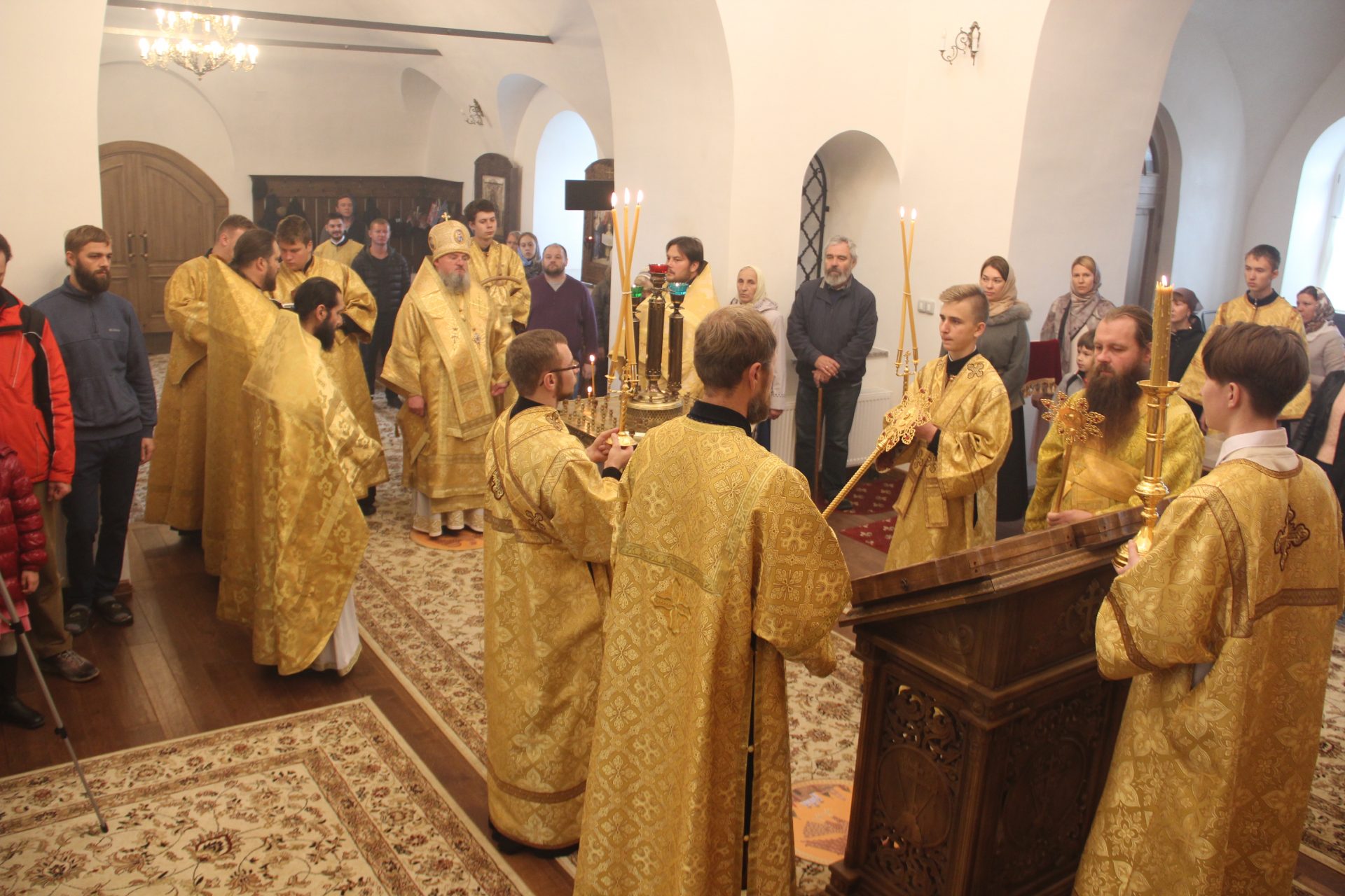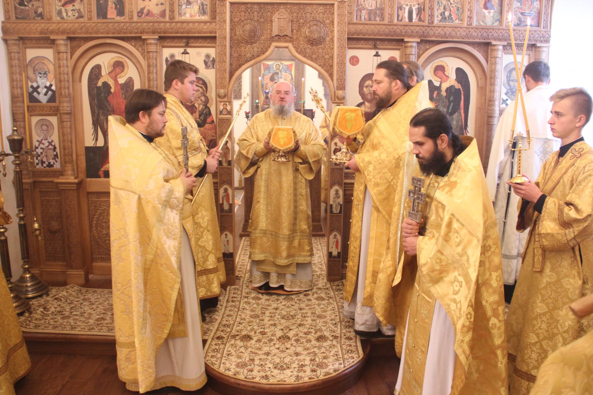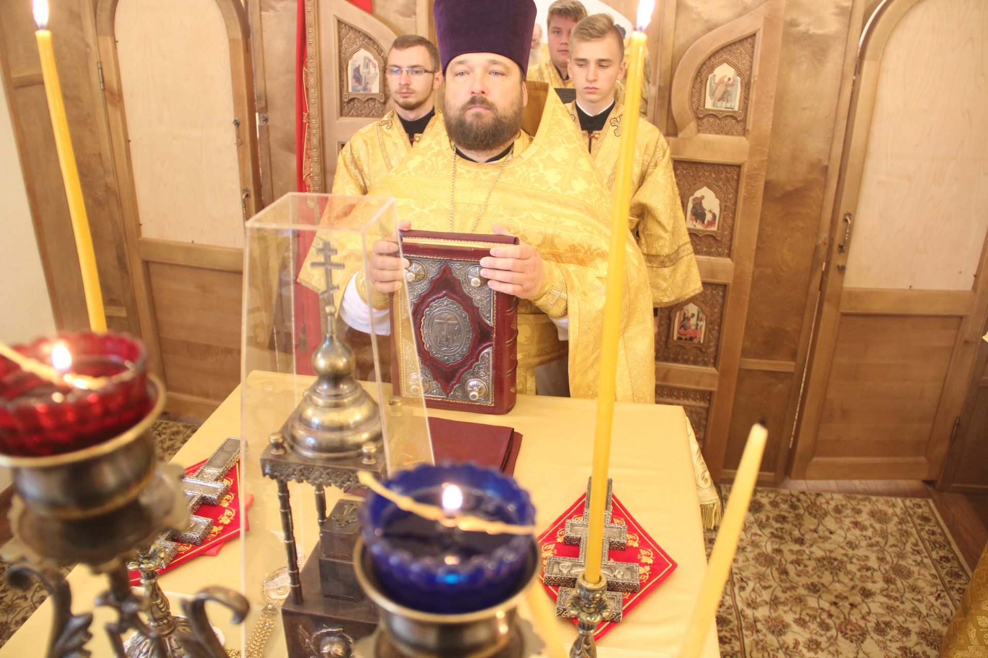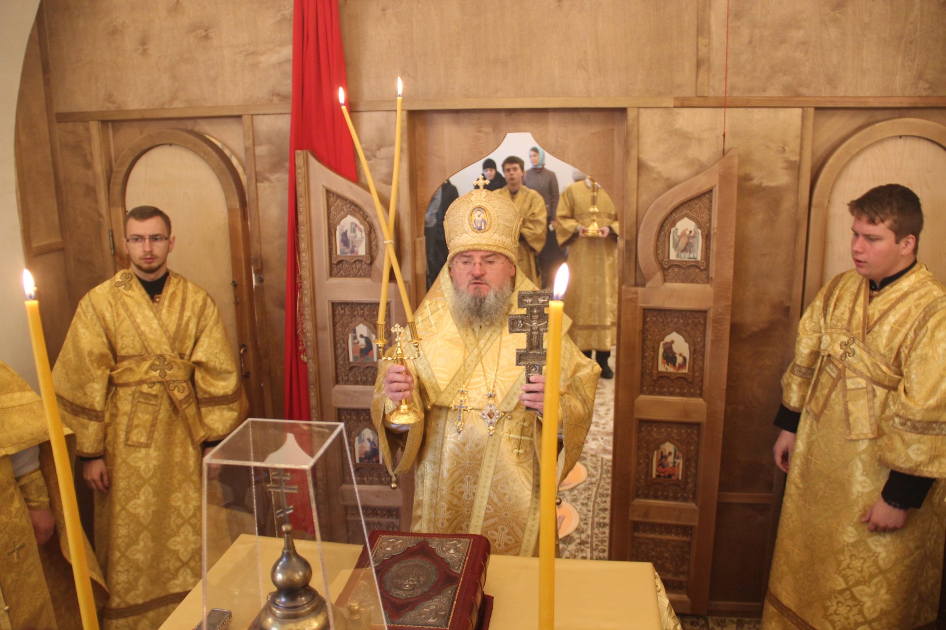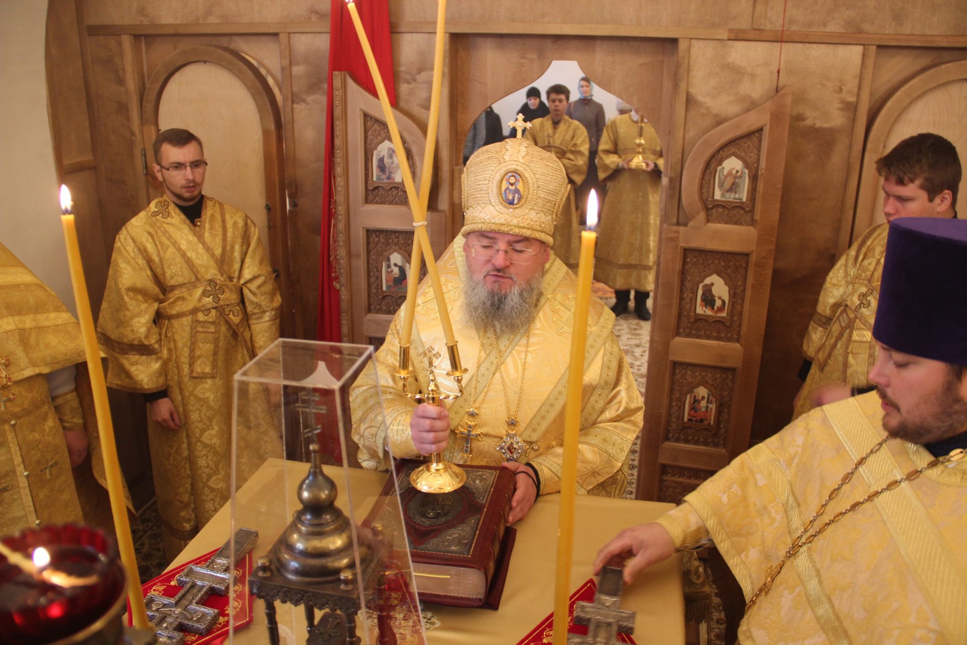 Преосвященному архипастырю сослужили: секретарь епархии, благочинный округа протоиерей Владимир Бахаев, протоиерей Антоний Хатунцев, иерей Максим Изопов – настоятель храма, диакон Евгений Ковригин, диакон Евгений Васильев и иеродиакон Виталий (Павленко).