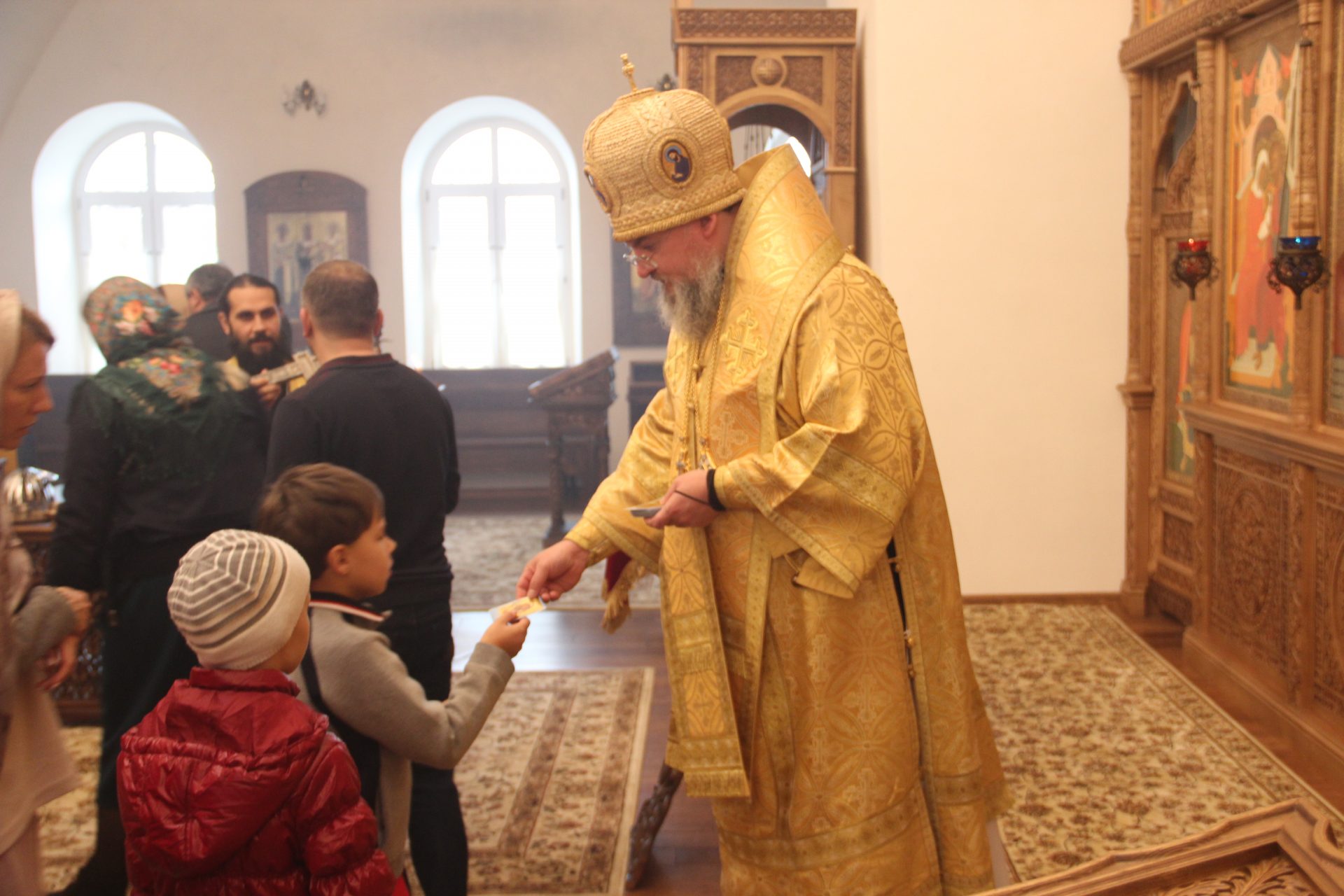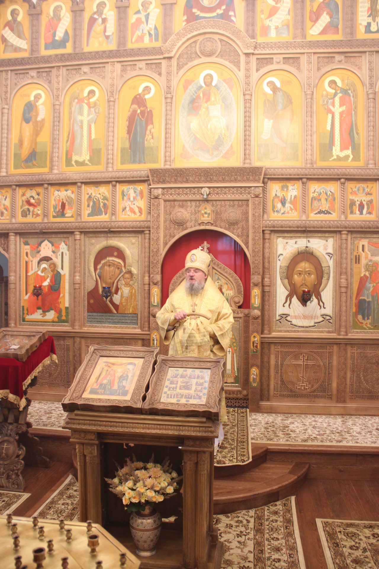 По отпусте литургии священнослужители совершили праздничный молебен Крестителю Господню Иоанну, а затем владыка обратился к богомольцам с архипастырским словом.