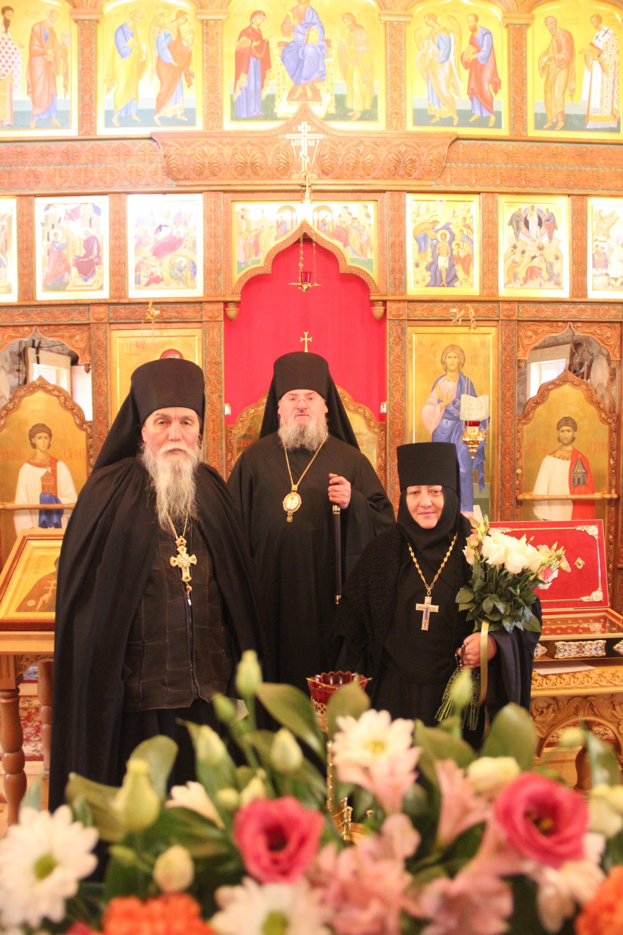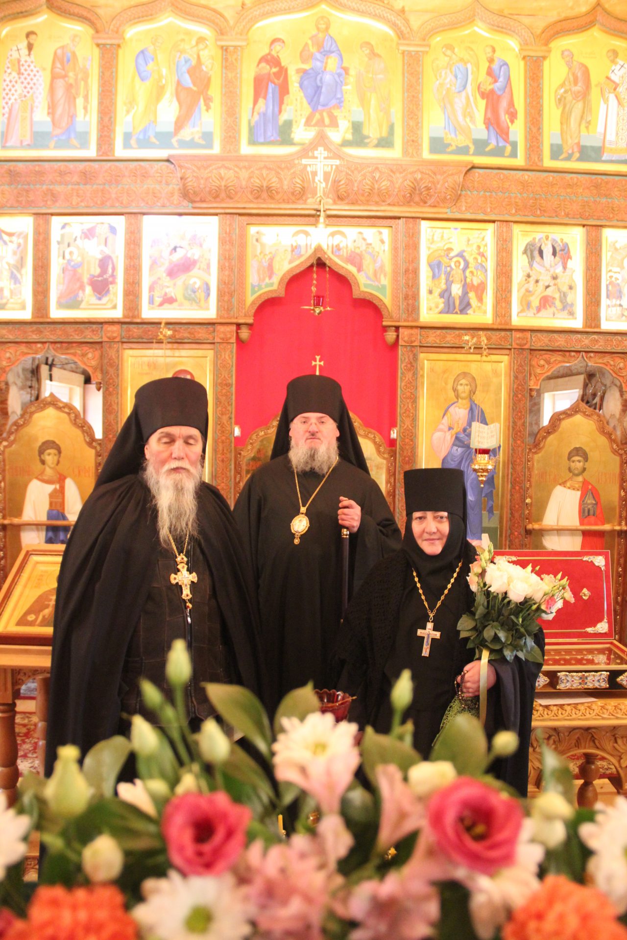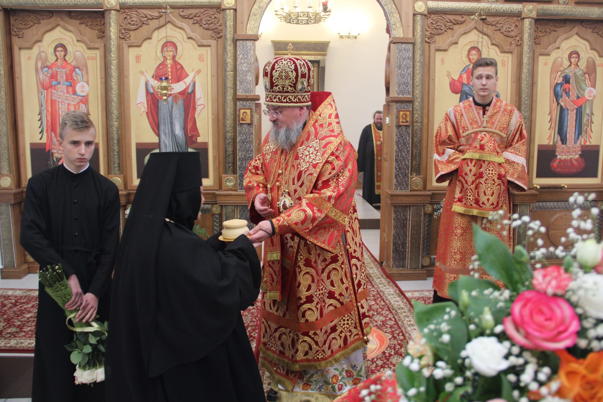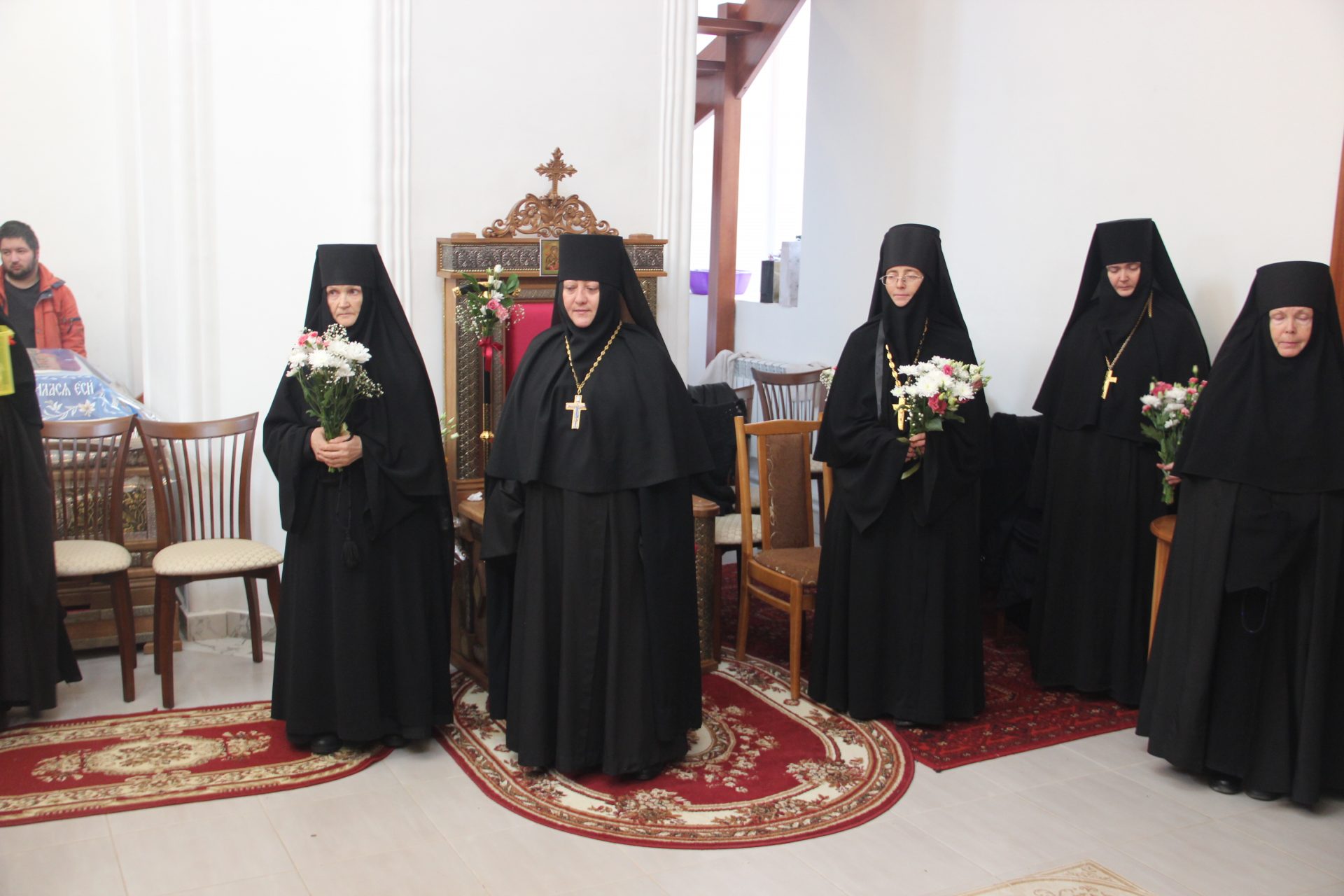Настоятельнице монастыря в ознаменование ее дня рождения, который приходится на этот день, епископ Никита преподнес святую просфору и букет цветов.