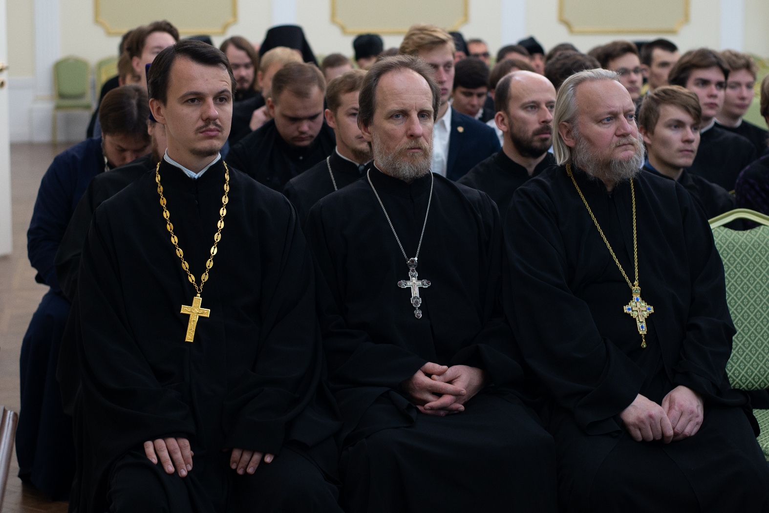 Перед собравшимися выступил старший преподаватель кафедры исторических и церковно-практических дисциплин протодиакон Сергий Комаров, который подготовил доклад на тему «Православная Эллада: святыни Греции». Стоит отметить, что выступление протодиакона Сергия вызвало множество положительных откликов. Особенно присутствующим понравился рассказ о «Парящих в воздухе» — так переводится с греческого Μετέωρα. Построенные в невероятных условиях, не имеющие подъездных дорог, монастырские постройки на отвесных скалах сохранились здесь с XIV века. Почти на 400 метров над долиной реки Пинеос и Фессалийской равниной возвышаются монастырские храмы, как символ воспарения монашеской жизни над мирскими страстями.