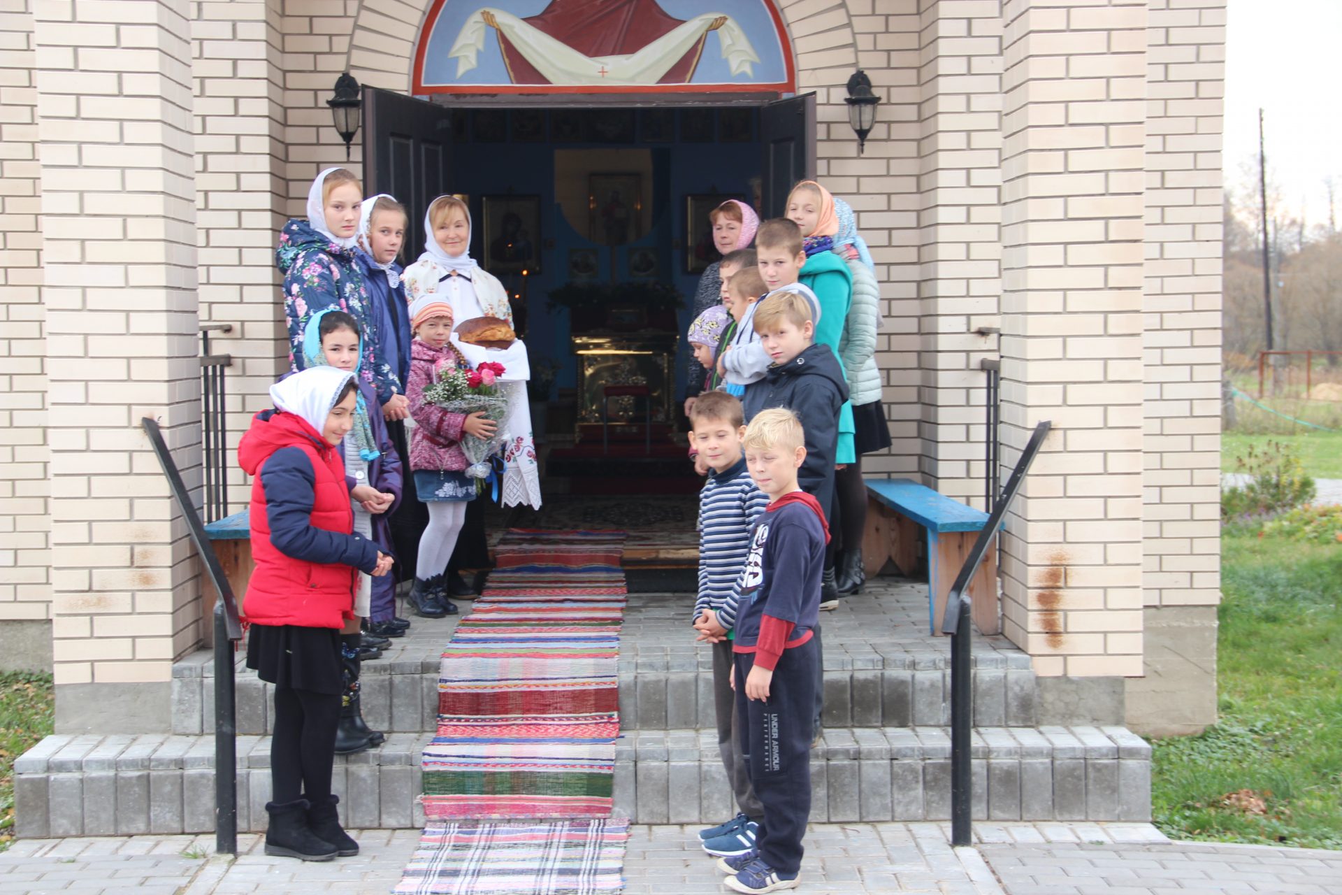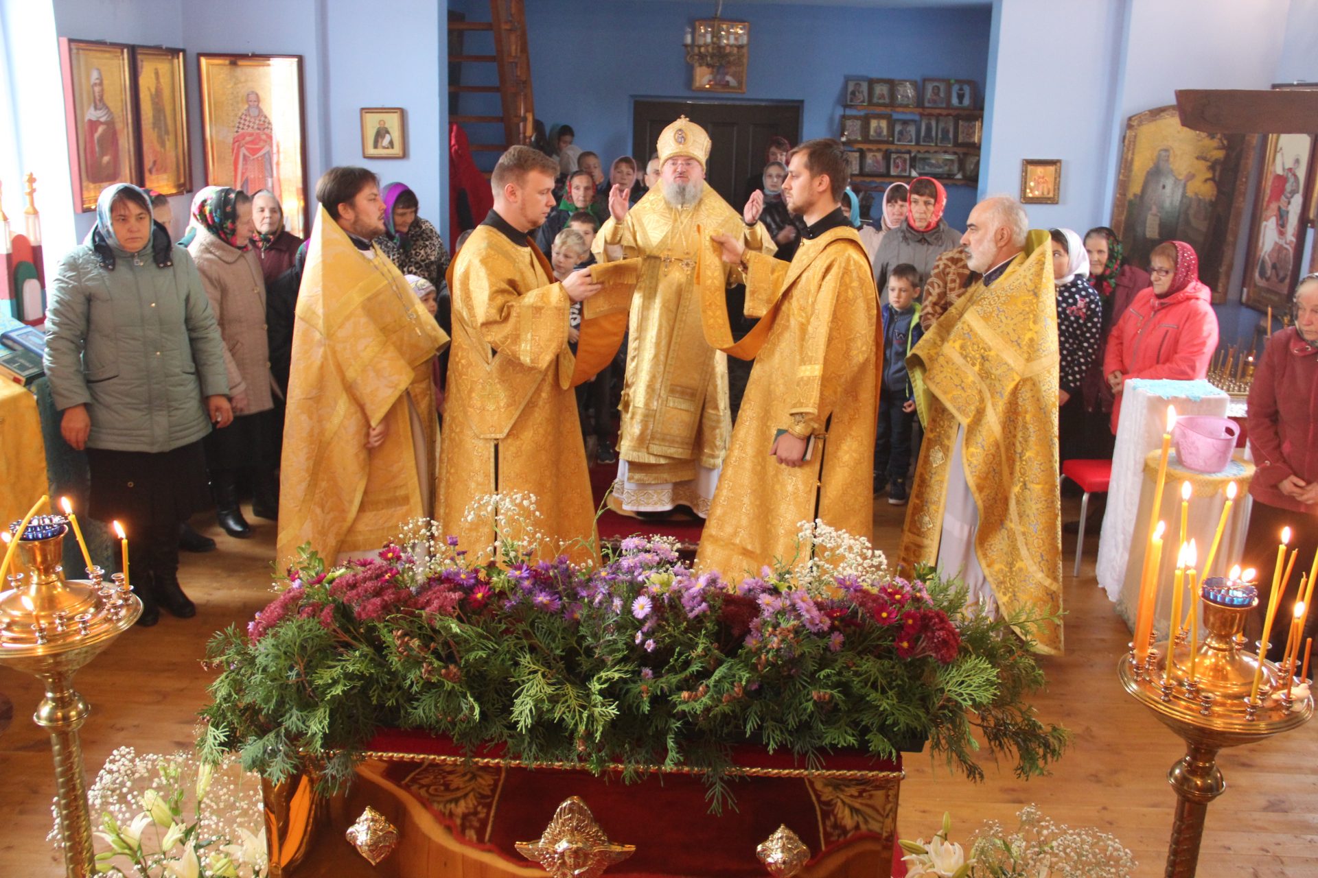 По отпусте литургии все священнослужители Хвастовичского благочиния совершили славление празднику Покрова Пресвятой Богородицы, а затем, вознеся молитву Царице Небесной владыка обратился к молящимся со словом назидания.