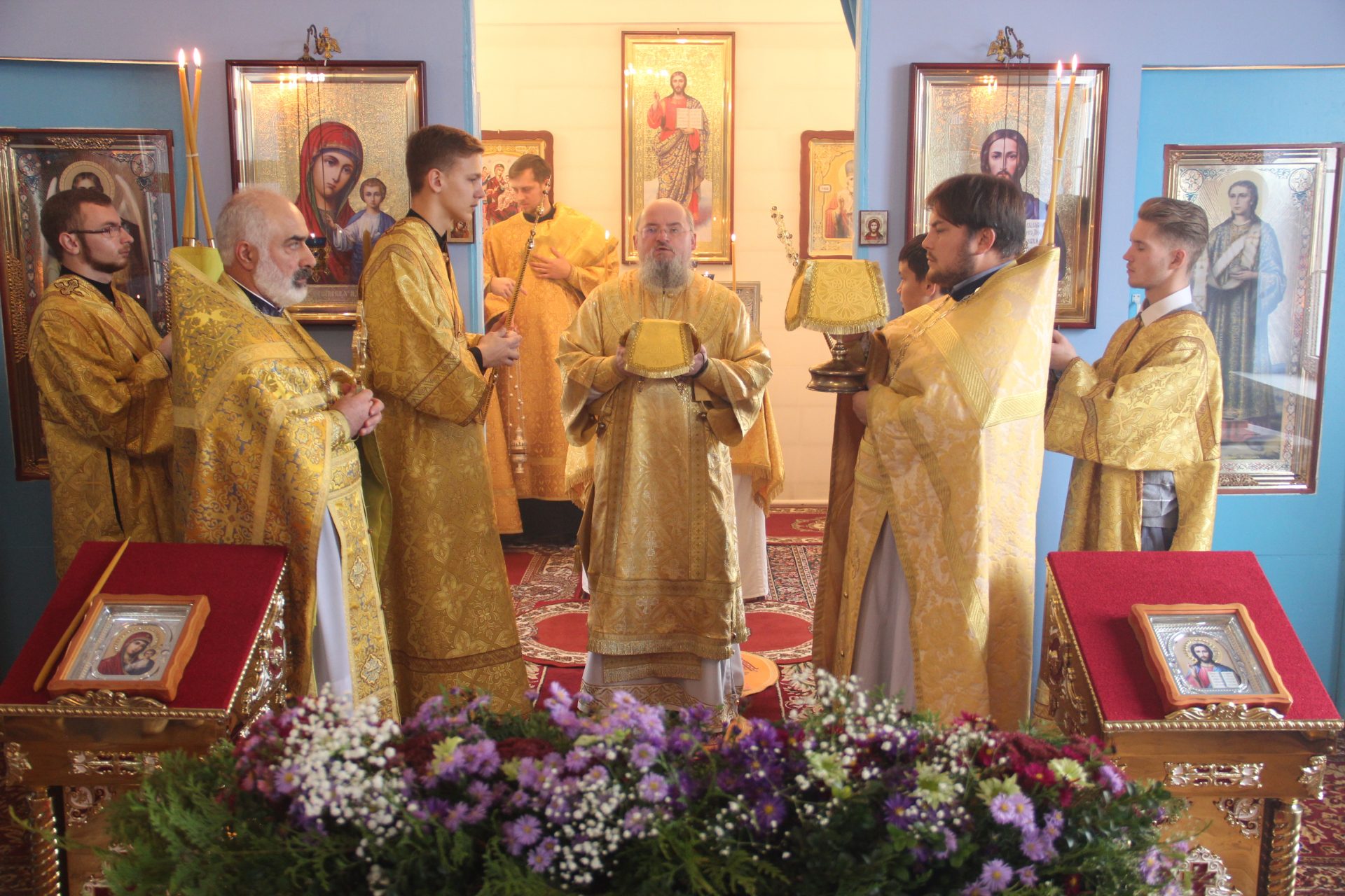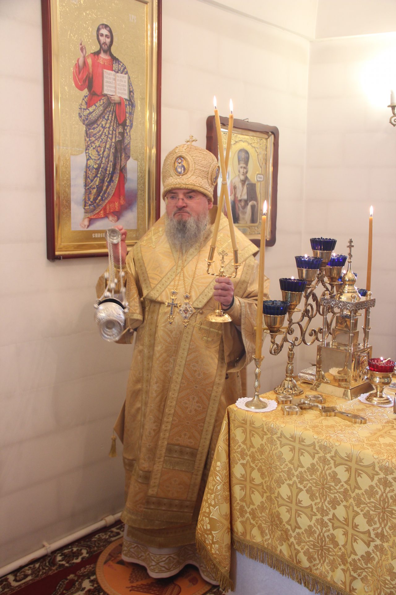 Архипастырю сослужили: протоиерей Антоний Хатунцев, иерей Геннадий Сафиев – настоятель храма, диакон Евгений Ковригин и диакон Константин Илющенко.