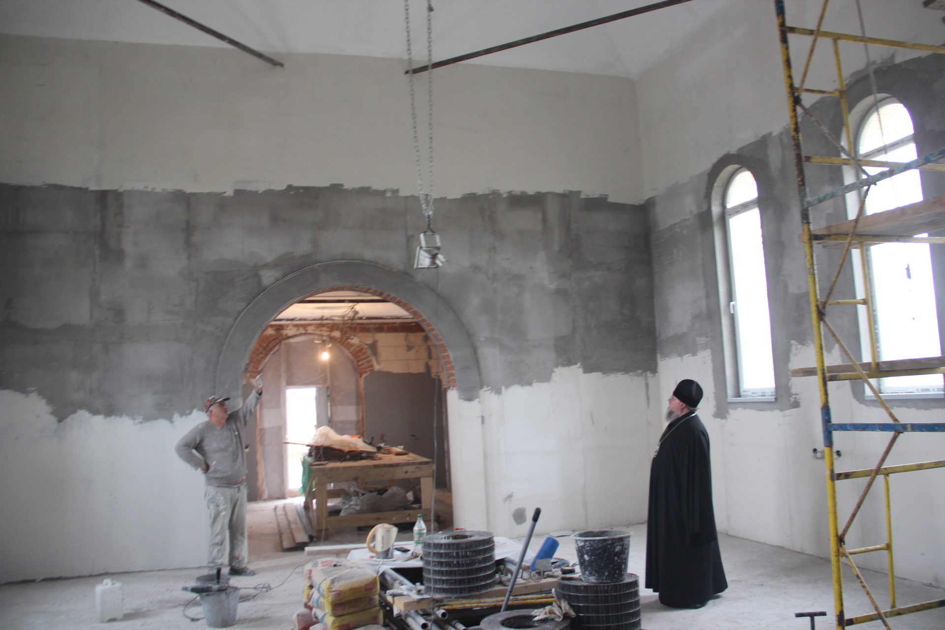 После богослужения архипастырь посетил строящийся храм в честь иконы Божией Матери «Неупиваемая Чаша» в селе Теребень, где познакомился с ходом внутренних отделочных работ.