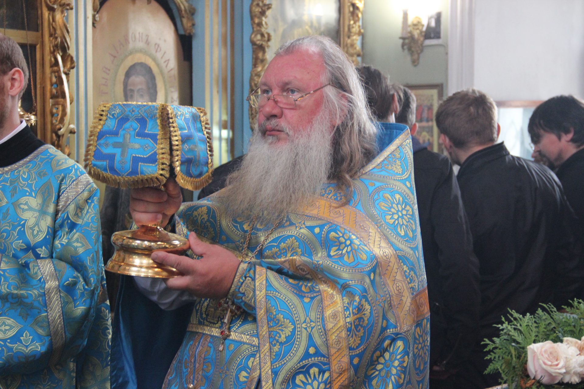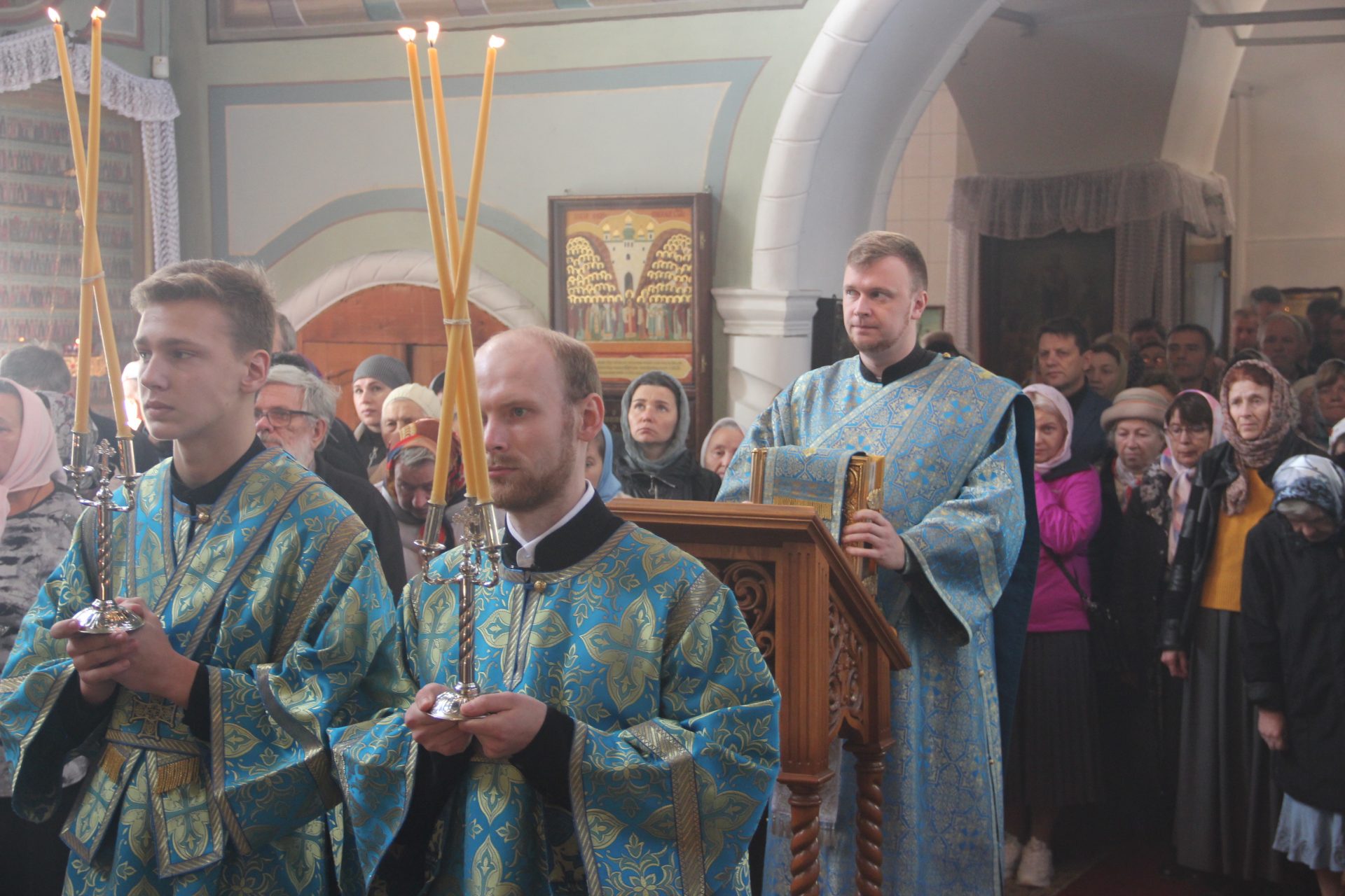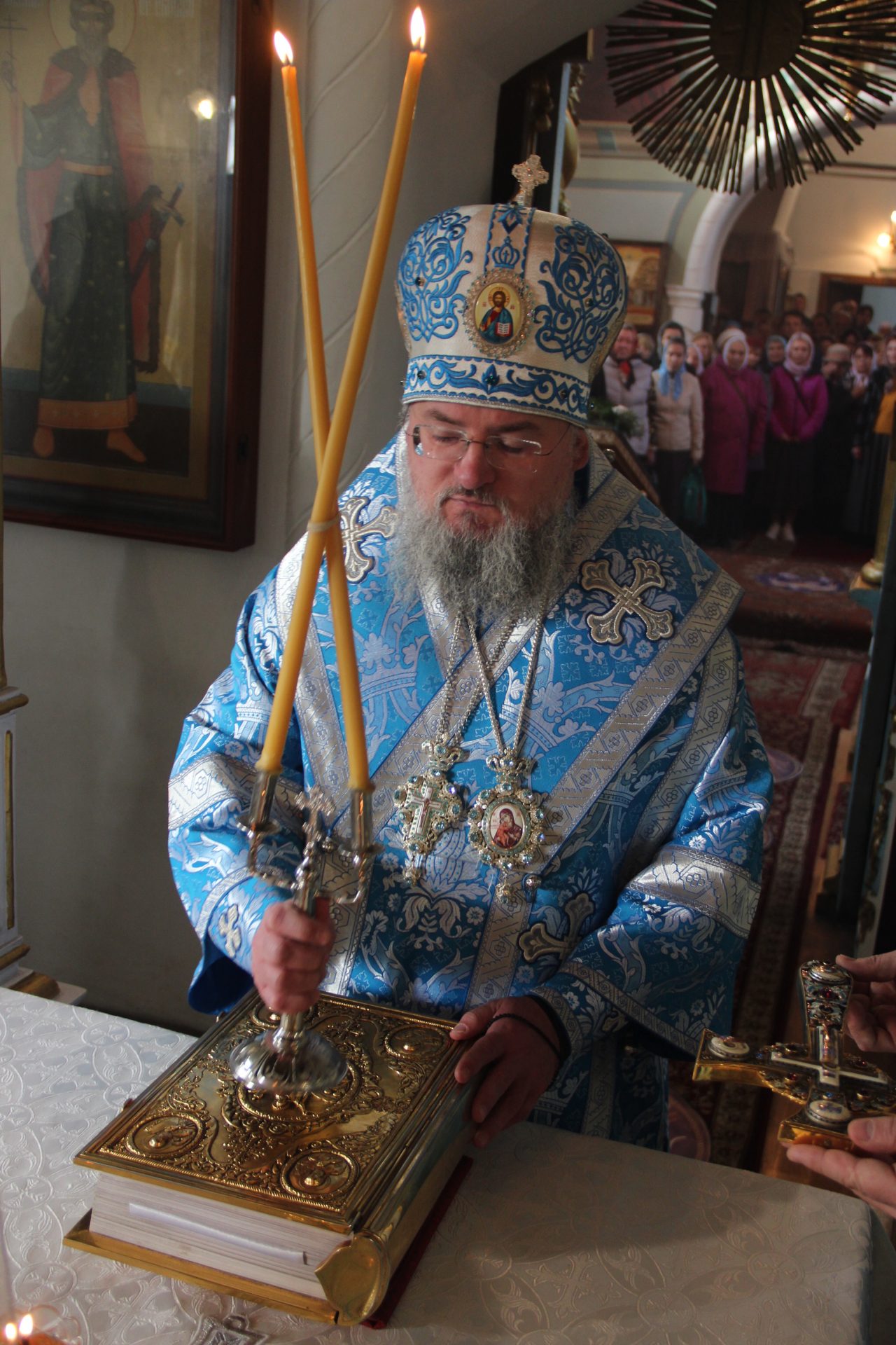 В храме молились многочисленные паломники, прибывшие почтить память блаженнопочившего старца Амвросия из разных уголков нашей страны.