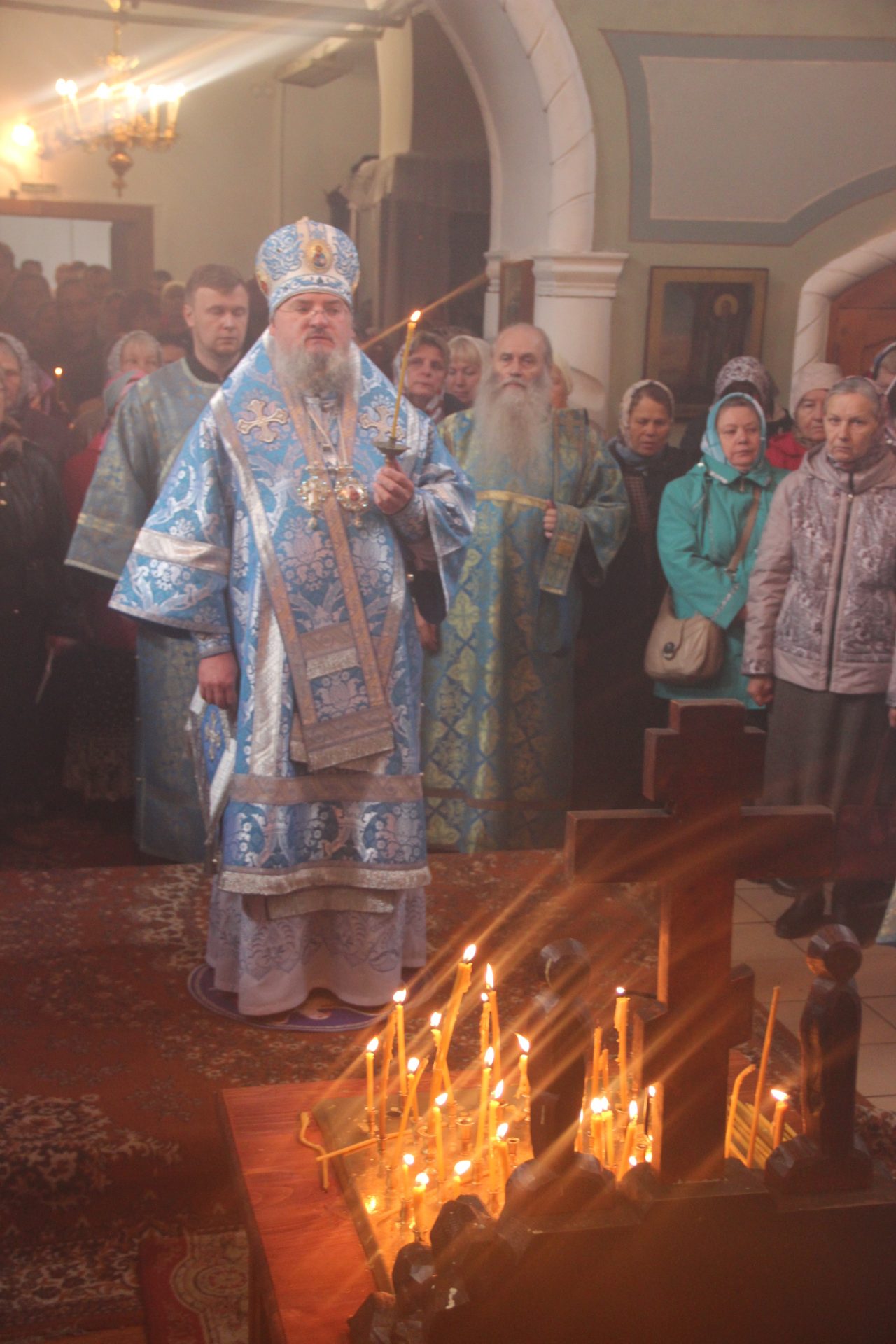 Скажу правду, когда я начал служить, псаломщика постоянного не было, а были временно приглашенные: как И.И.Виноградов, К.А.Циханович, Илларион Владимирович Жуков, Анна Чернова служила 7 лет, Мария Дашина служит по сие время 18-й год. В первое время моей службы в Храме было запылено, холодно и не убрано,но когда поступила мать Мариамна и другие, то навели порядок и чистоту. Вся церковная утварь стала блестеть и добродетелями пополнилась ризница, появились и ковры и все необходимое для Богослужения. Пение и чтение исполнялось псаломщиком и любителями церковного благолепия. Спаси Господи всех за усердие к Святому Храму Божию. За 33 года моего служения наш храм три раза был покрашен внутри и снаружи и, к сожалению, два раза был обкрадываем. Первый раз украли мою митру и два ковшичка и лжицу, а второй раз украли два креста напрестольных и мой наперстный крест. В 1970 году, по допущению Божию и меня сильно напугали воры. В 2 часа ночи Троицкой родительской субботы, воры выставили окно и один залез в дом, прошел в сени и отворил все двери, и я в это время, Бог дал, проснулся и ничего не подозревая, встал и пошел, а жулик — мне навстречу и кричит “руки вверх” и светит мне в лицо фонарем и говорит: “Давай денег 1000 рублей”. Я очень испугался, но ответил, что денег нет — они в сберкассе. В это время проснулась моя прислуга и вышла из своей комнаты. Жулик, увидев ее, говорит: “А и ты здесь, сейчас буду стрелять”. Она же бросилась на печку, а он за ней кинулся, но не поймал. Я же, опомнившись, убежал в другую половину дома, где ночевали женщины, которые пришли помянуть в родительскую усопших. Воры, услышав крик всех нас, убежали, ничего не взявши, но мы очень испугались.