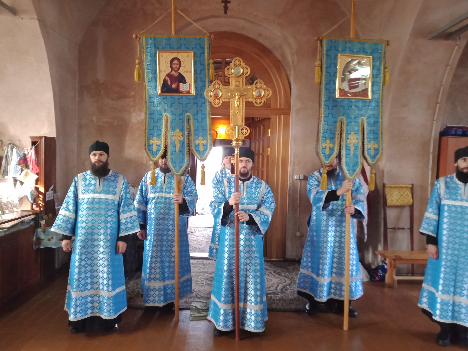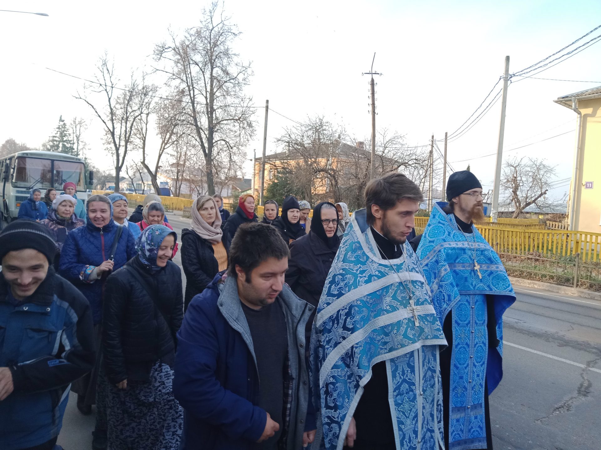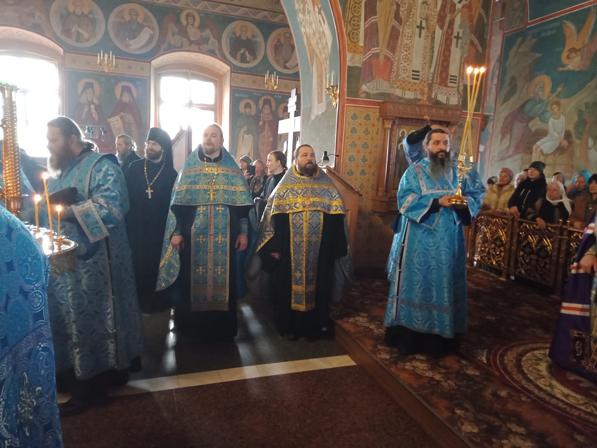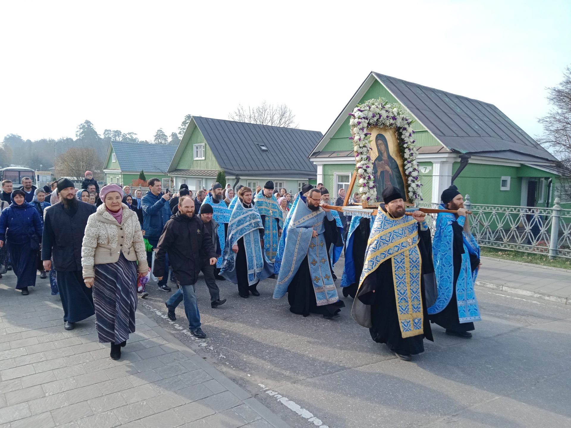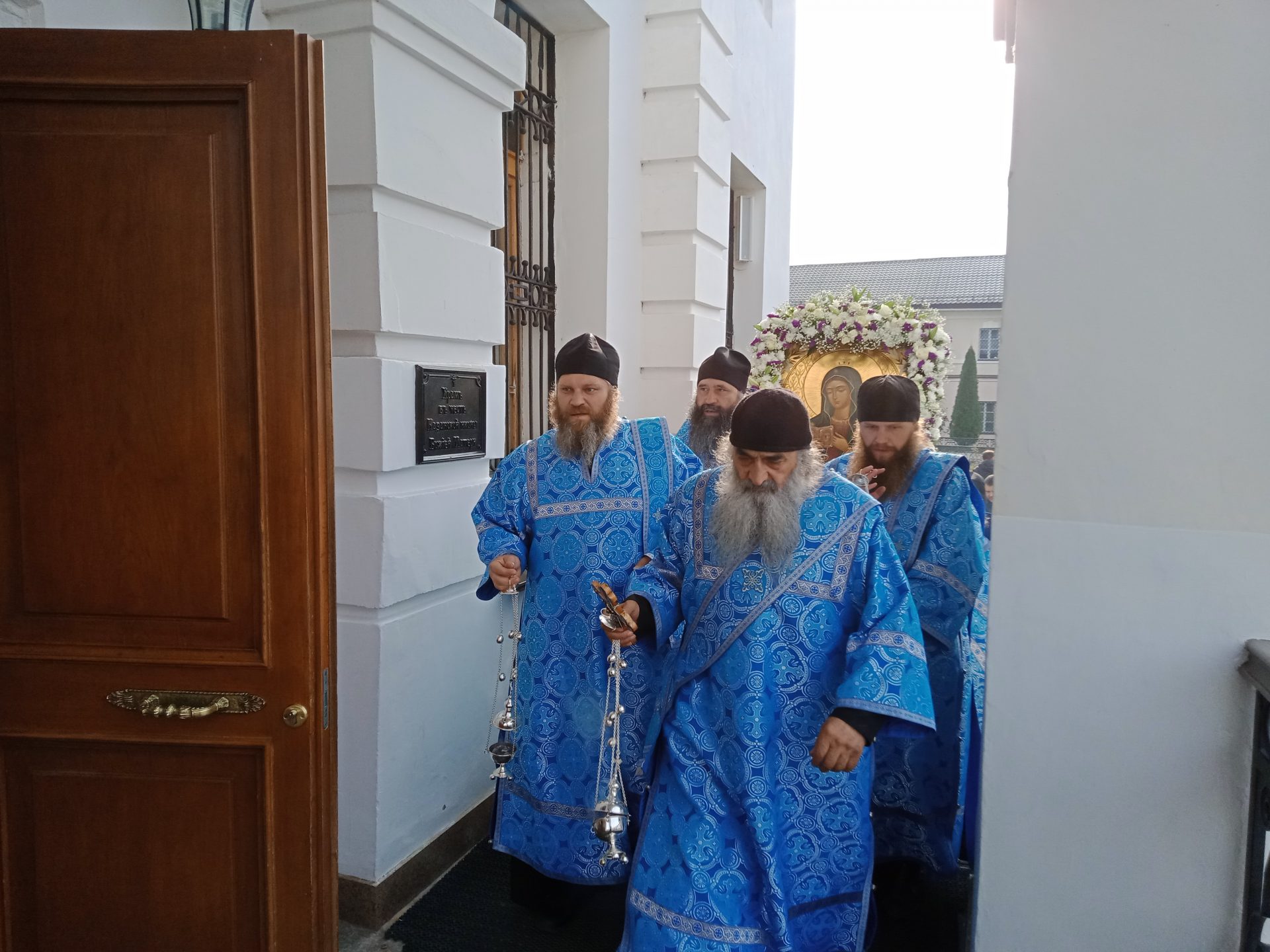 Крестный ход начался молебном в Успенском соборе, который совершили клирики собора и благочиния совместно с духовенством монастыря. Затем священники с иконой в предшествии хоругвей двинулись в монастырь.