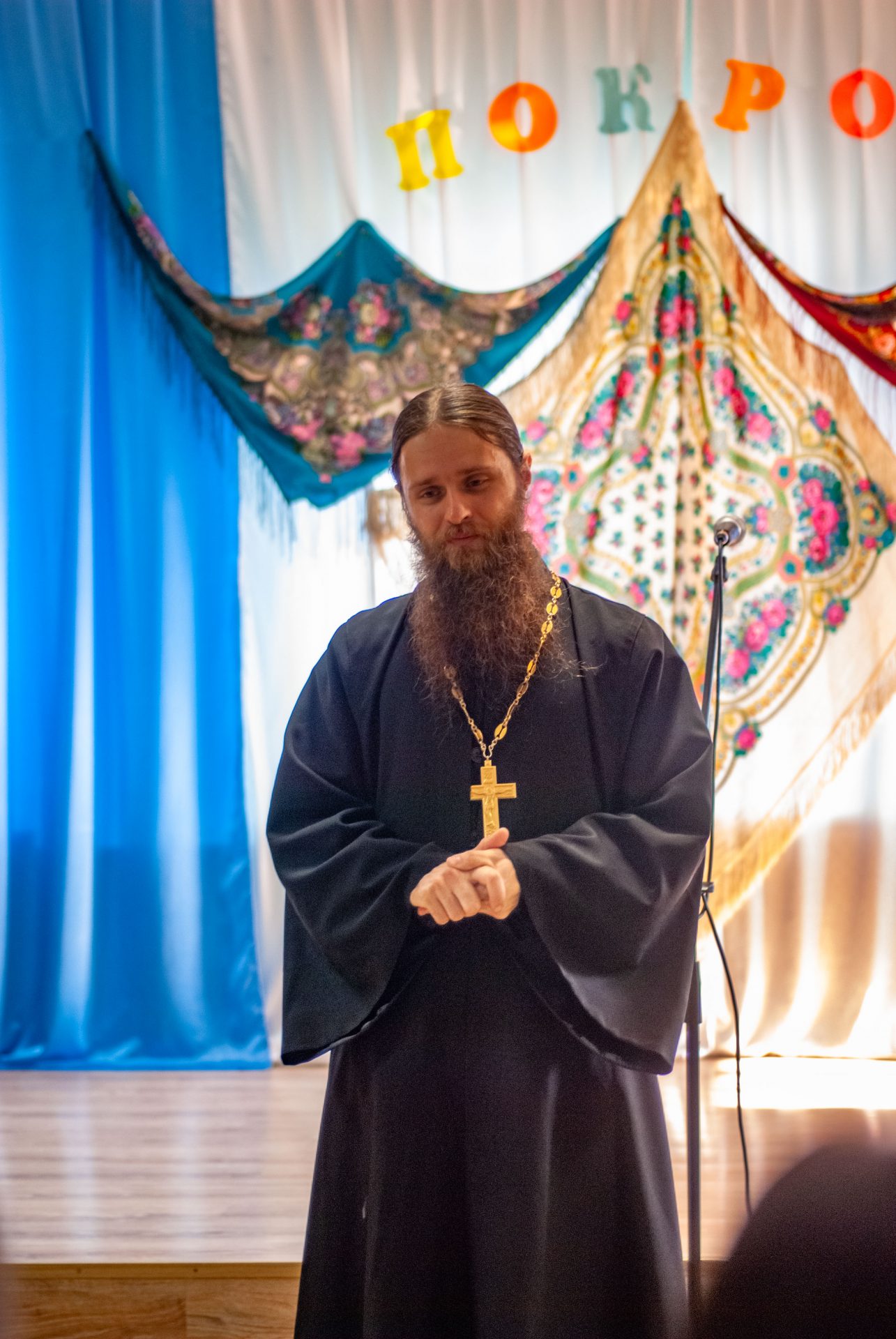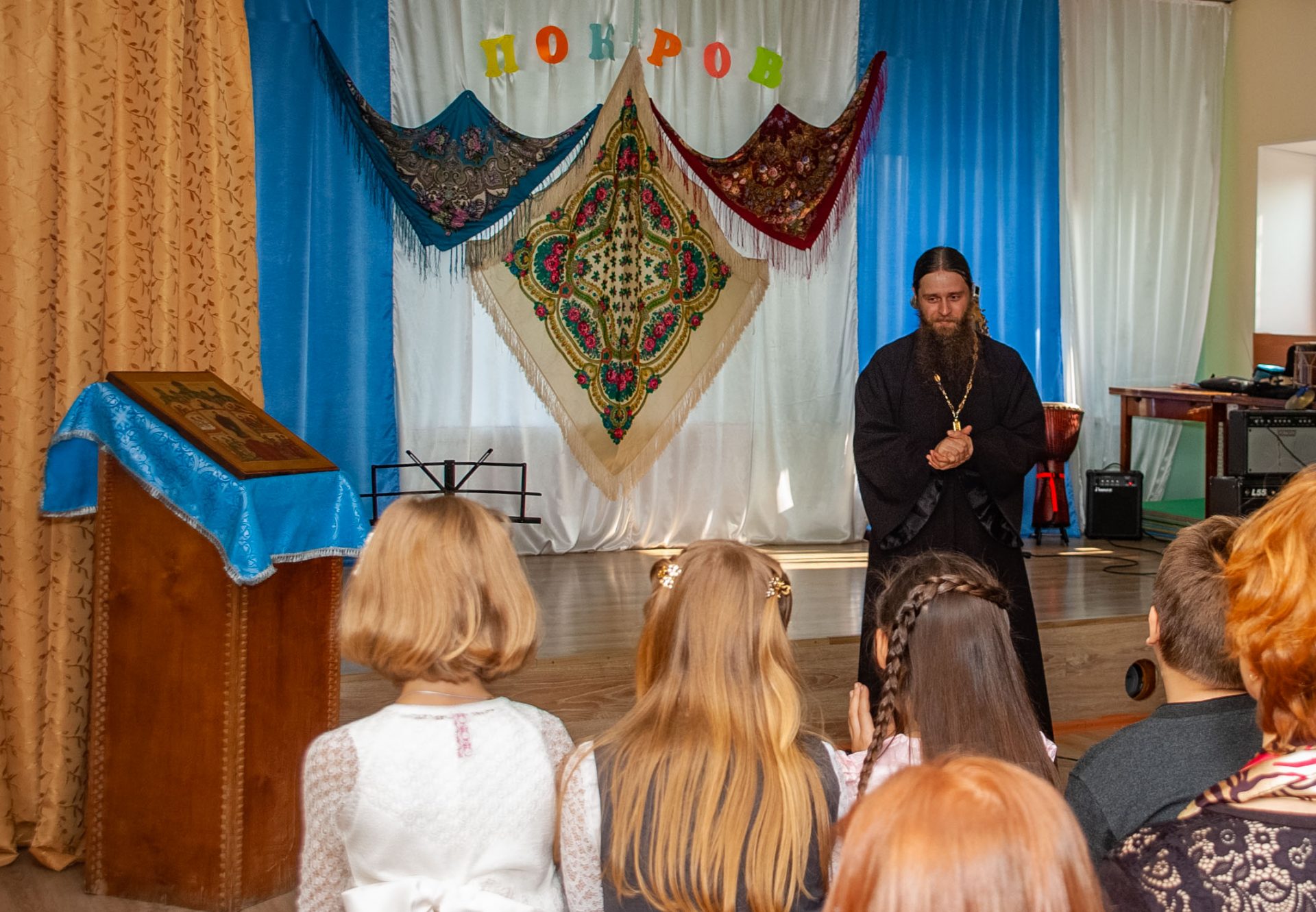 С приветственным слово ко всем собравшимся обратился благочинный 7-го округа Козельской епархии иерей Алексей Ефименков. На Покровском празднике присутствовали гости — воспитанники воскресной школы храма святых апостолов Петра и Павла села Овсорок. Ребята выступили с музыкальным номером.