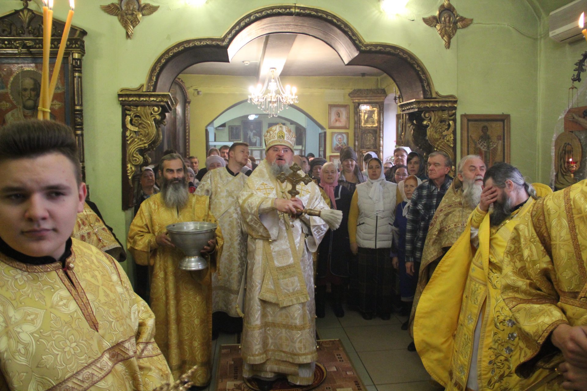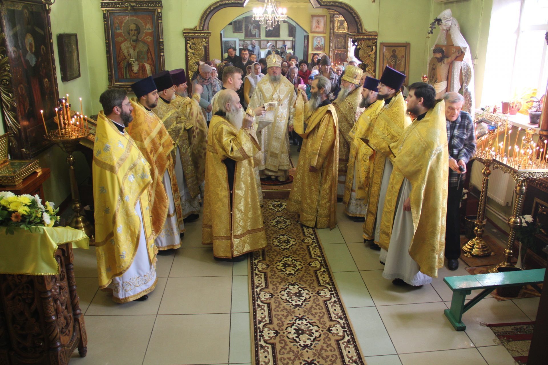 Архипастырю сослужили: благочинный округа протоиерей Василий Биляк, настоятель Казанского собора протоиерей Алексий Жиганов, настоятель Лазаревского храма протоиерей Михаил Карпенко, клирики храмов Людиновского благочиния.