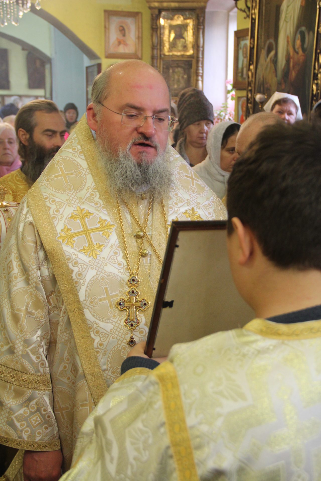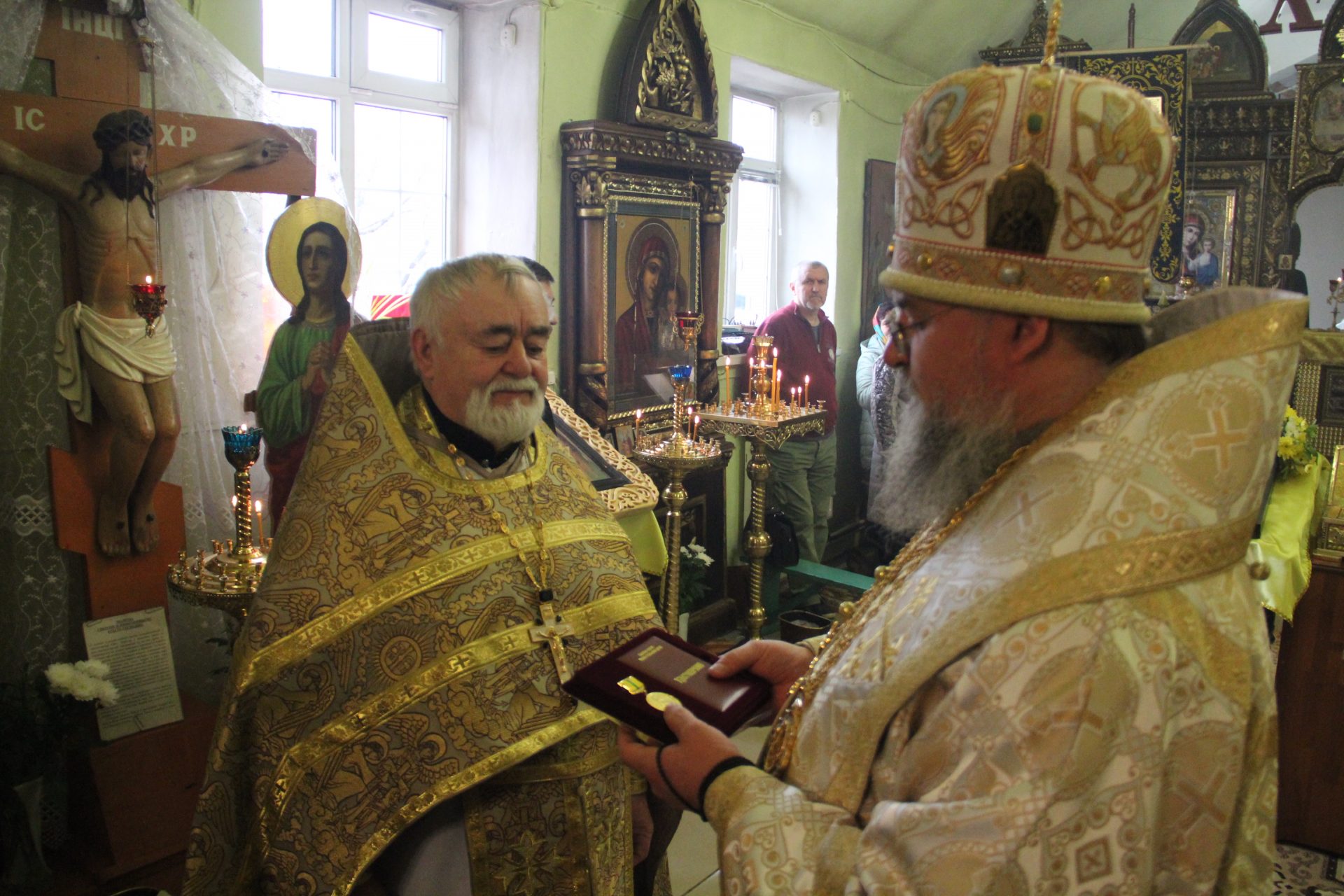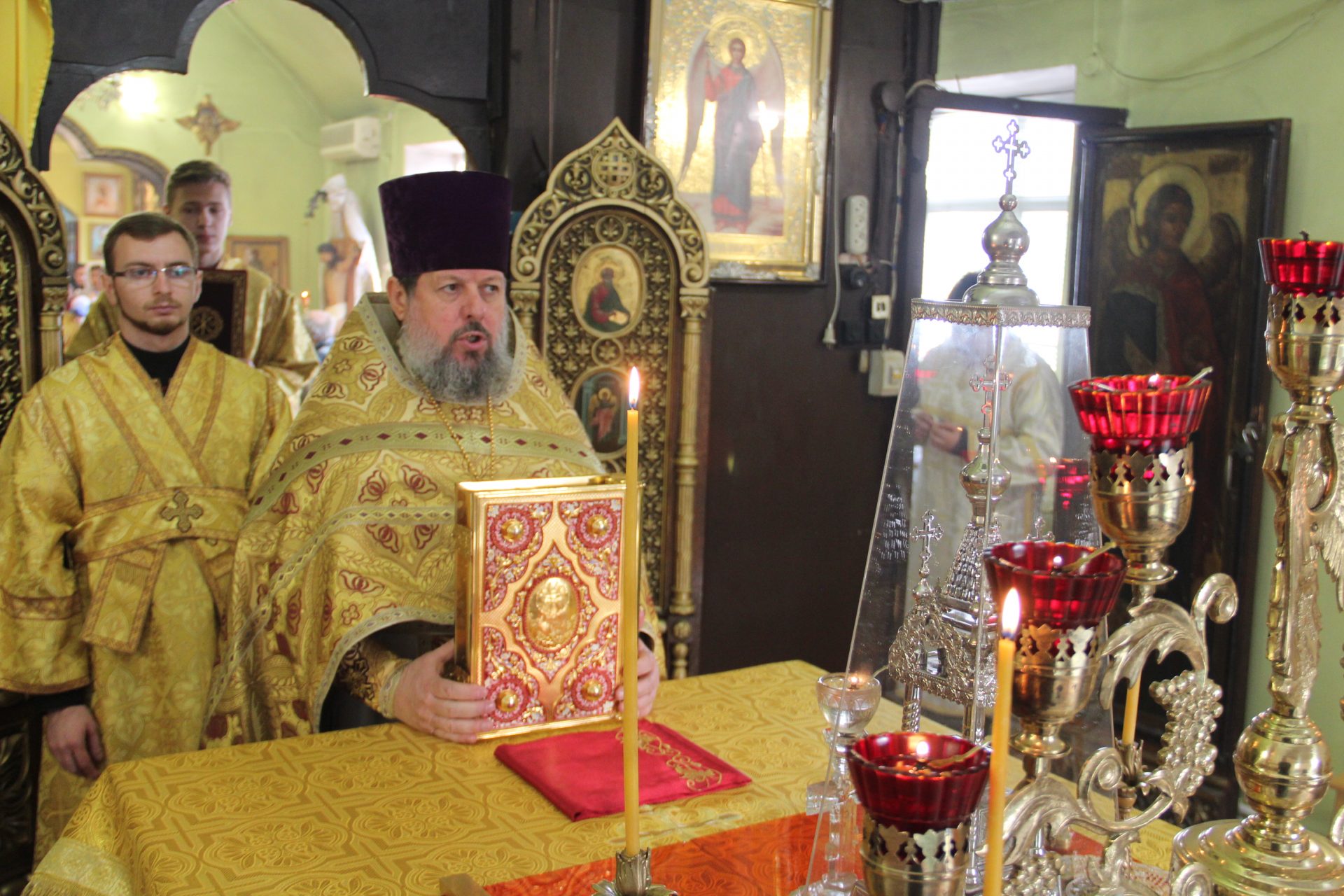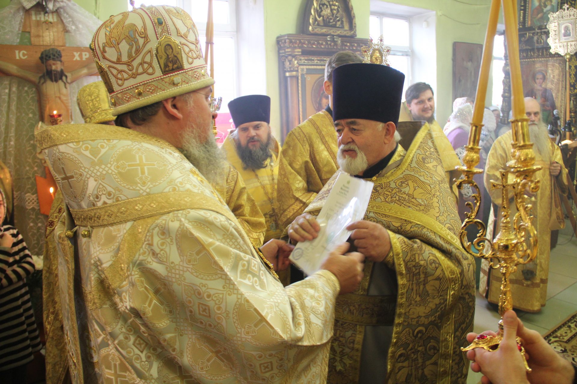 На Малом Входе, по благословению Святейшего Патриарха КИРИЛЛА, клирик Сергиевского храма города Людиново протоиерей Дмитрий Губаль был удостоен очередной богослужебно-иерархической награды: права служения Божественной литургии до Херувимской песни.