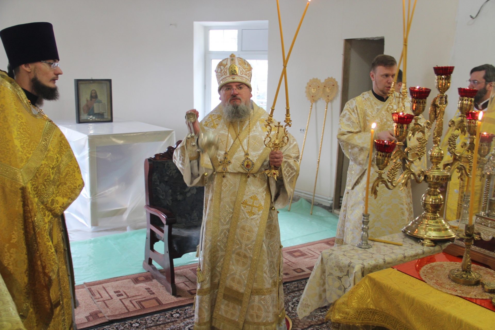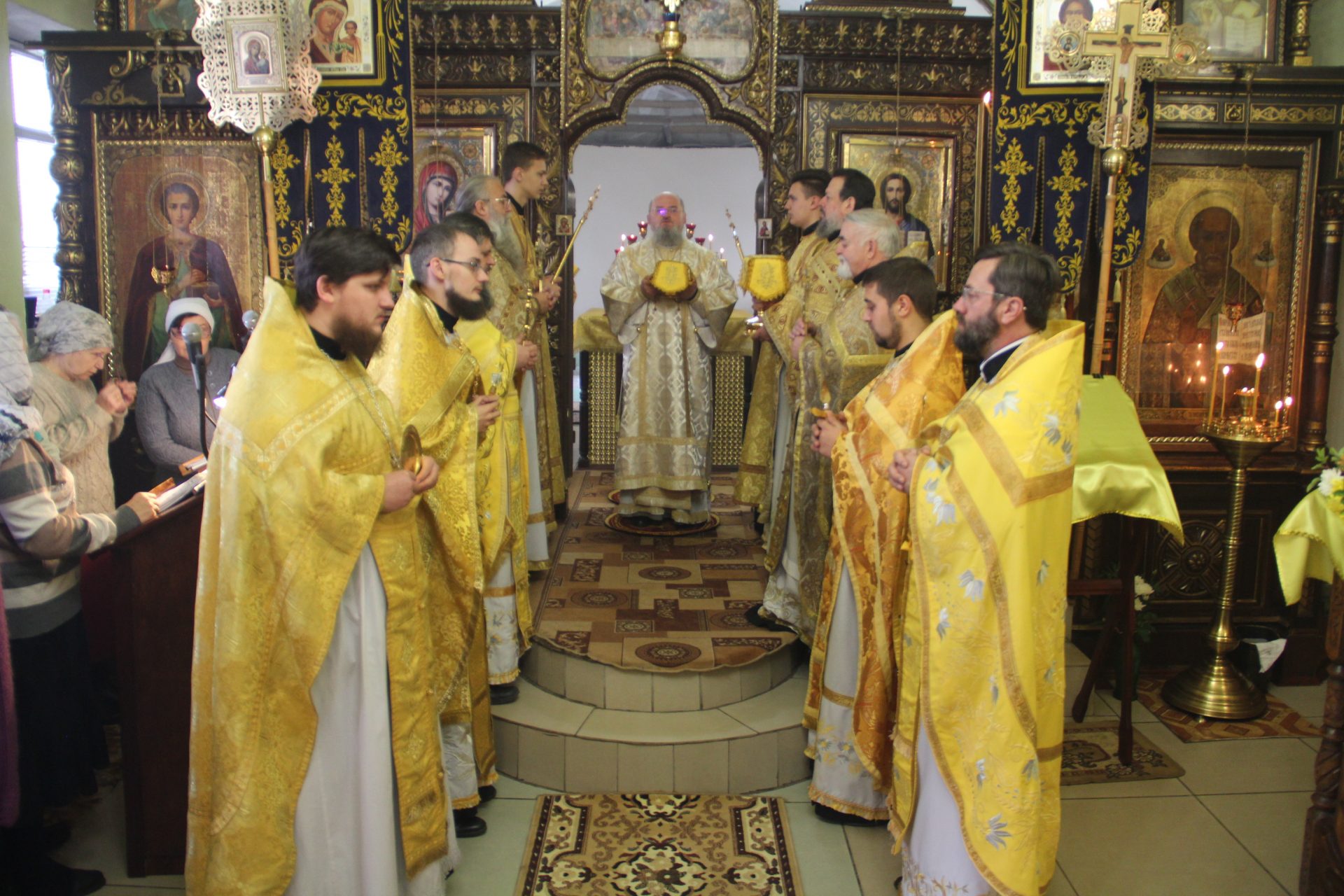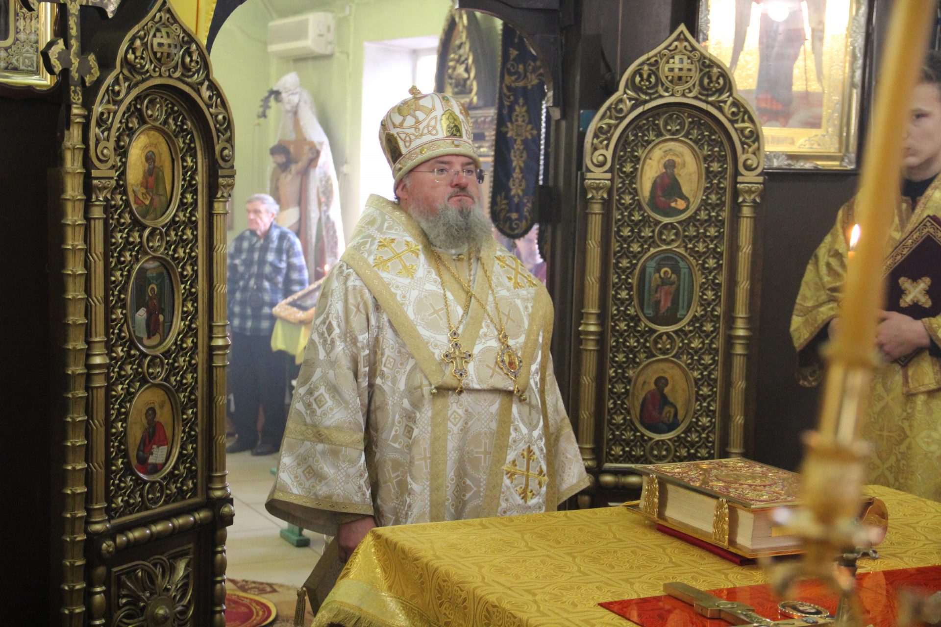 По отпусте литургии священнослужители совершили праздничный молебен пред образом святого праведного Лазаря, а затем, вознеся молитву святому, владыка обратился к богомольцам с проповедью.