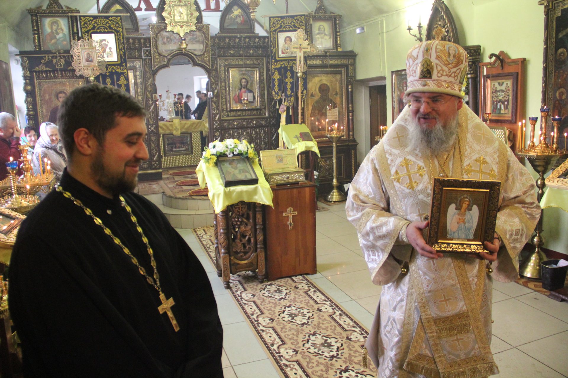 Владыка также поздравил настоятеля храма святых Апостолов Петра и Павла в селе Овсорок Жиздринского района с тридцатилетием и преподнес ему в дар икону Ангела Хранителя.
