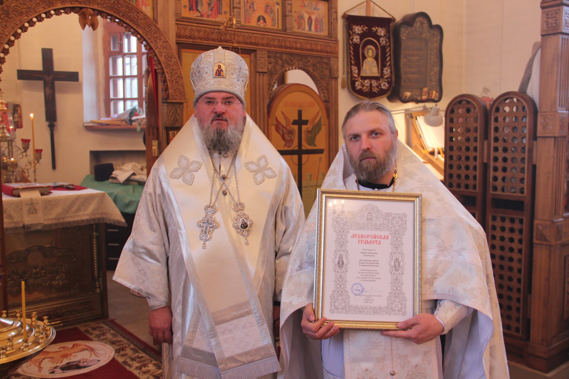 Во внимание к усердным трудам во славу Святой Церкви и в связи с сорокапятилетием со дня рождения настоятель храма, Руководитель епархиального Отдела по работе с военнослужащими иерей Николай Кузнецов был удостоен благодарственной Архиерейской грамоты.