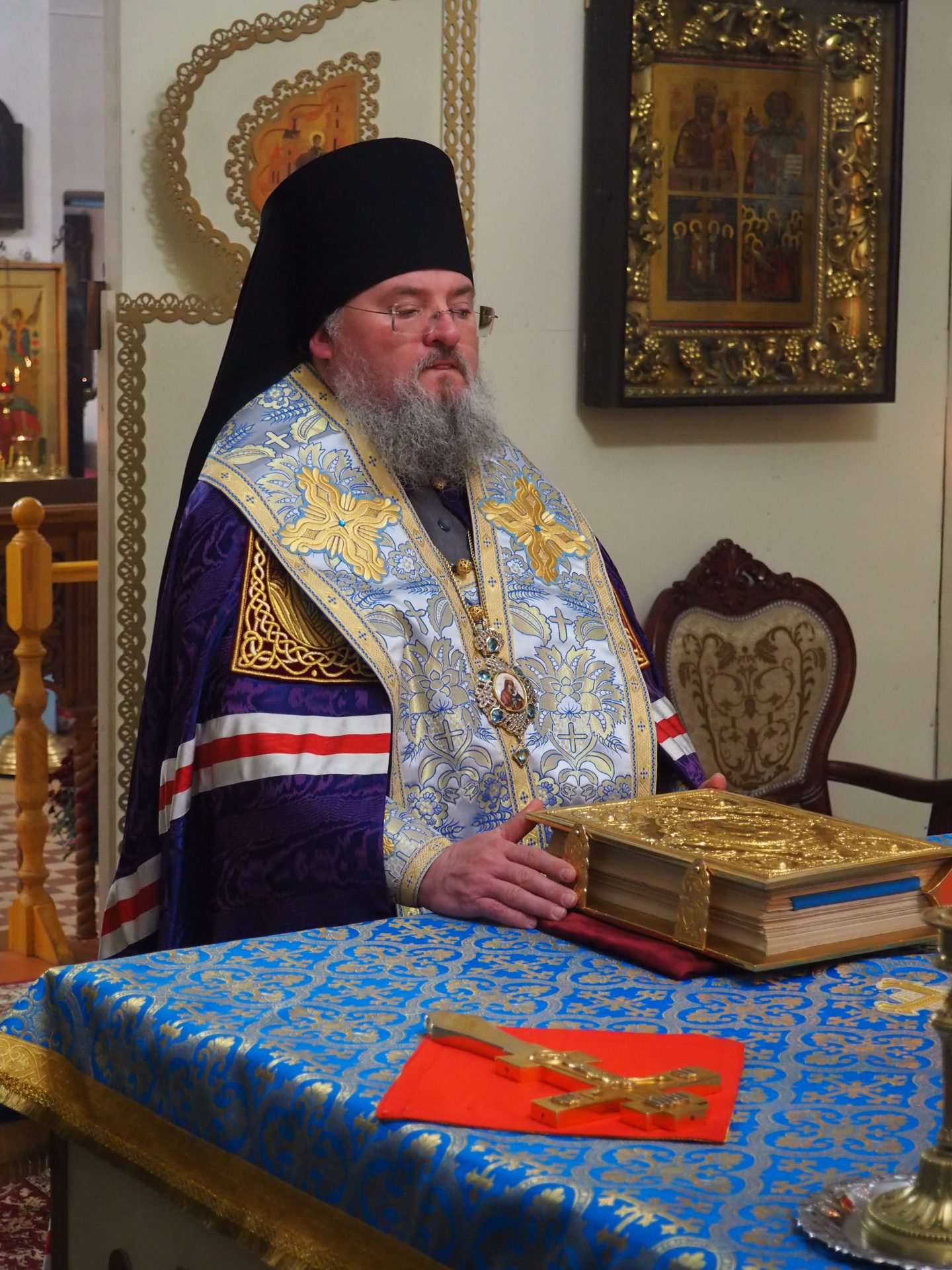 3 ноября, накануне празднования в честь Казанской иконы Пресвятой Богородицы, епископ Козельский и Людиновский Никита совершил всенощное бдение в Казанском кафедральном соборе города Людиново.