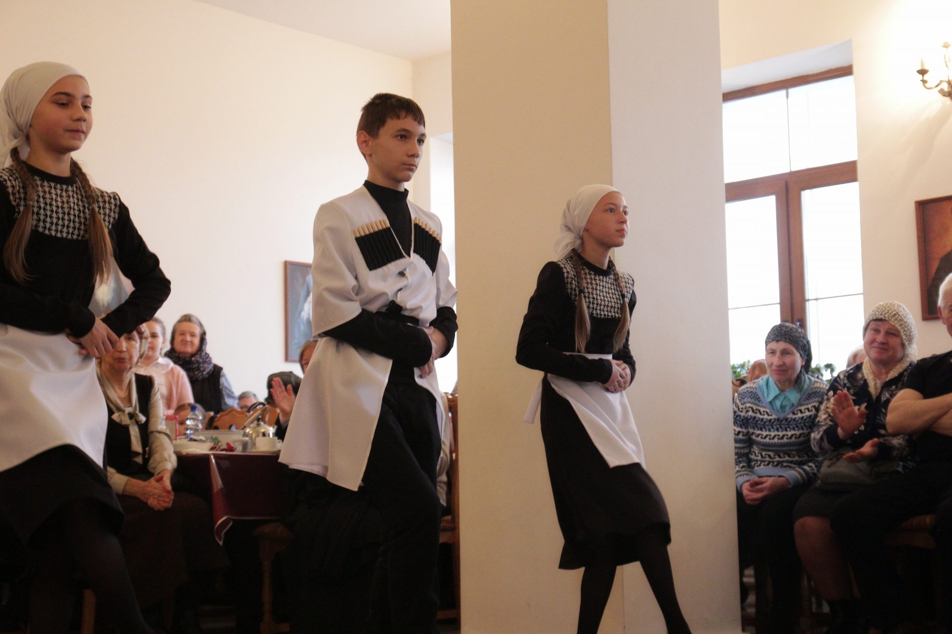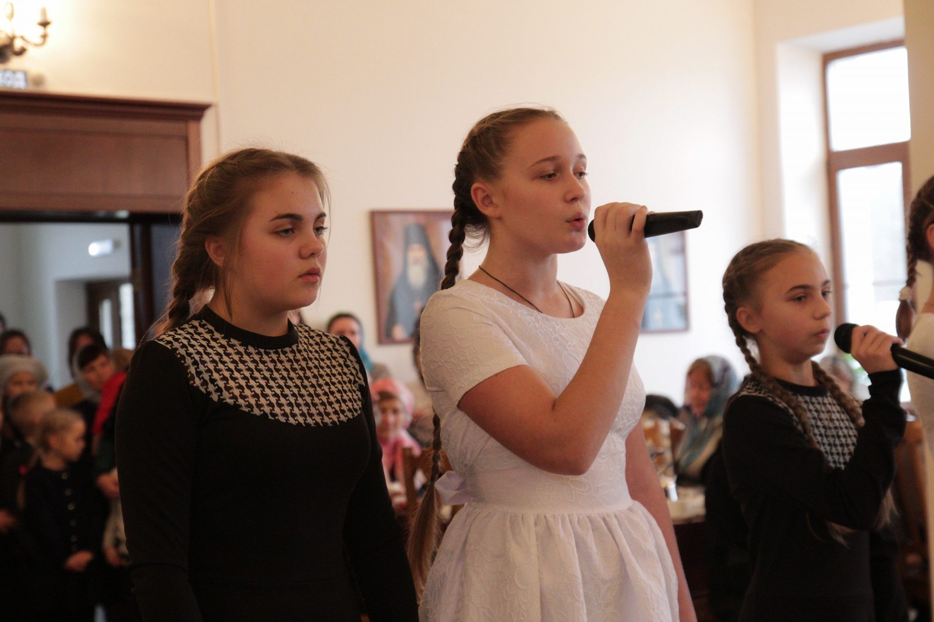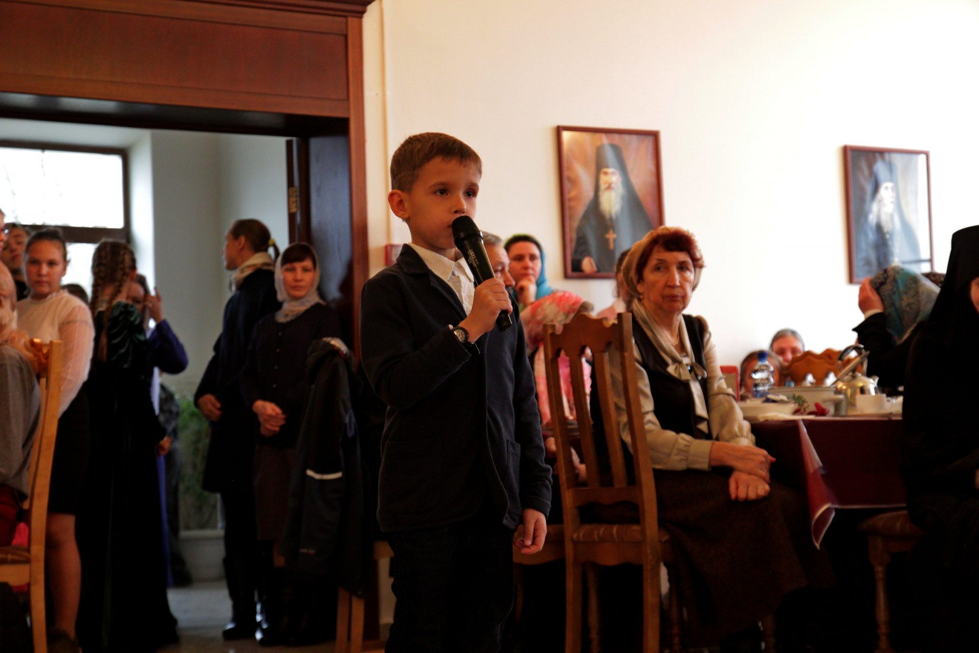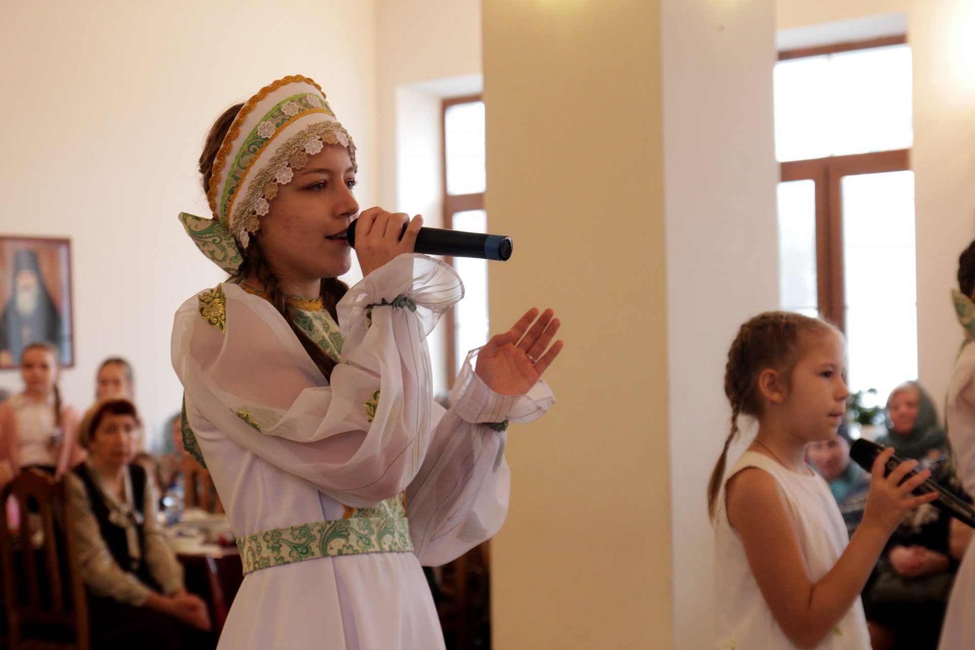 После службы праздник продолжился в большом трапезном зале монастыря, где воспитанники воскресной школы показали концерт, посвященный любви к Родине.