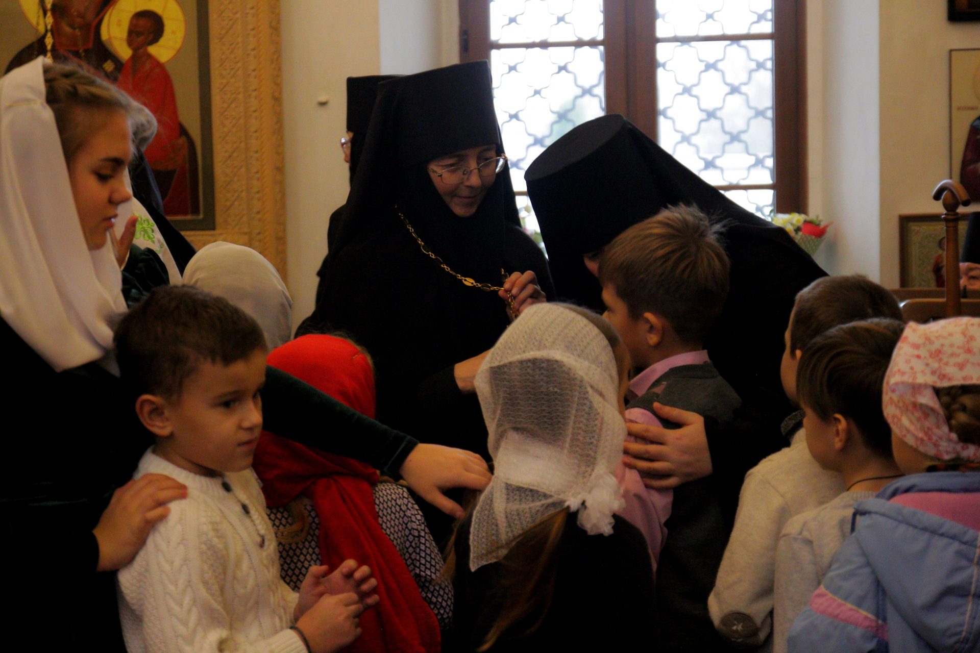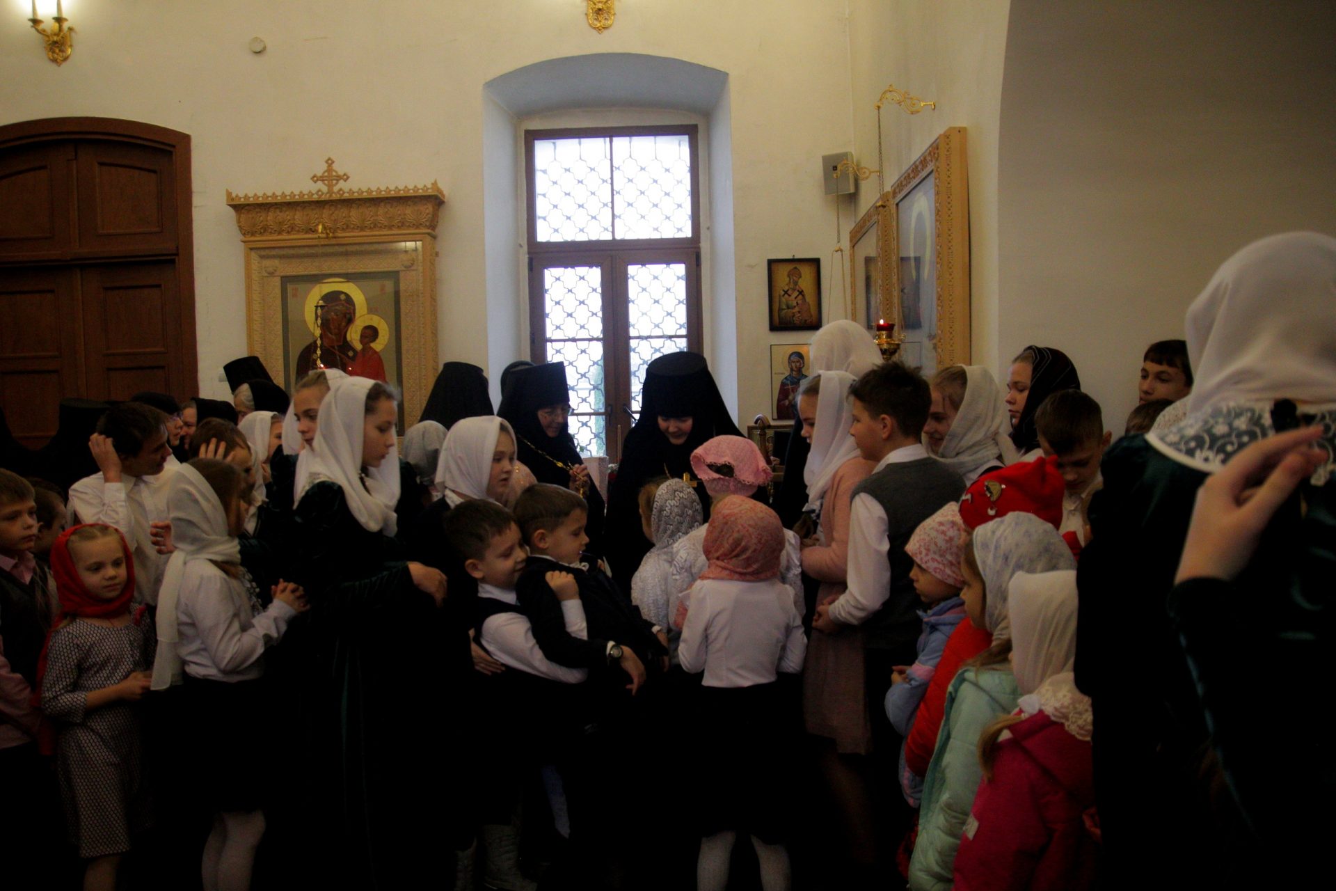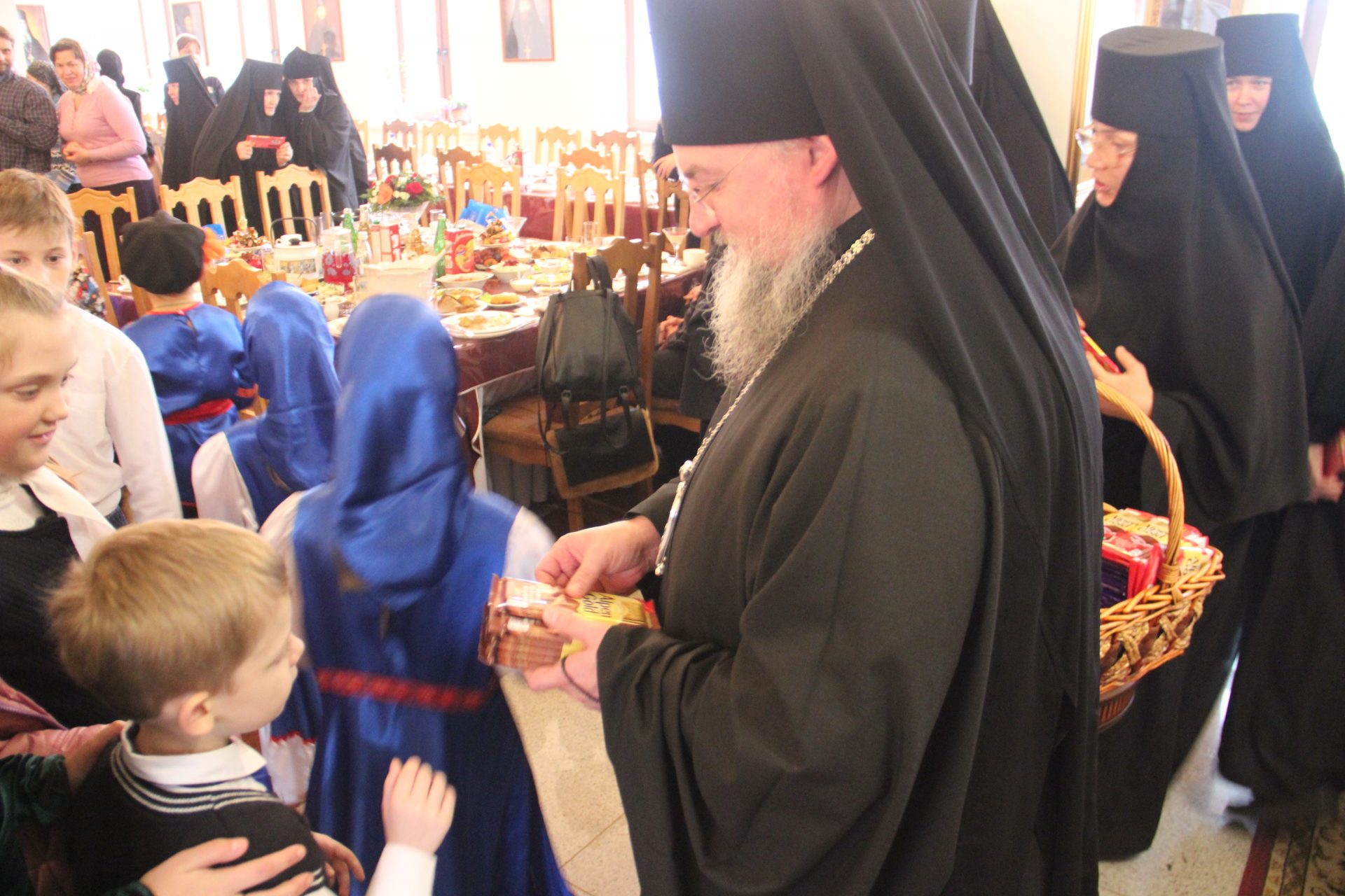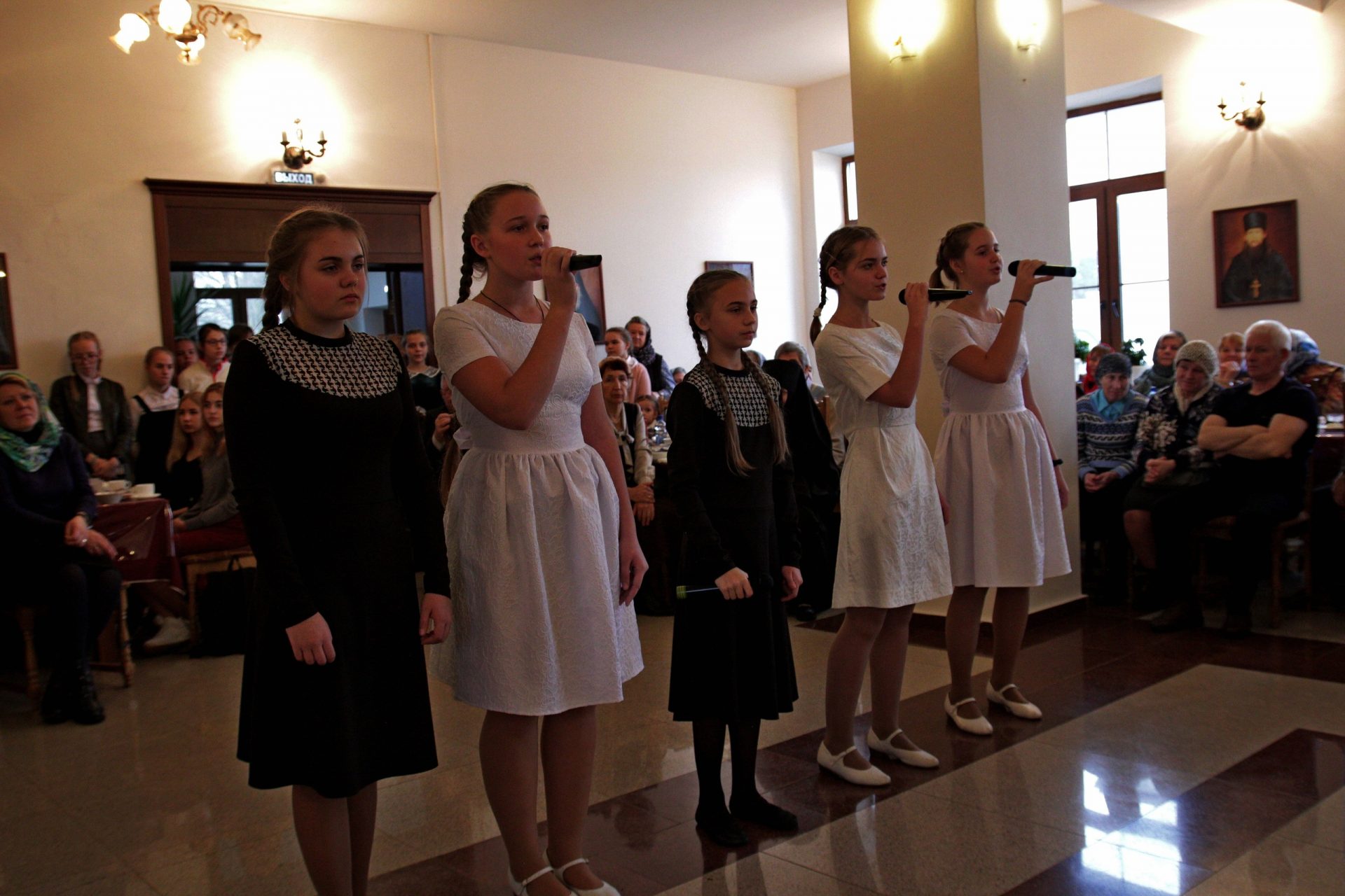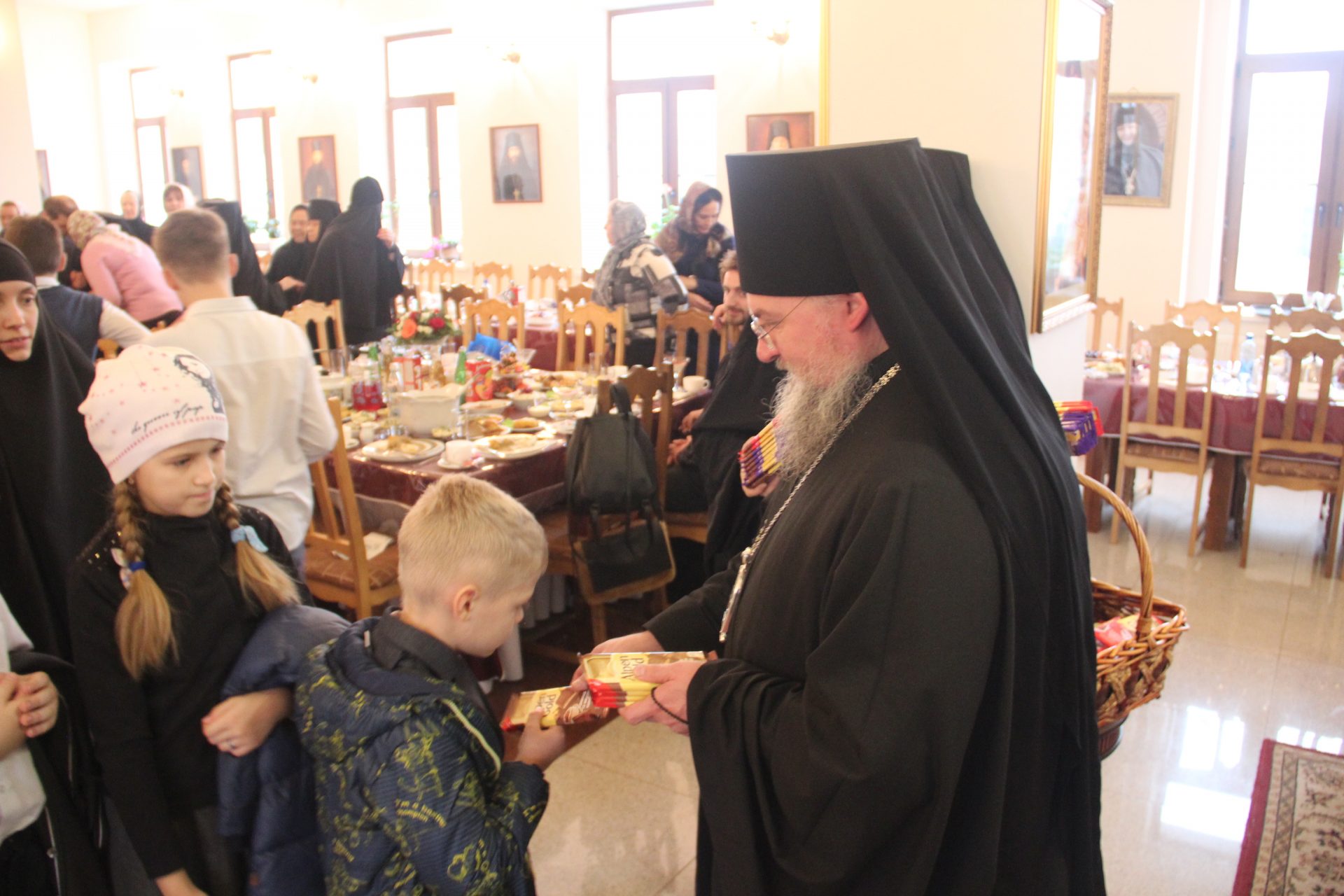 После службы праздник продолжился в большом трапезном зале монастыря, где воспитанники воскресной школы показали концерт, посвященный любви к Родине.