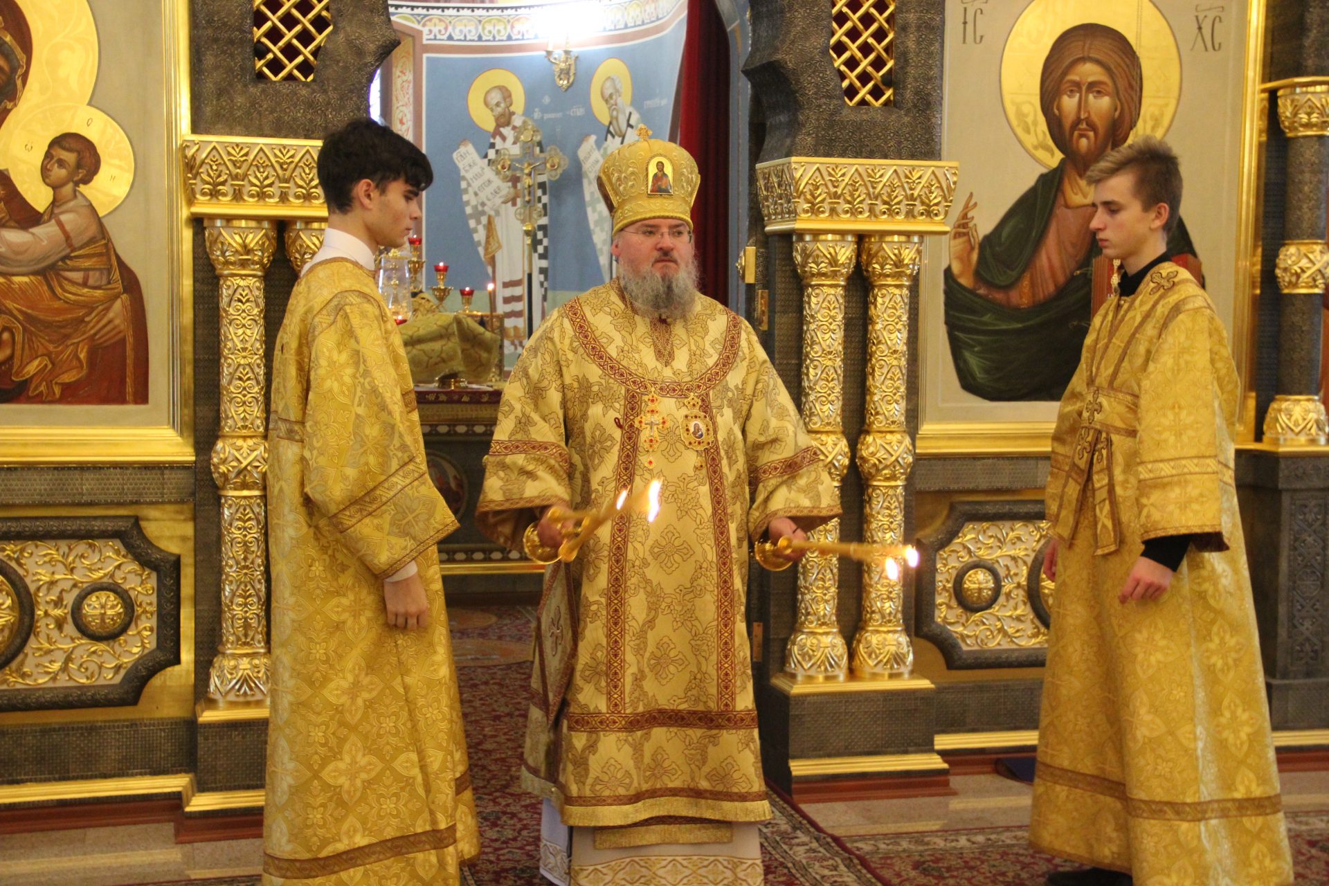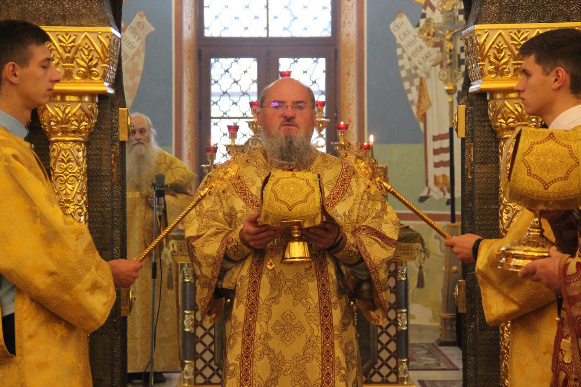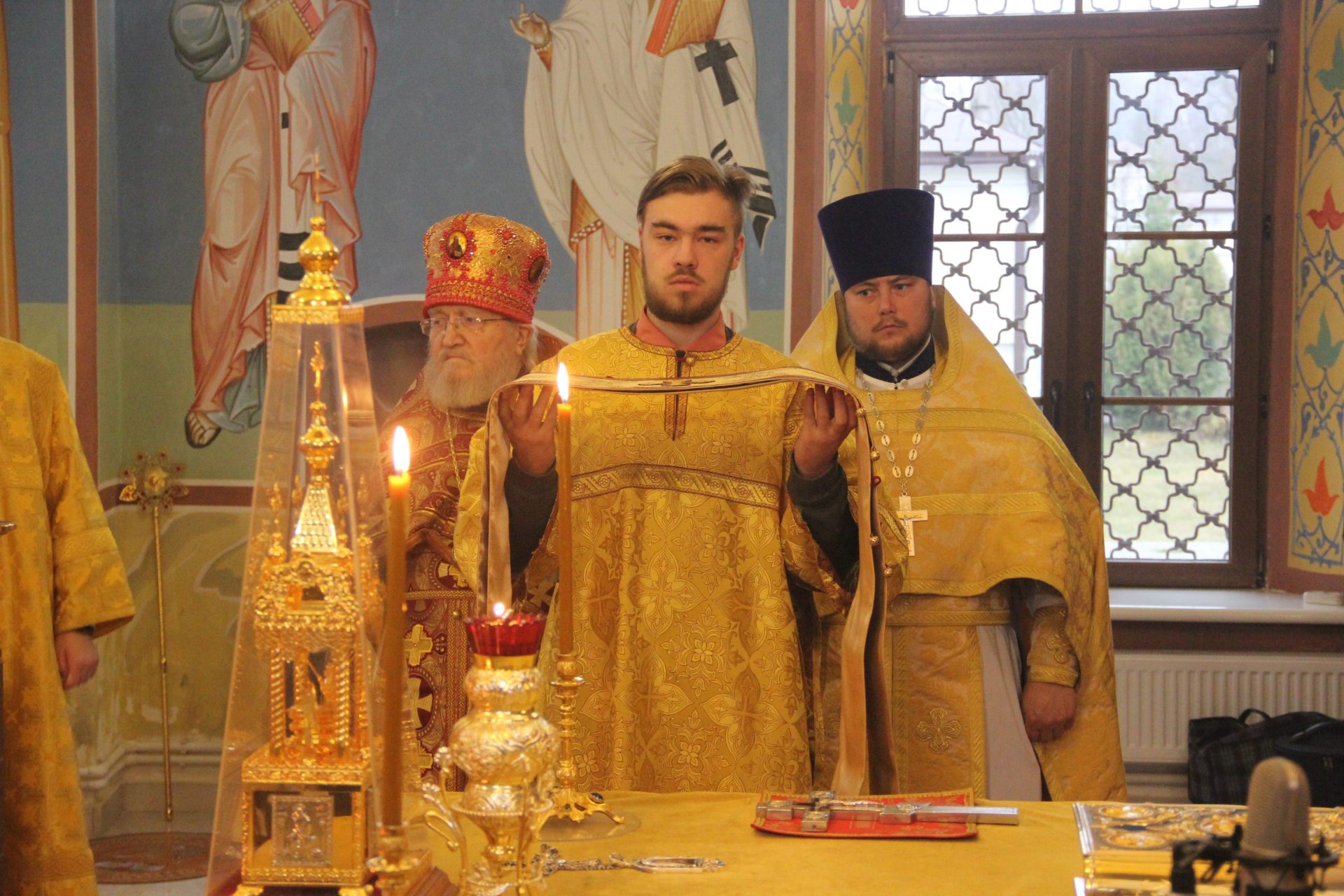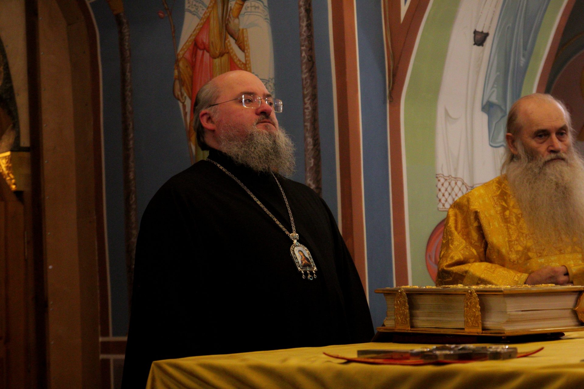 Преосвященному владыке сослужили: протоиерей Анатолий Рыжков, протоиерей Георгий Витков, протоиерей Антоний Хатунцев, клирики Козельской епархии и монастыря.