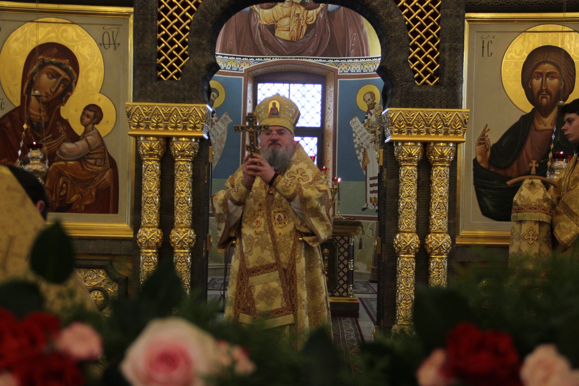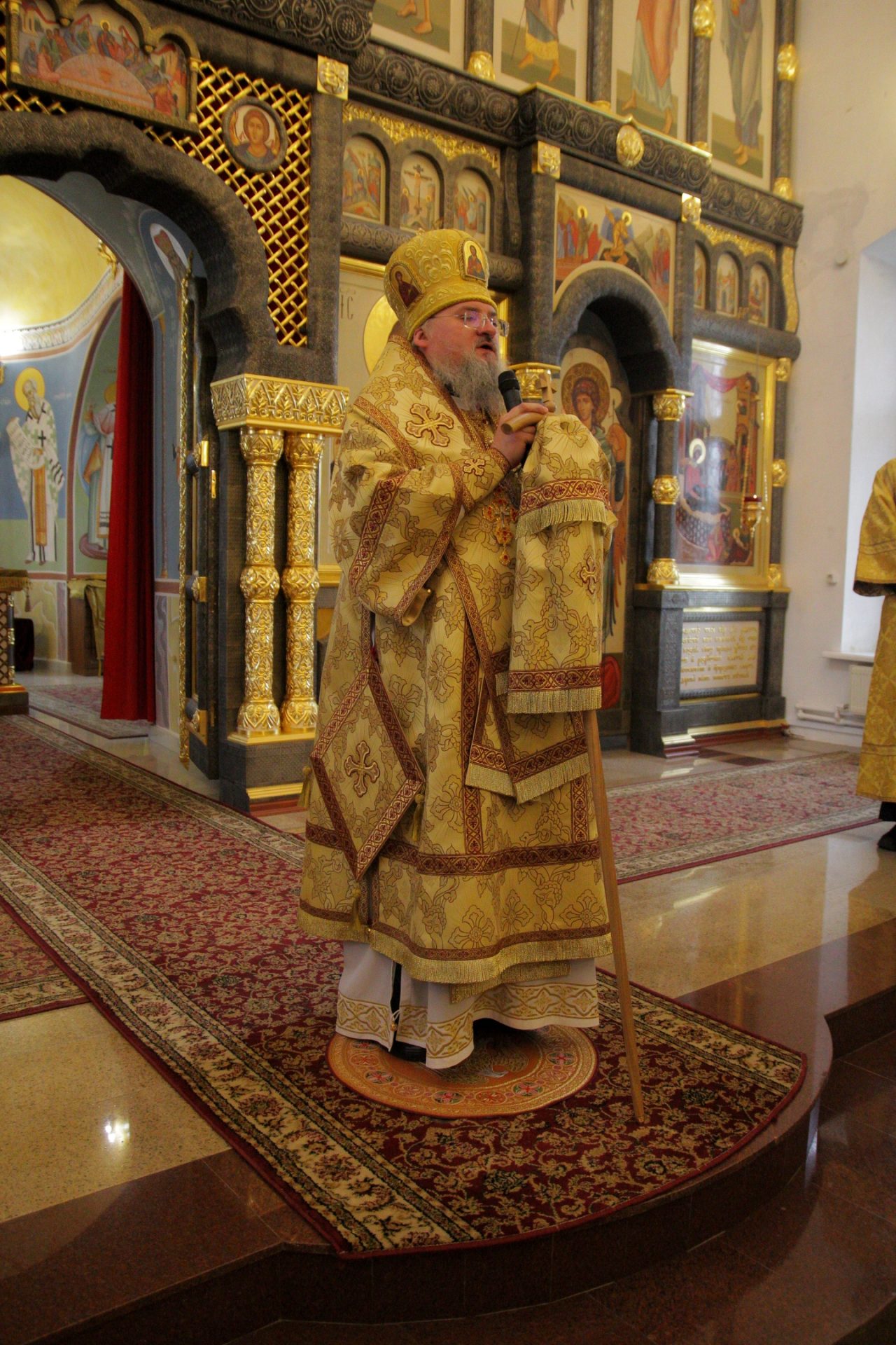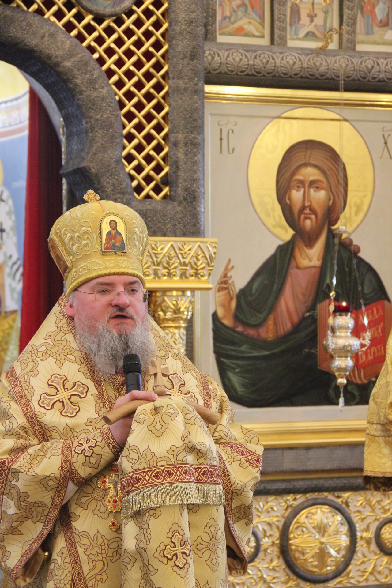После отпуста литургии священнослужители совершили праздничный молебен святой великомученице Параскеве в завершение которого, вознеся молитву святой, владыка обратился к богомольцам с проповедью.